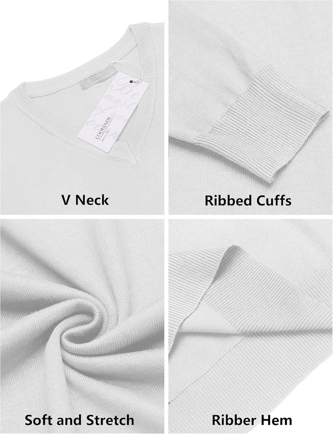 COOFANDY Men Casual V Neck Sweater Ribbed Knit Slim Fit Long Sleeve Pullover Top(Light Grey)