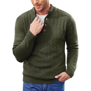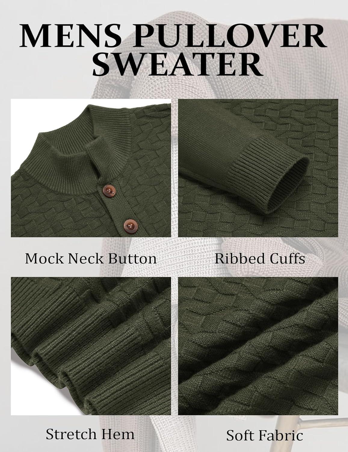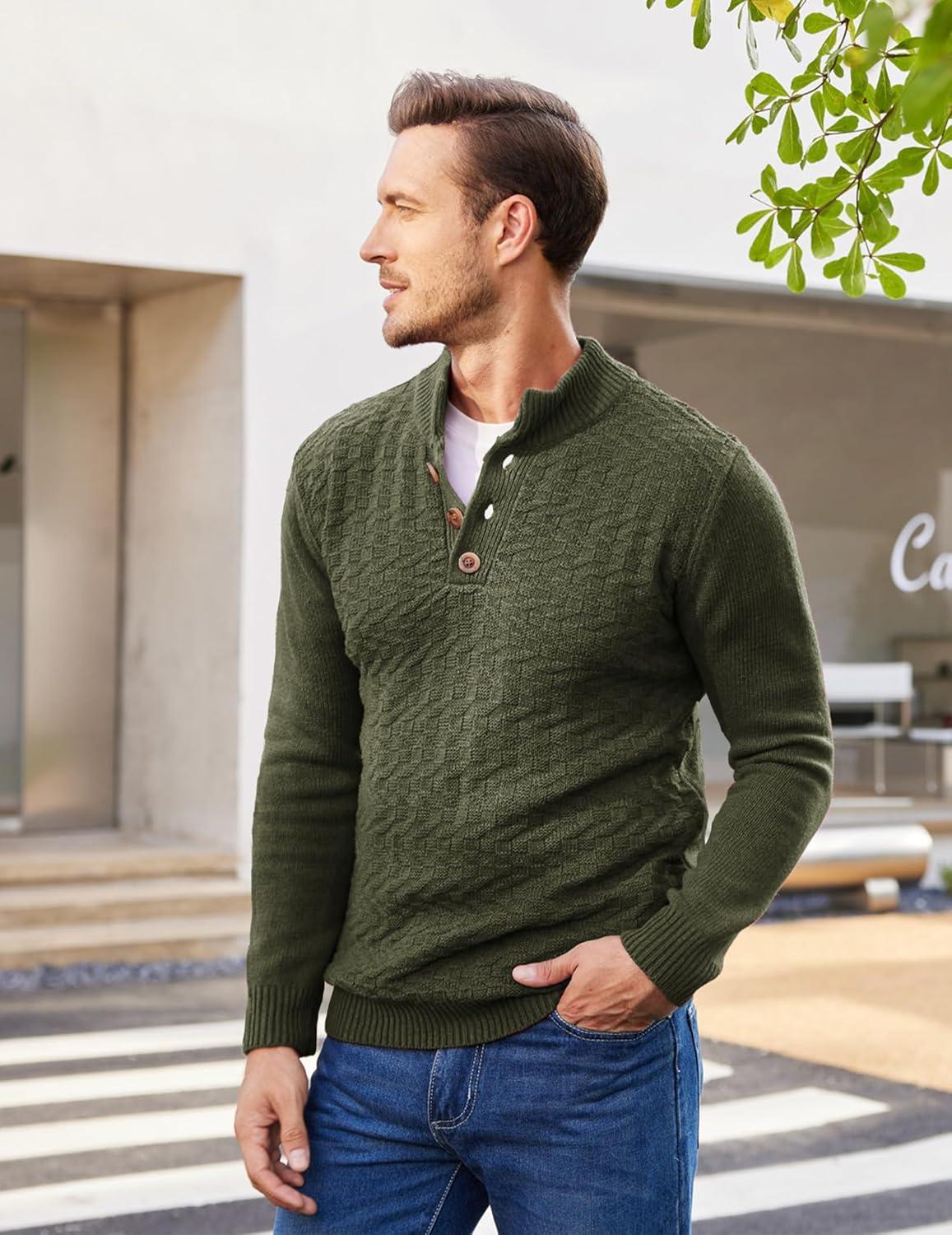 COOFANDY Men Mock Neck Button Sweater Casual Knitted Sweaters Fashion Henley Sweater(Army Green)