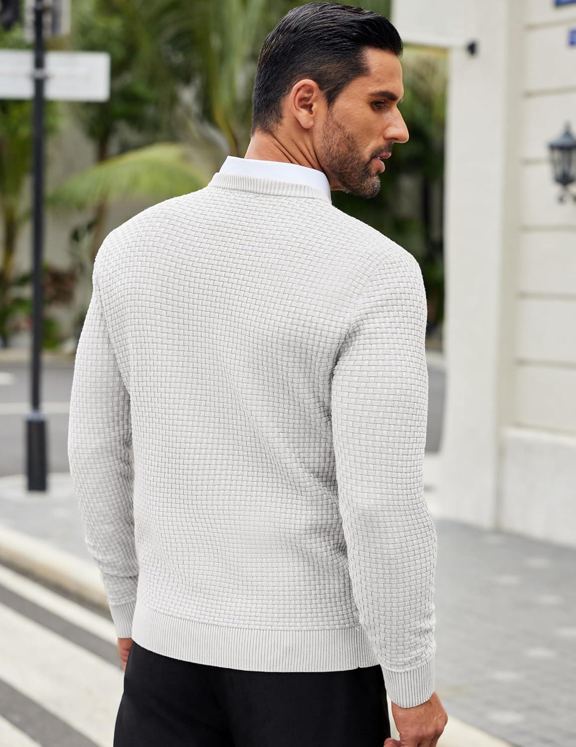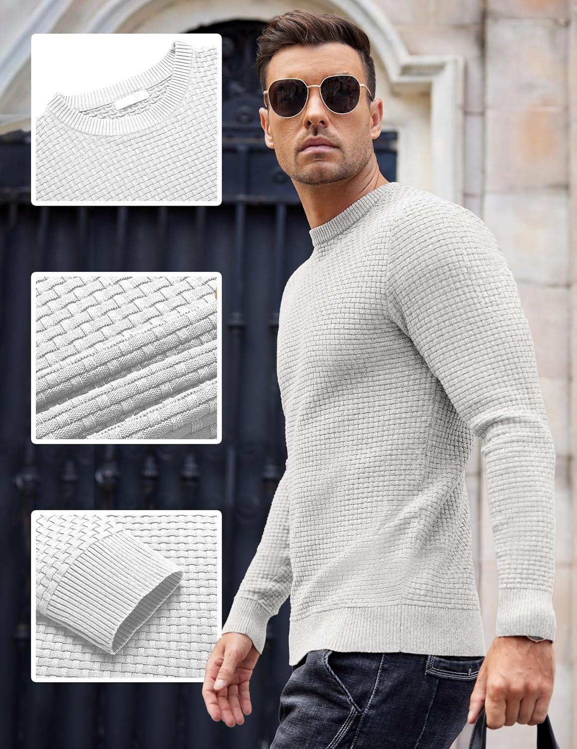 COOFANDY Men Dress Crewneck Sweater Pullover Knit Long Sleeve Casual Slim Fit Sweater(A-white)