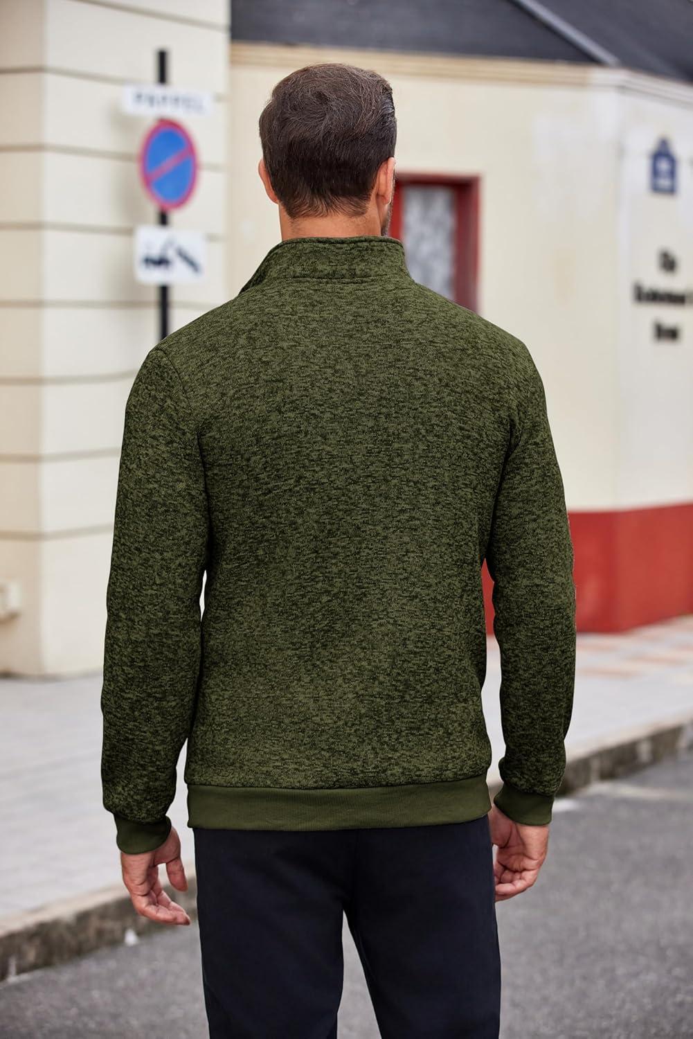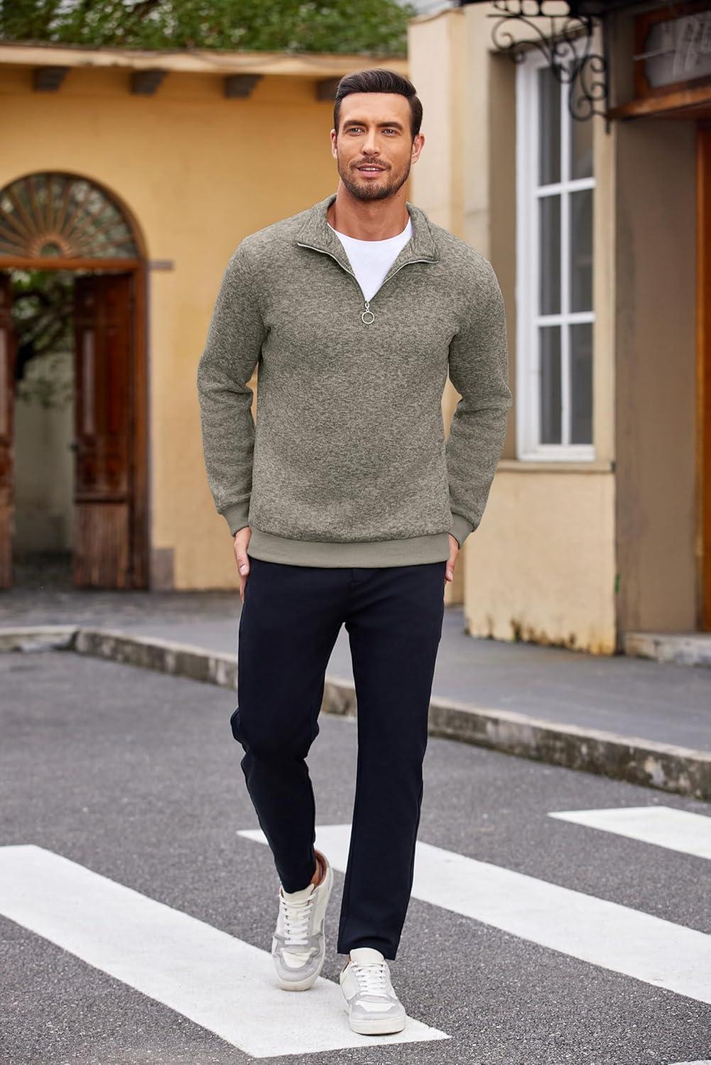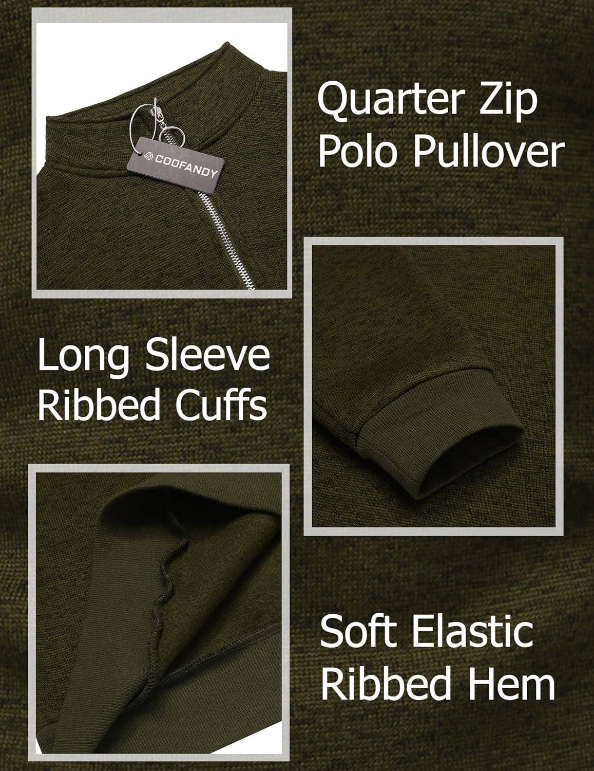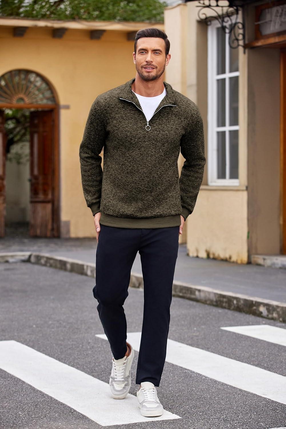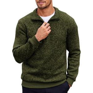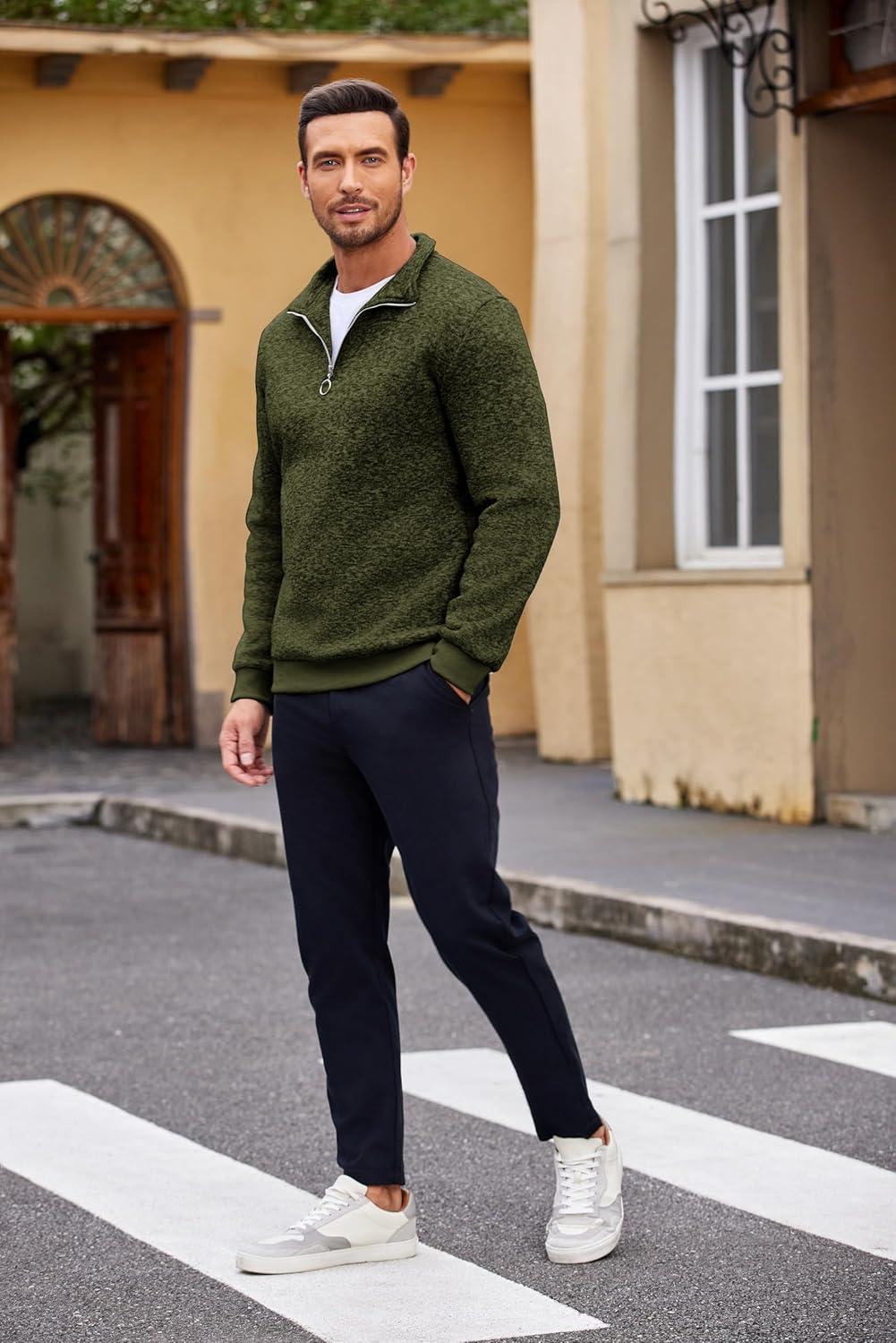 COOFANDY Men’s Quarter Zip Pullover Casual Long Sleeve Sweater Slim Fit Sweater Mock Neck Polo Sweater(Army Green)
