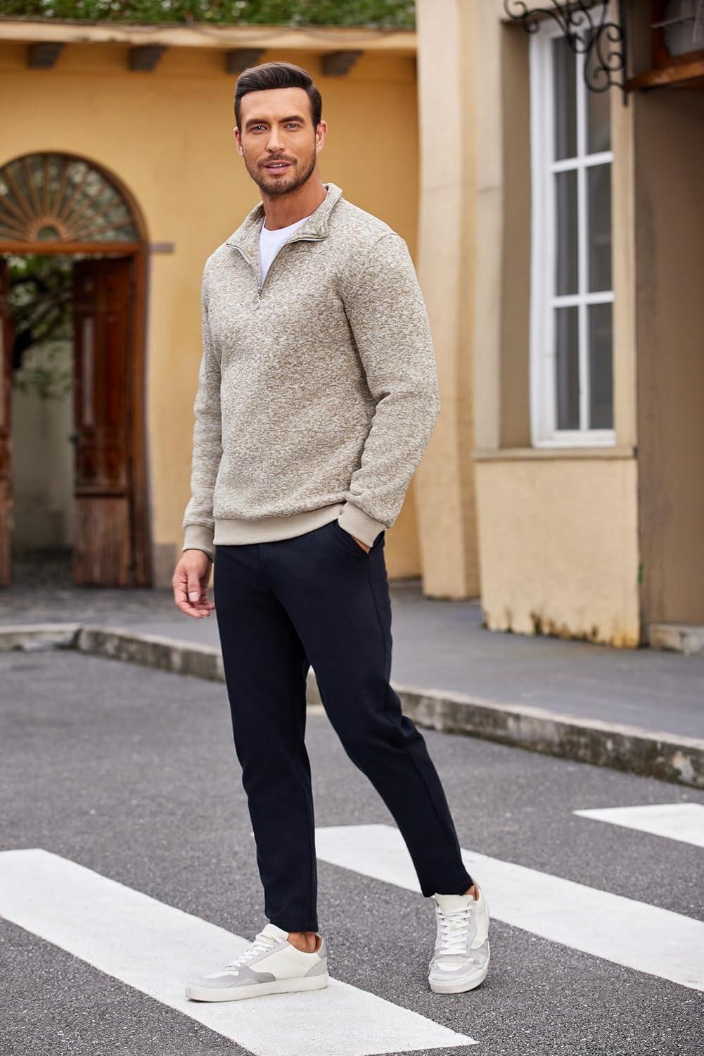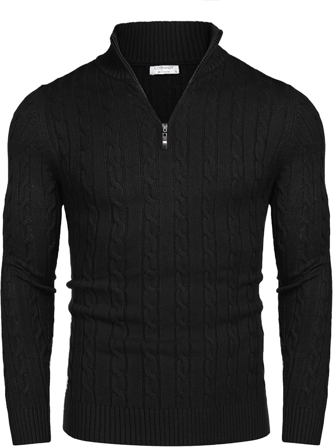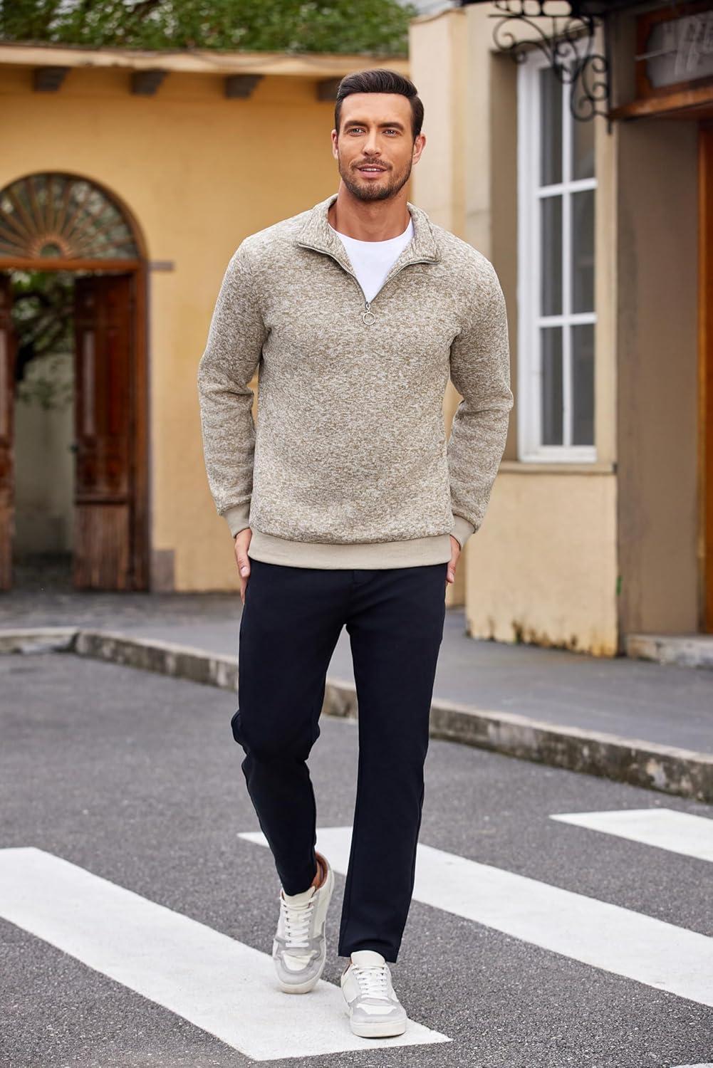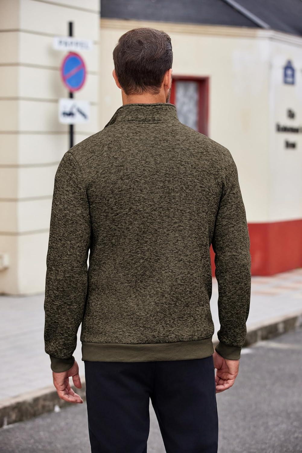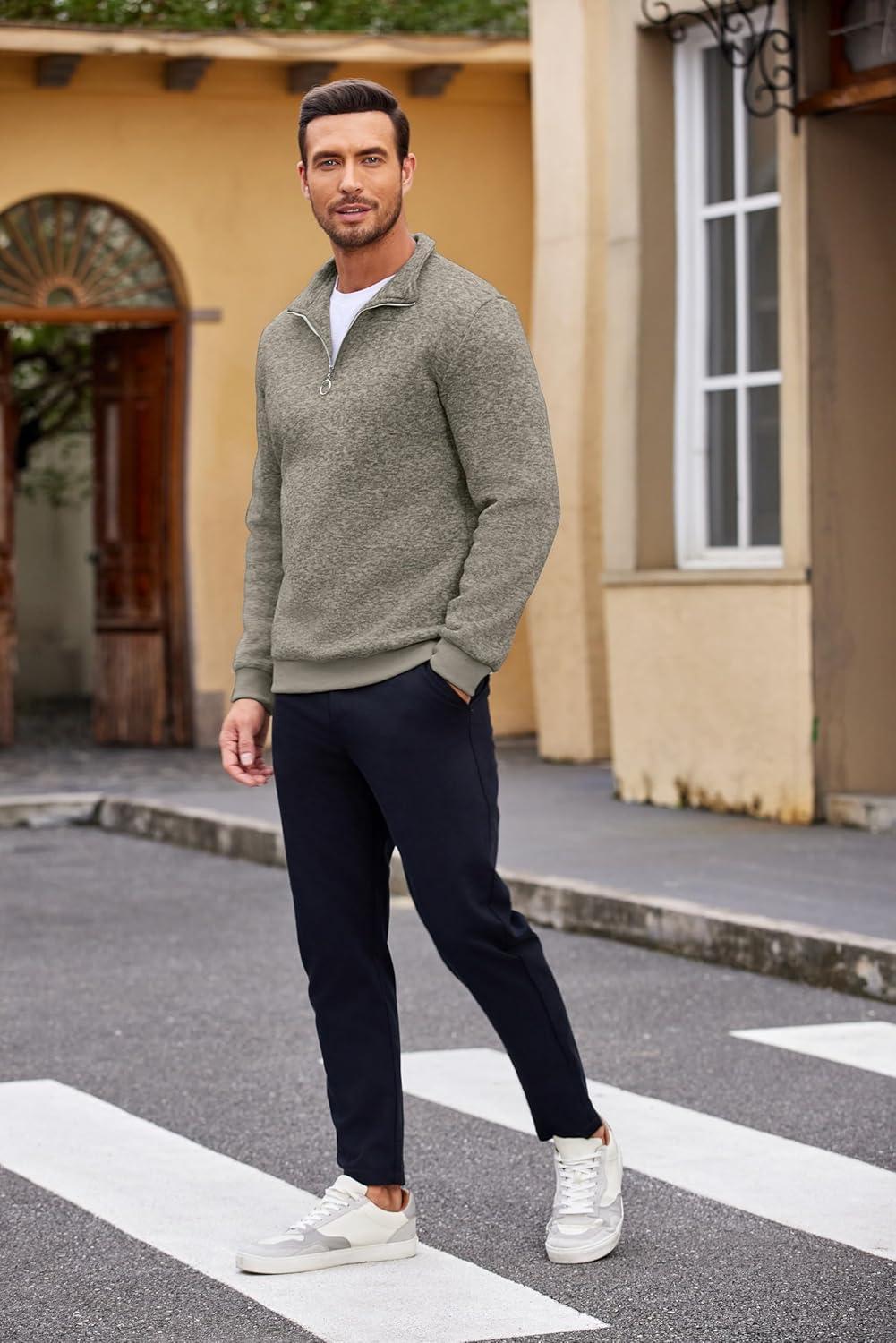 COOFANDY Men’s Quarter Zip Pullover Casual Long Sleeve Sweater Slim Fit Sweater Mock Neck Polo Sweater(Army Green)