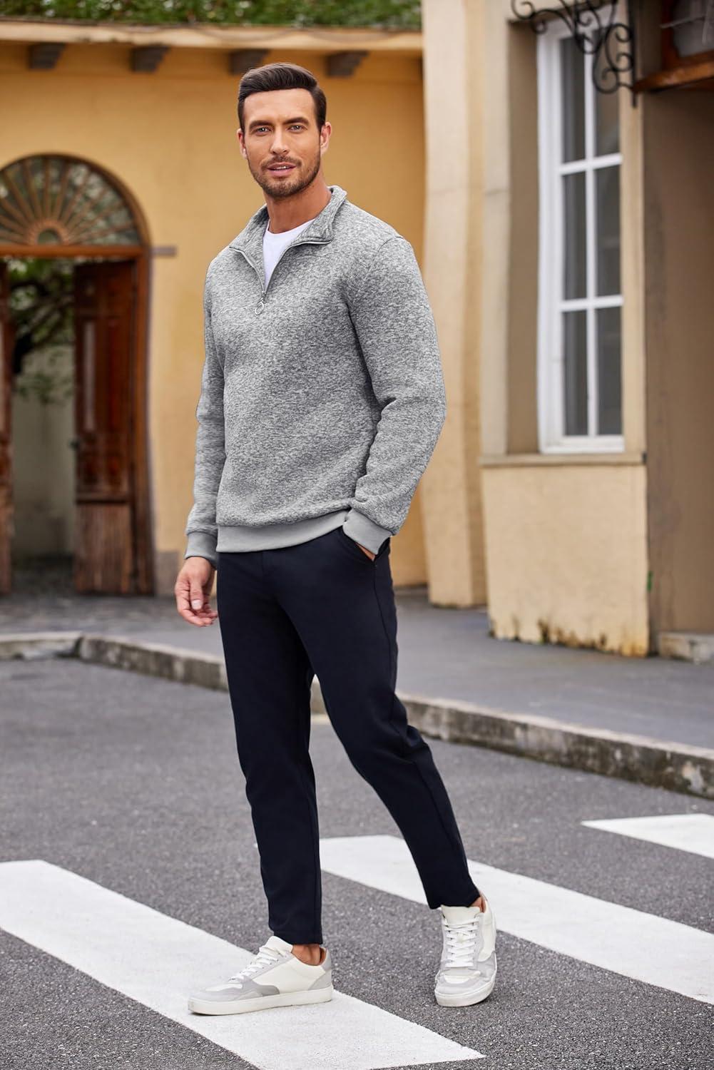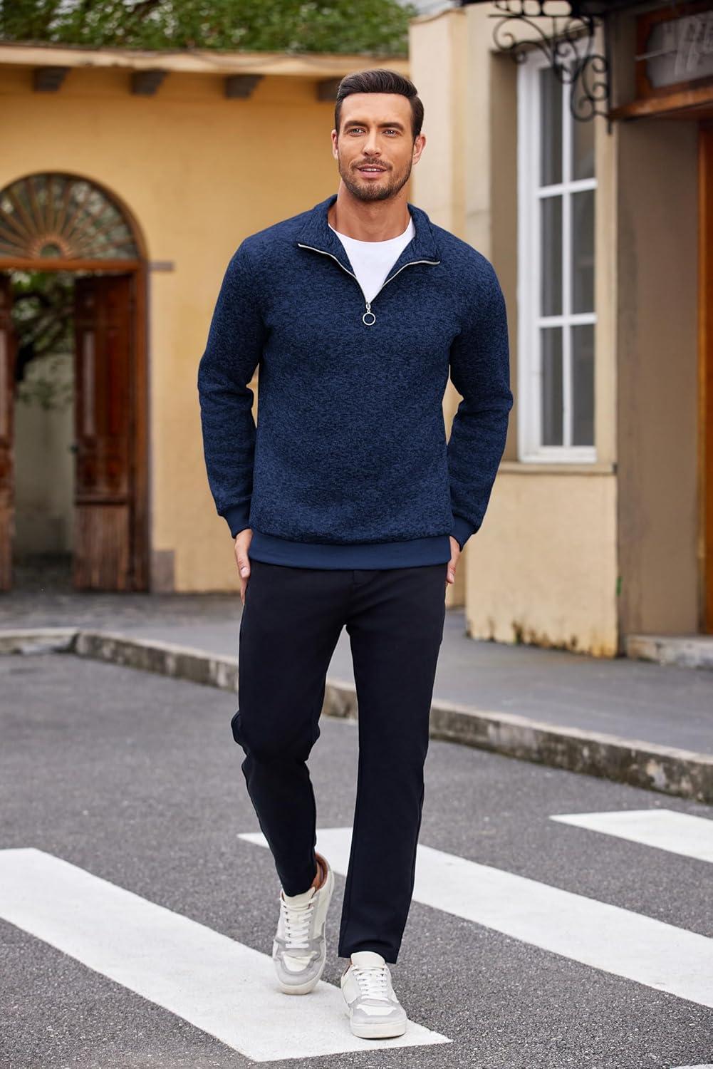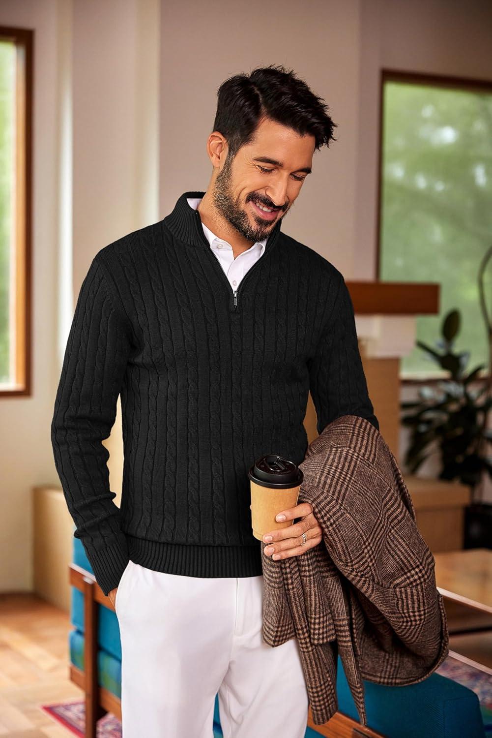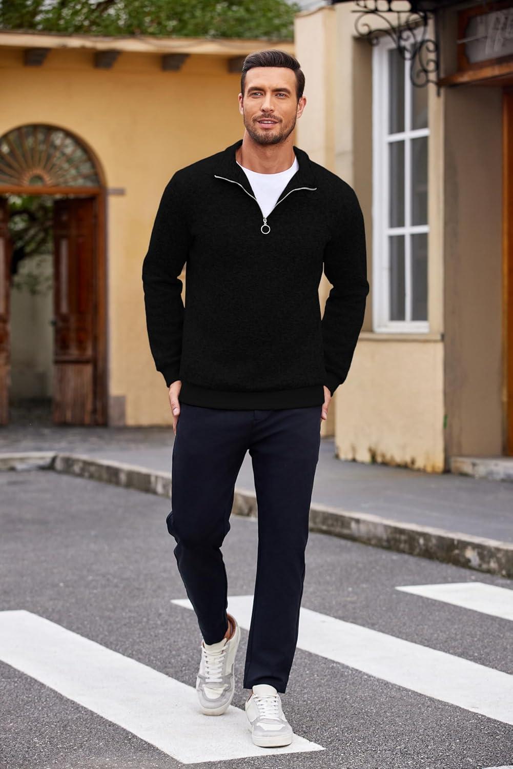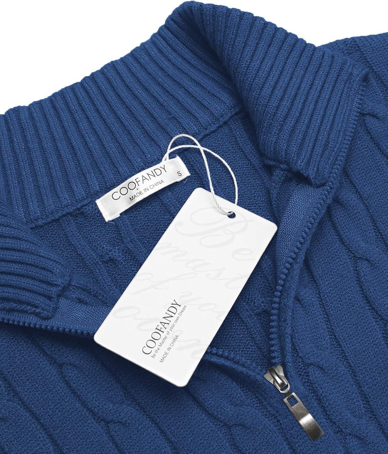 COOFANDY Men’s Quarter Zip Pullover Casual Long Sleeve Sweater Slim Fit Sweater Mock Neck Polo Sweater(Army Green)