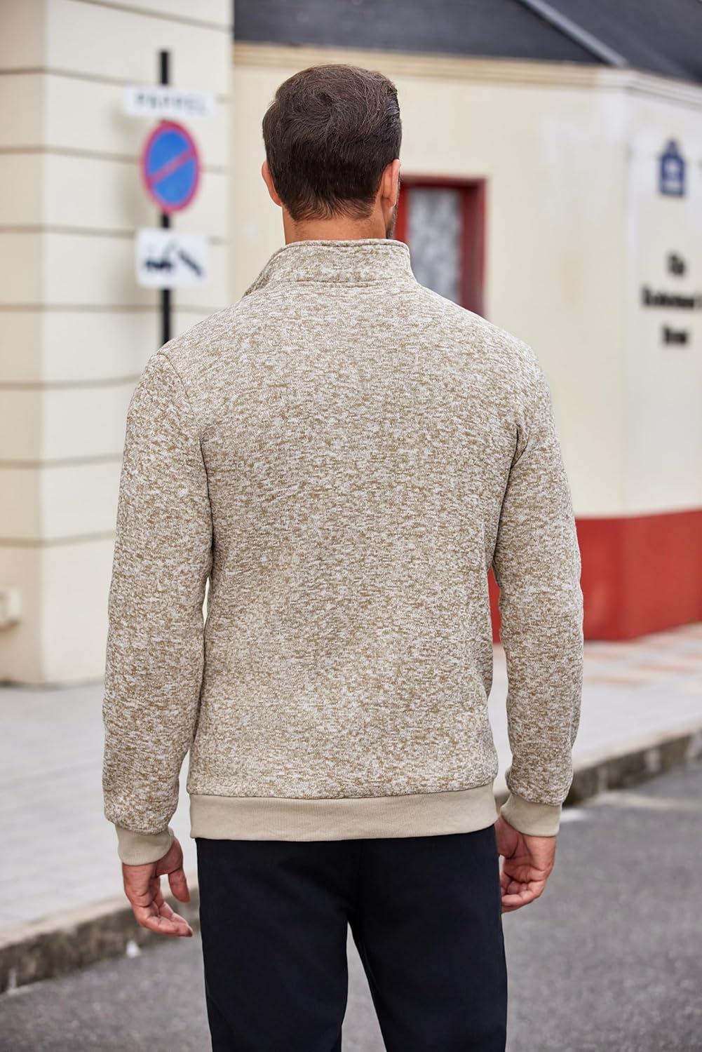 • COOFANDY Men’s Knitted Polo Neck Long Sleeve Winter Thermal Casual Sweater(Khaki)