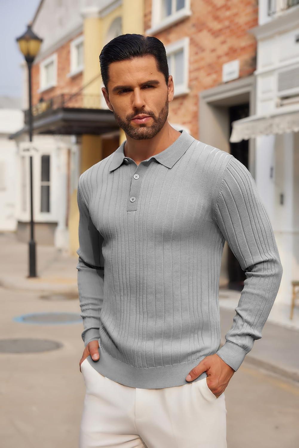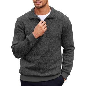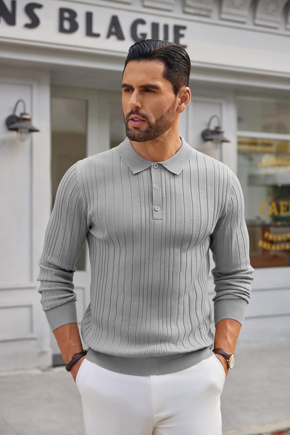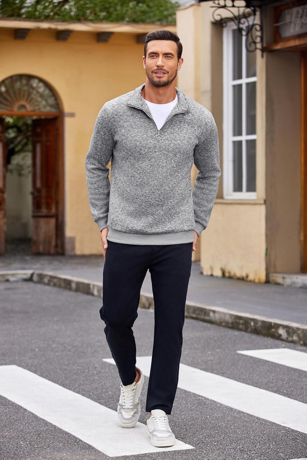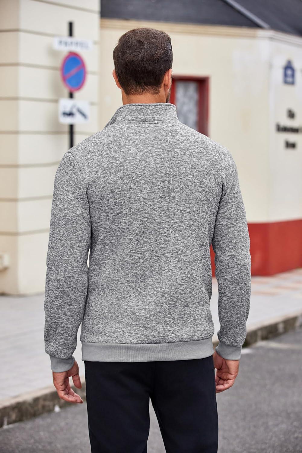 • COOFANDY Men’s Knitted Polo Neck Long Sleeve Winter Thermal Casual Sweater(Light Grey)