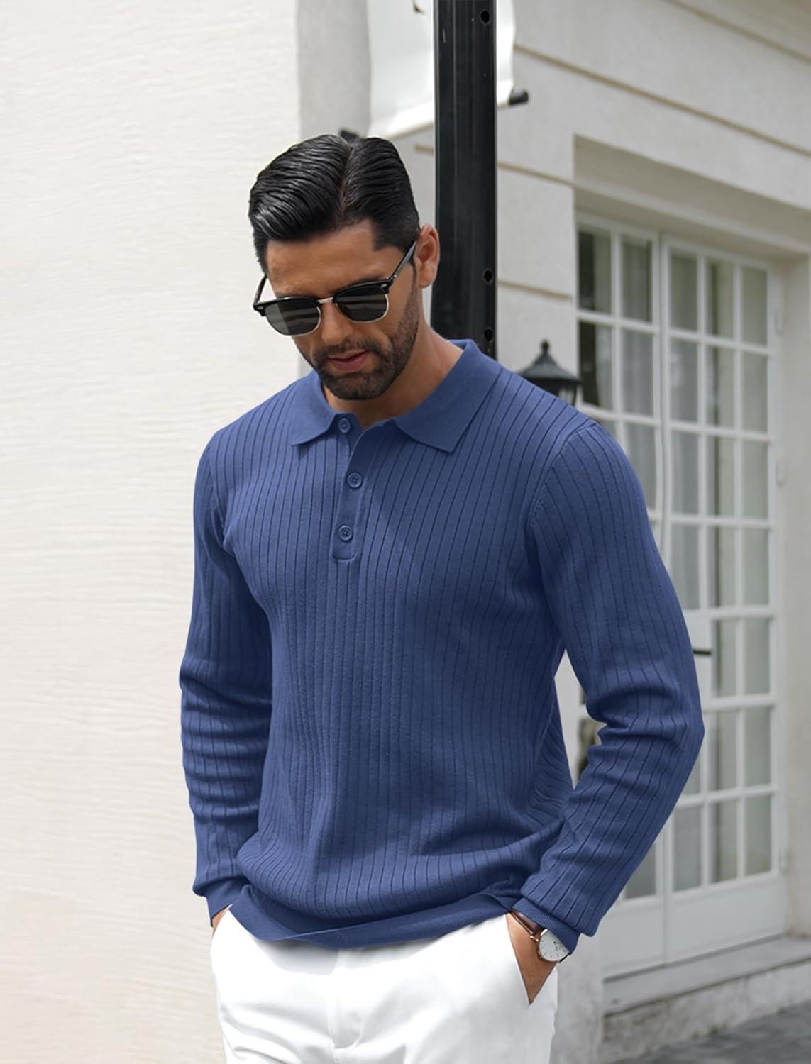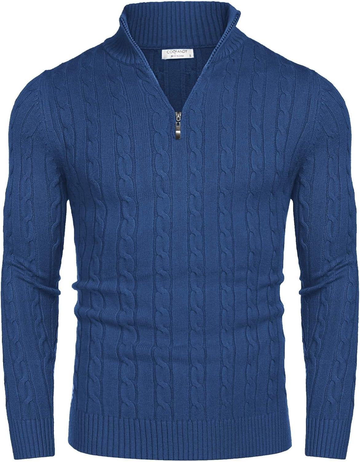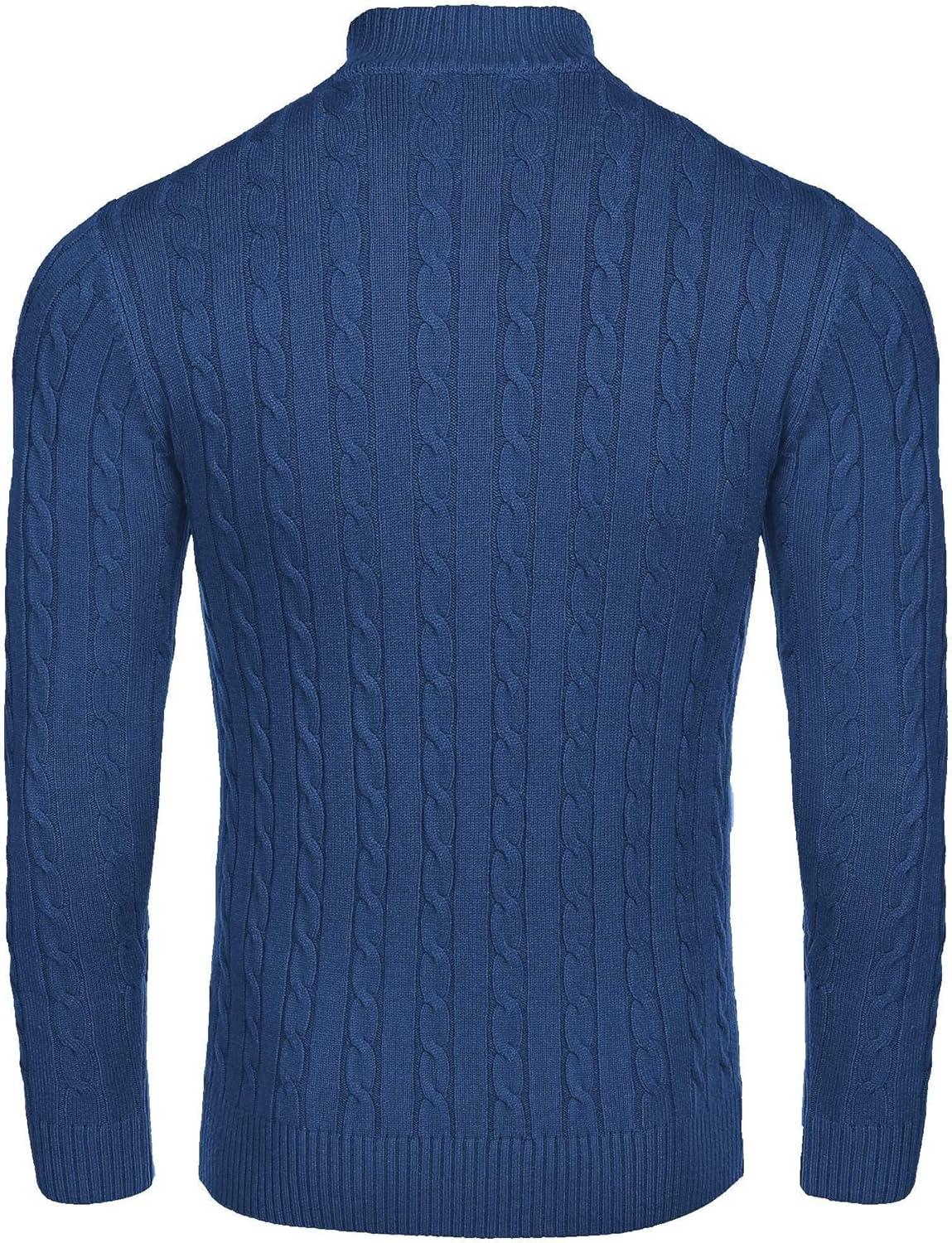 • COOFANDY Men’s Knitted Polo Neck Long Sleeve Winter Thermal Casual Sweater(Ribbed Blue)