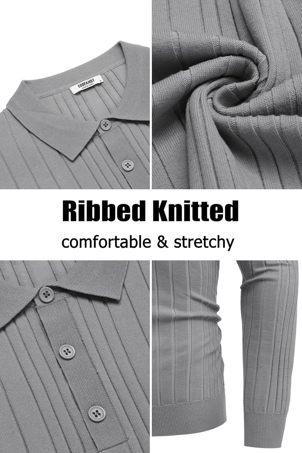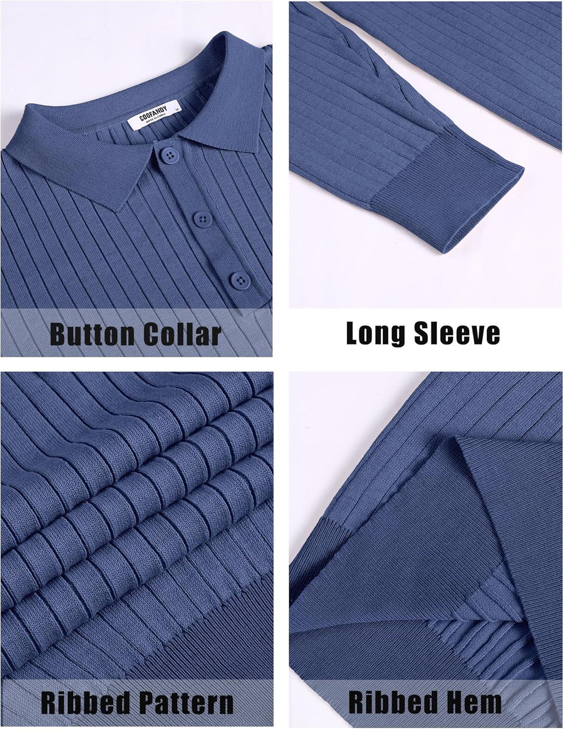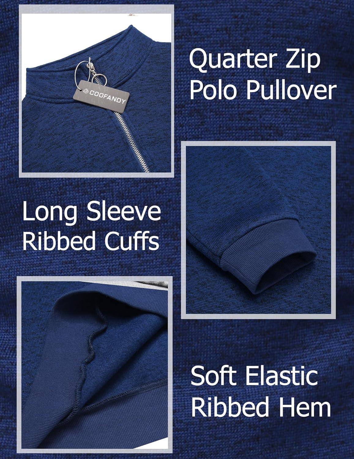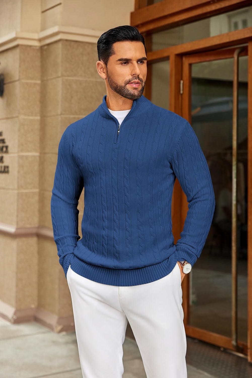 • COOFANDY Men’s Knitted Polo Neck Long Sleeve Winter Thermal Casual Sweater(Ribbed Blue)