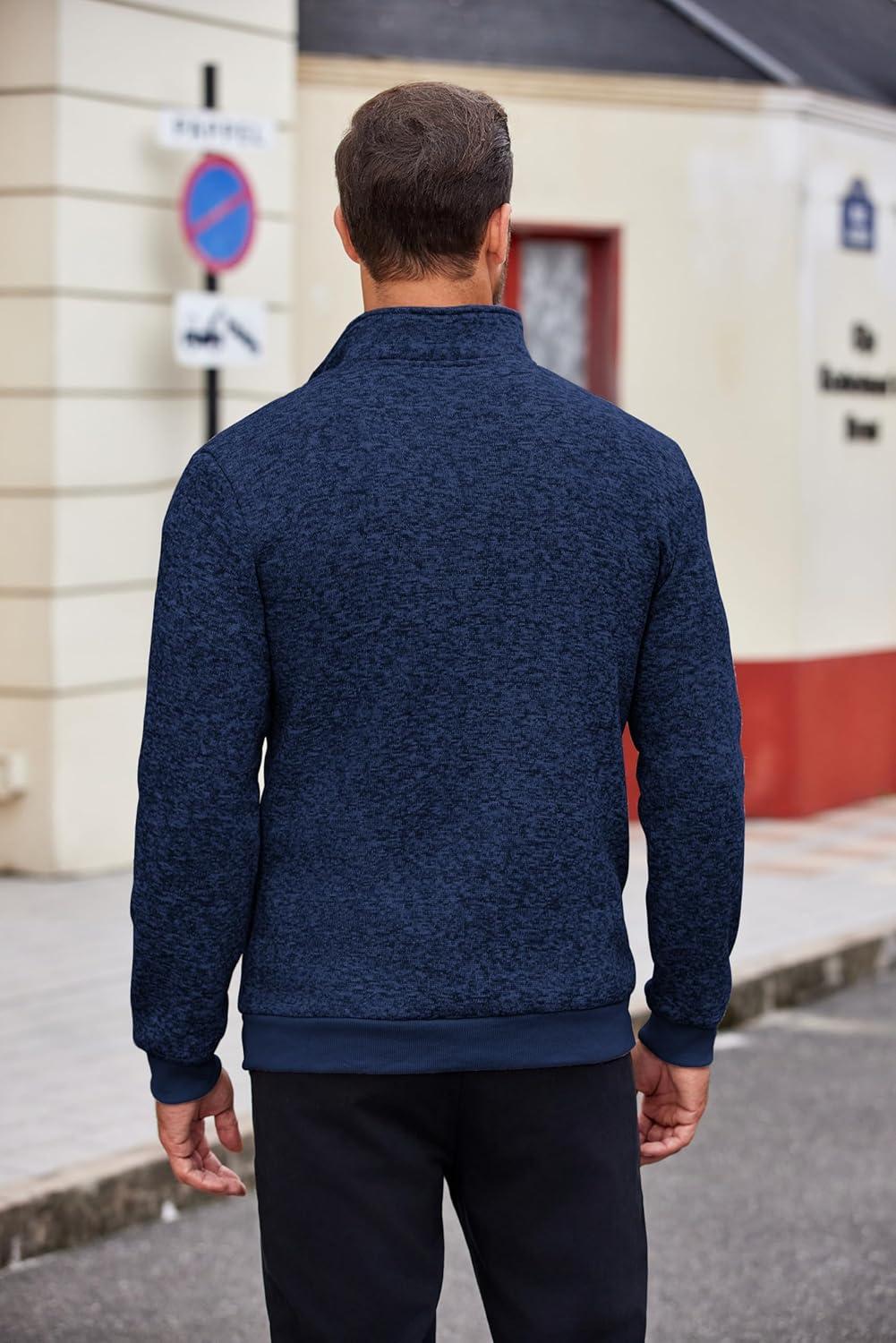 COOFANDY Men’s Knitted Polo Neck Long Sleeve Winter Thermal Casual Sweater(Navy Blue)