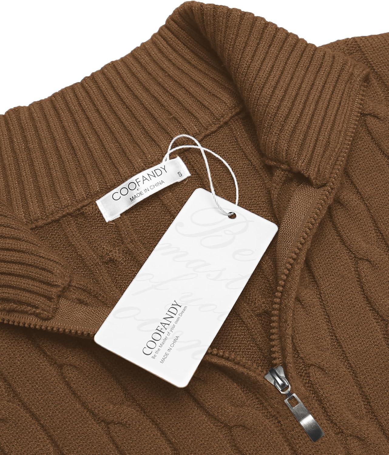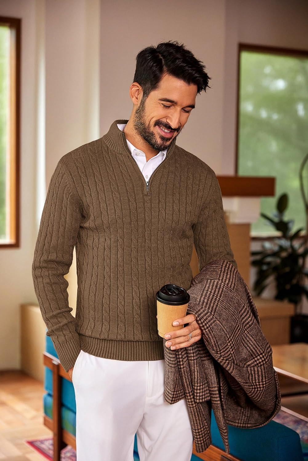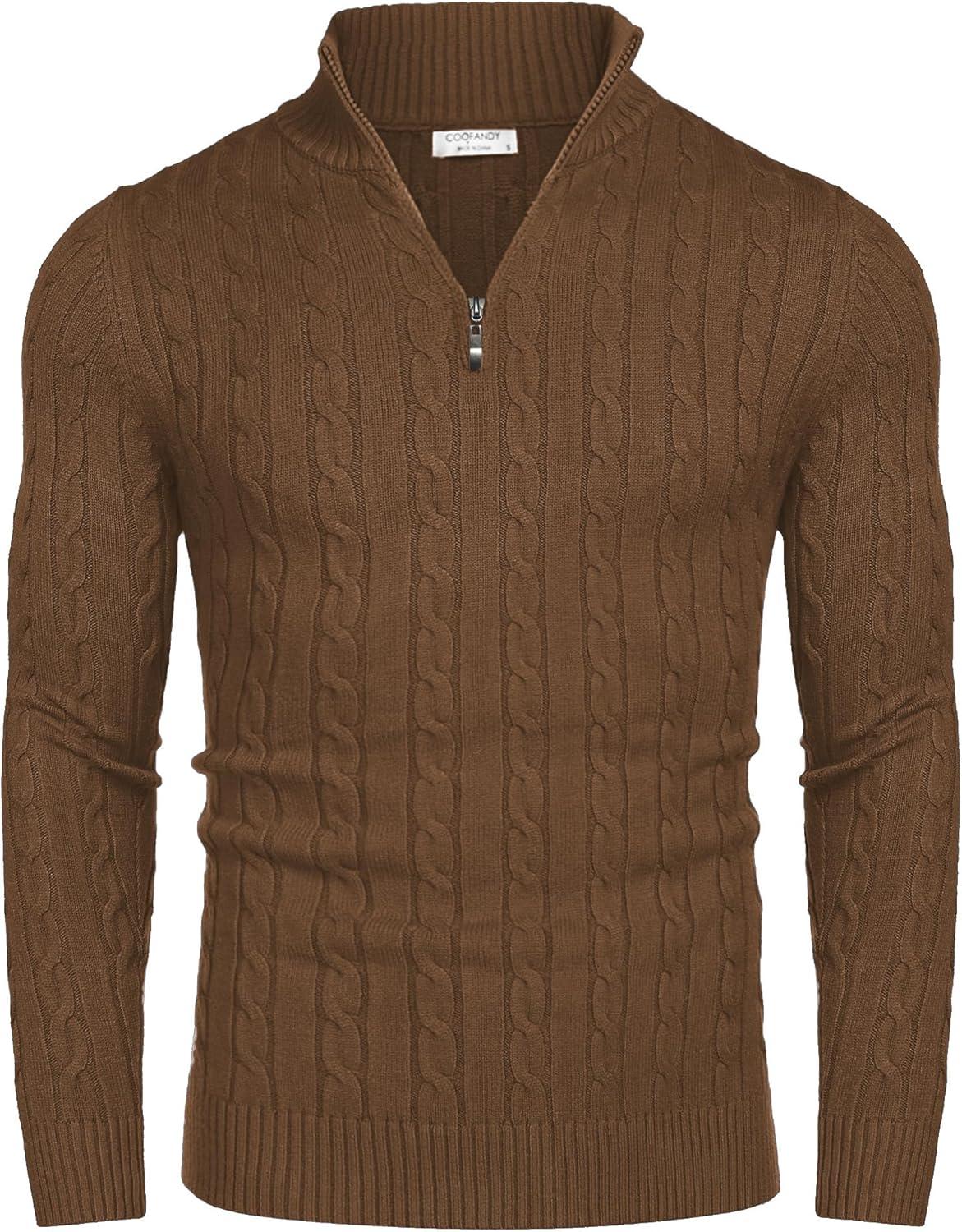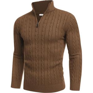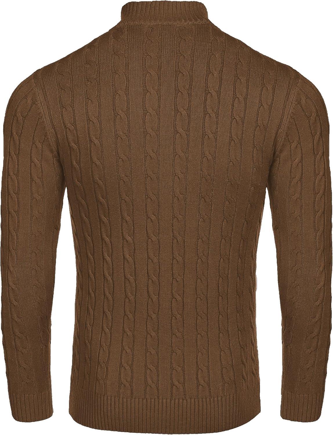 • COOFANDY Men’s Knitted Polo Neck Long Sleeve Winter Thermal Casual Sweater(Light Brown)