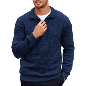 • COOFANDY Men’s Knitted Polo Neck Long Sleeve Winter Thermal Casual Sweater(Navy Blue)
