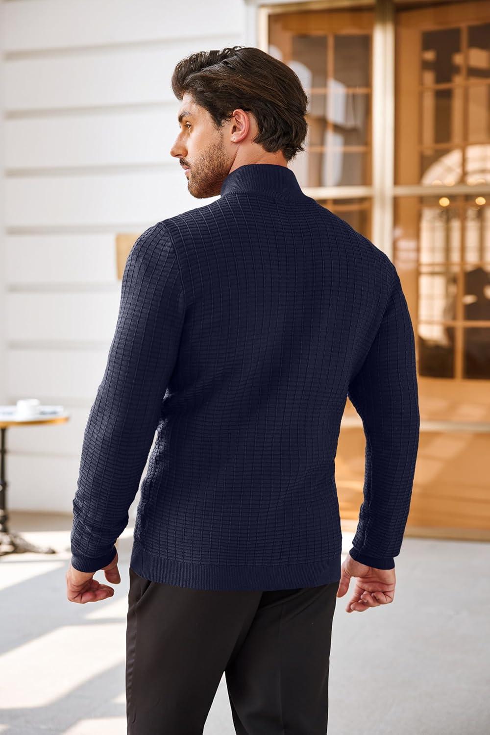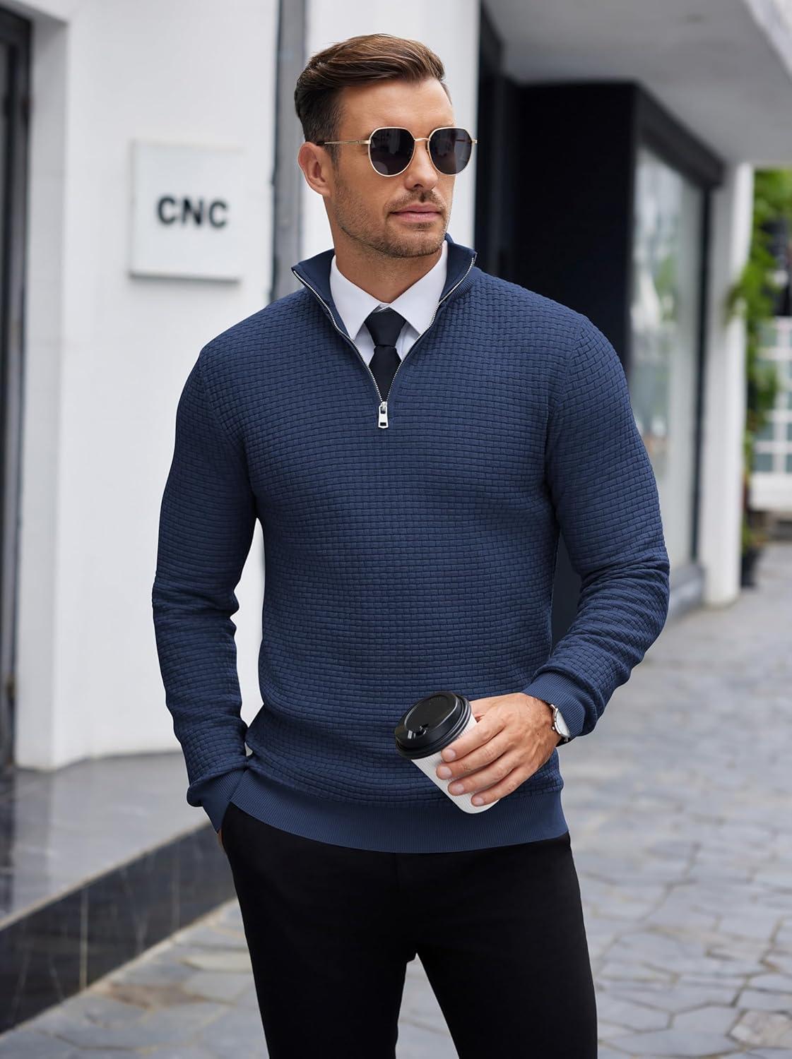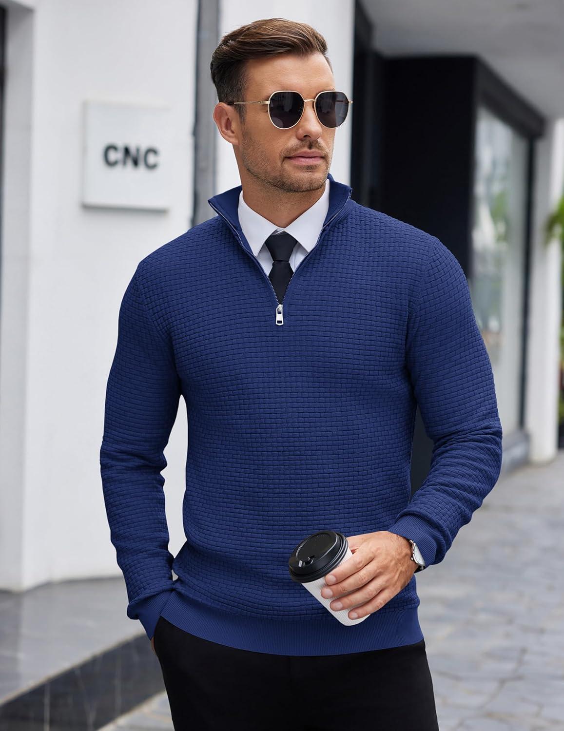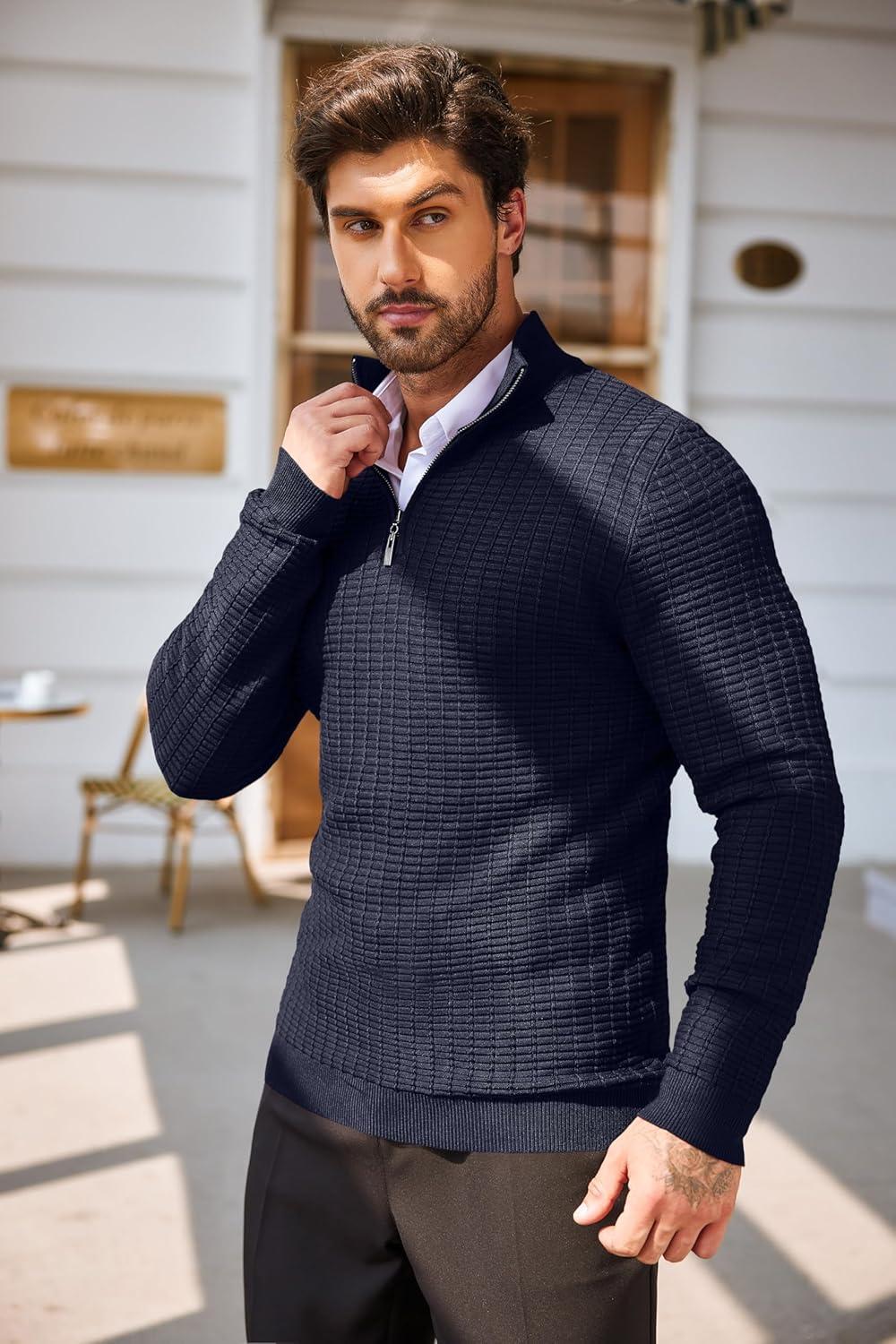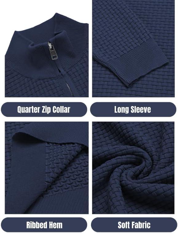 COOFANDY Men’s Quarter Zip Sweaters Slim Fit Lightweight Cotton Knitted Casual Mock Neck Pullover Sweaters(Navy Blue #)