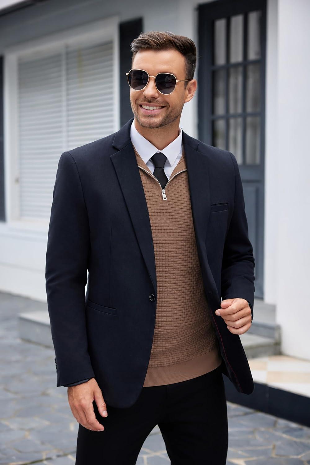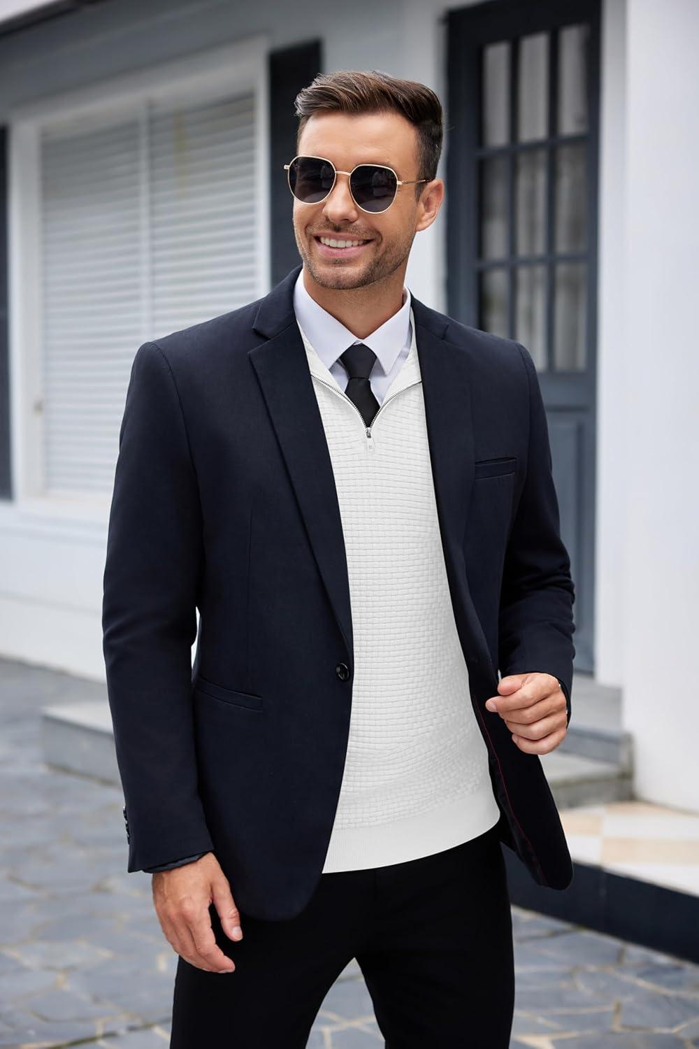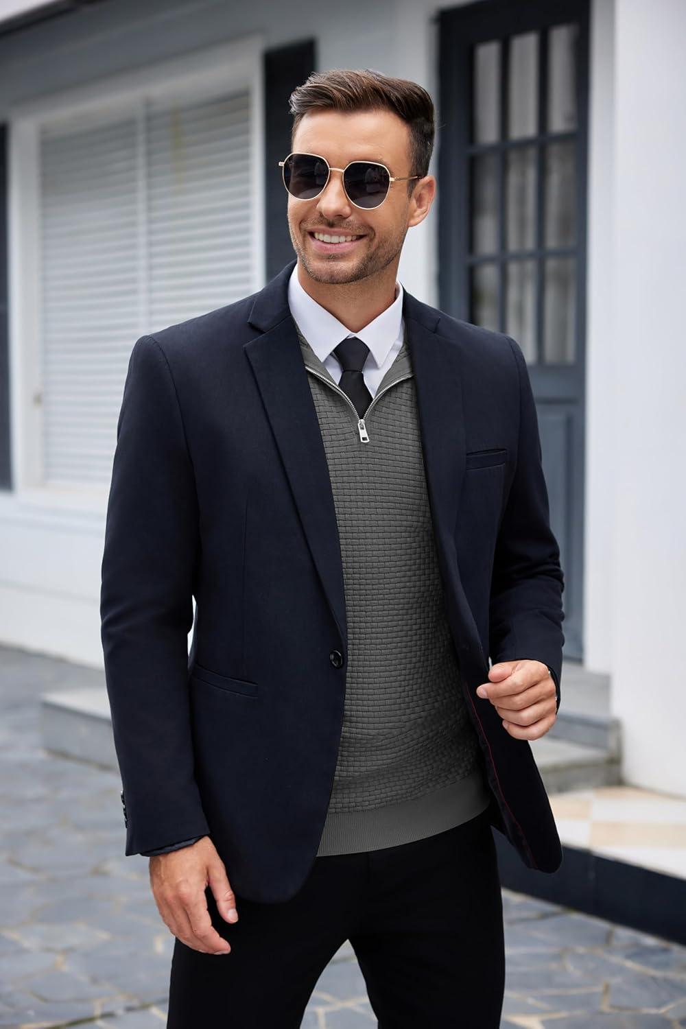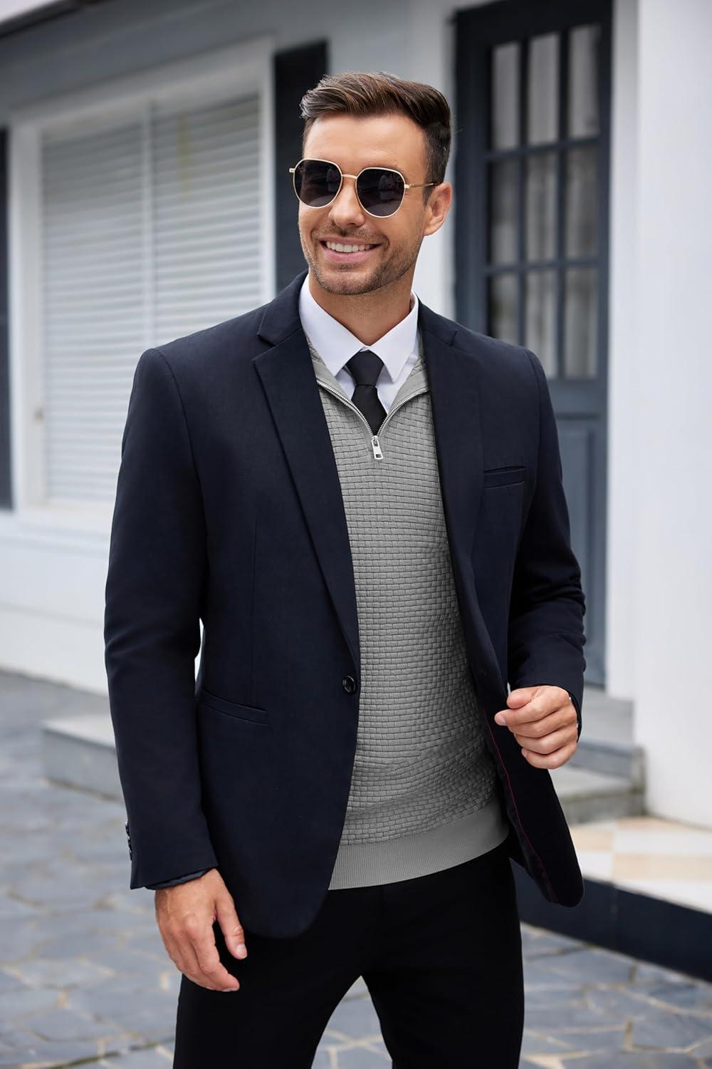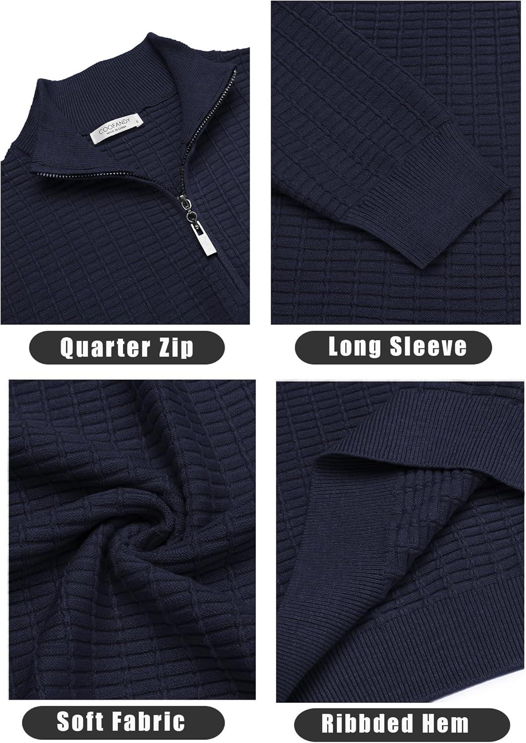 COOFANDY Men’s Quarter Zip Sweaters Slim Fit Lightweight Cotton Knitted Casual Mock Neck Pullover Sweaters(Navy Blue #)
