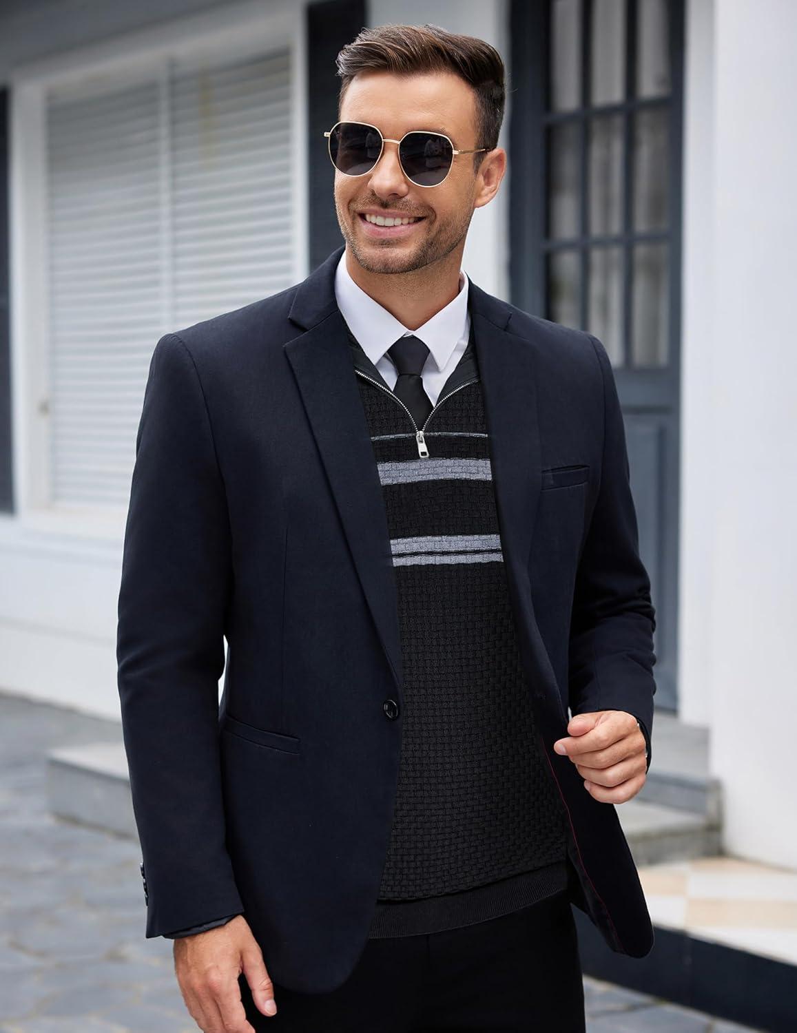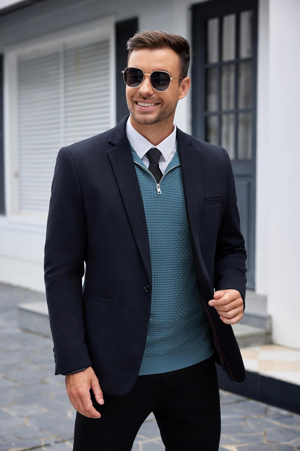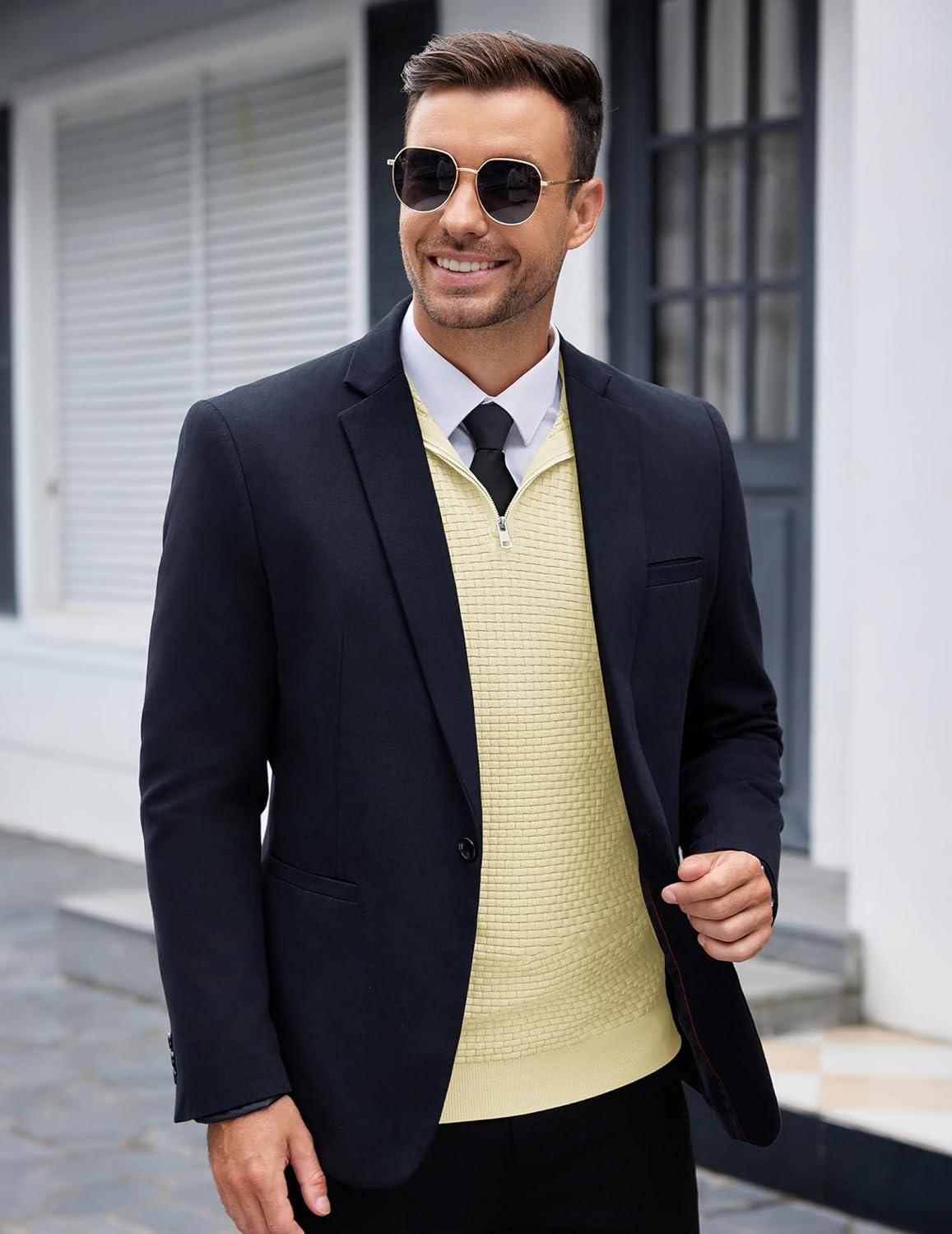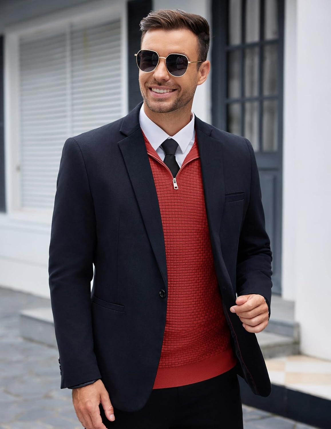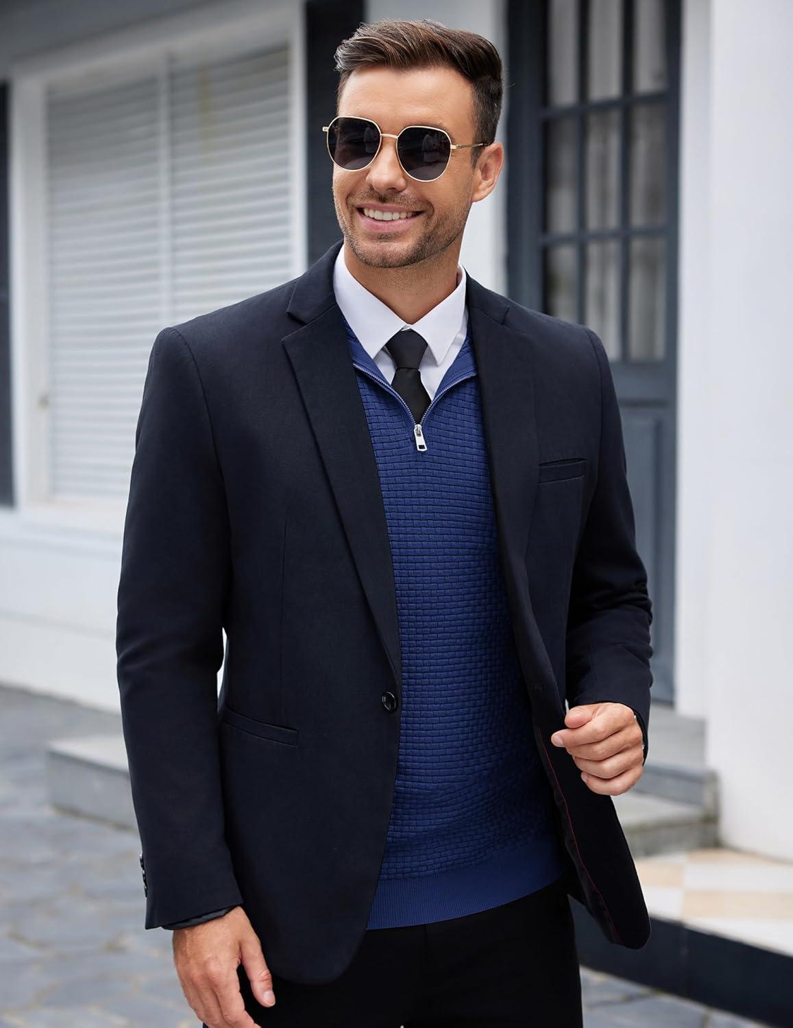 COOFANDY Men’s Quarter Zip Sweaters Slim Fit Lightweight Cotton Knitted Casual Mock Neck Pullover Sweaters(Navy Blue #)