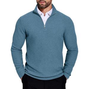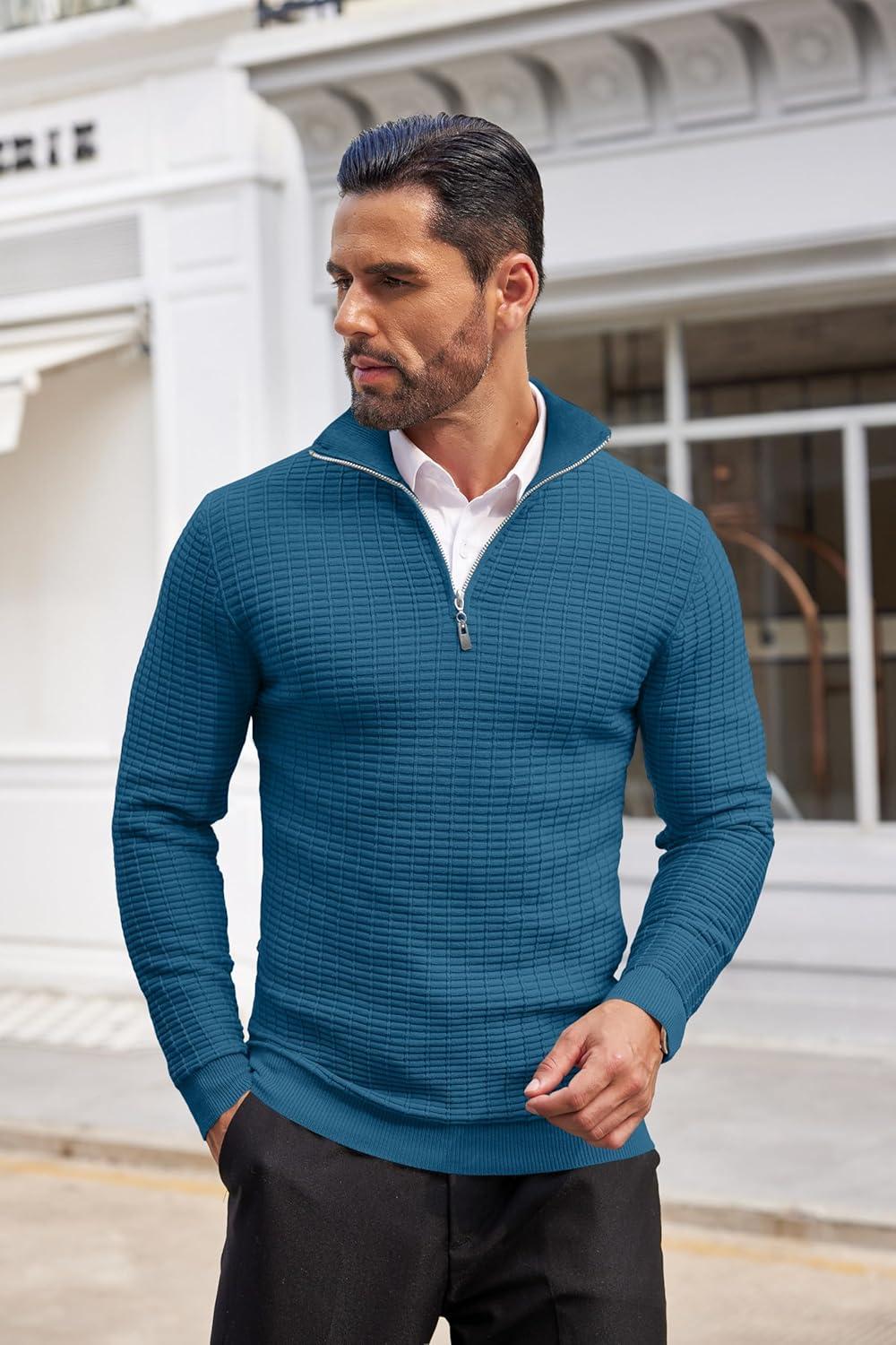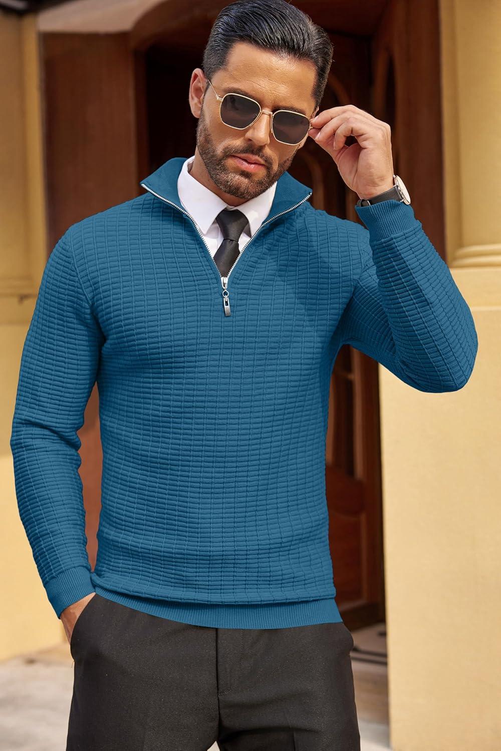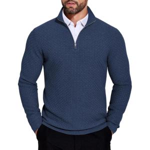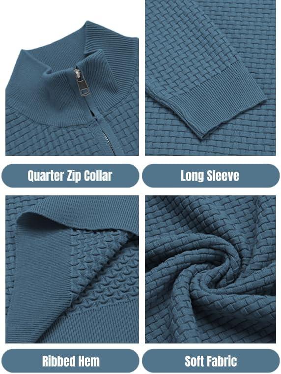 COOFANDY Men’s Quarter Zip Sweaters Slim Fit Lightweight Knitted Mock Neck Pullover Casual Polo Sweaters(Denim Blue)