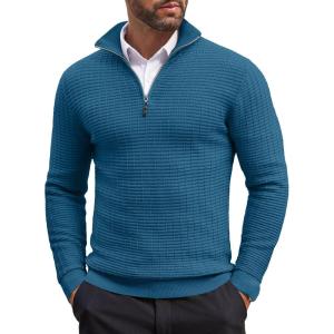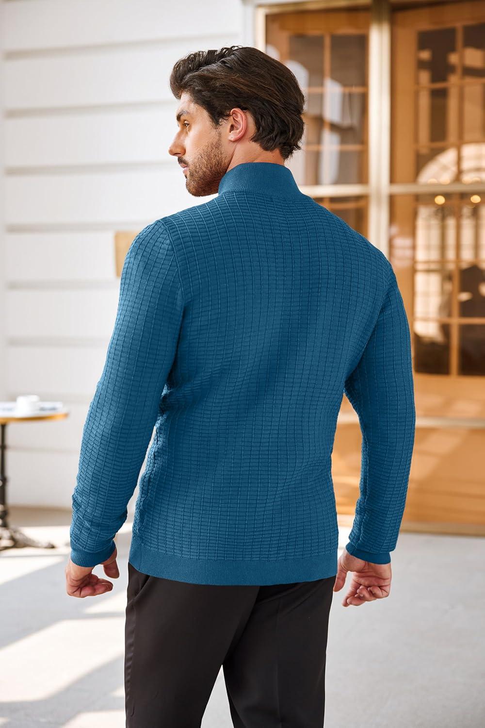 COOFANDY Men’s Quarter Zip Sweaters Slim Fit Lightweight Cotton Knitted Casual Mock Neck Pullover Sweaters(Peacock Blue)