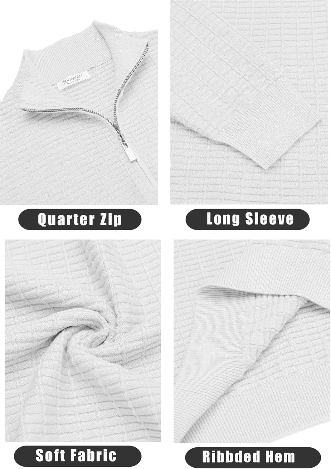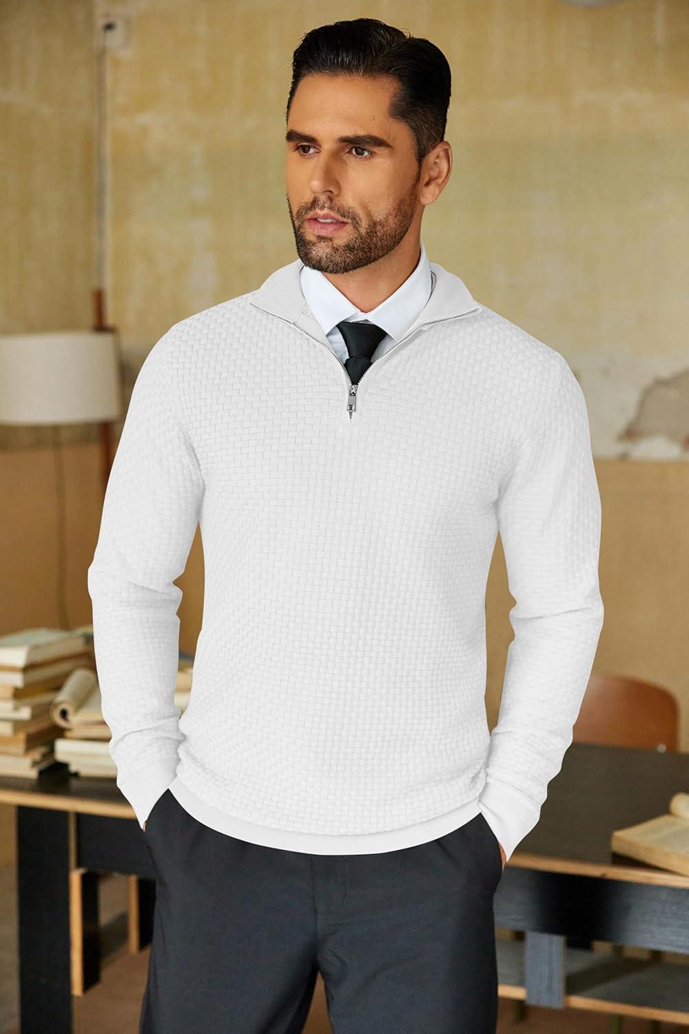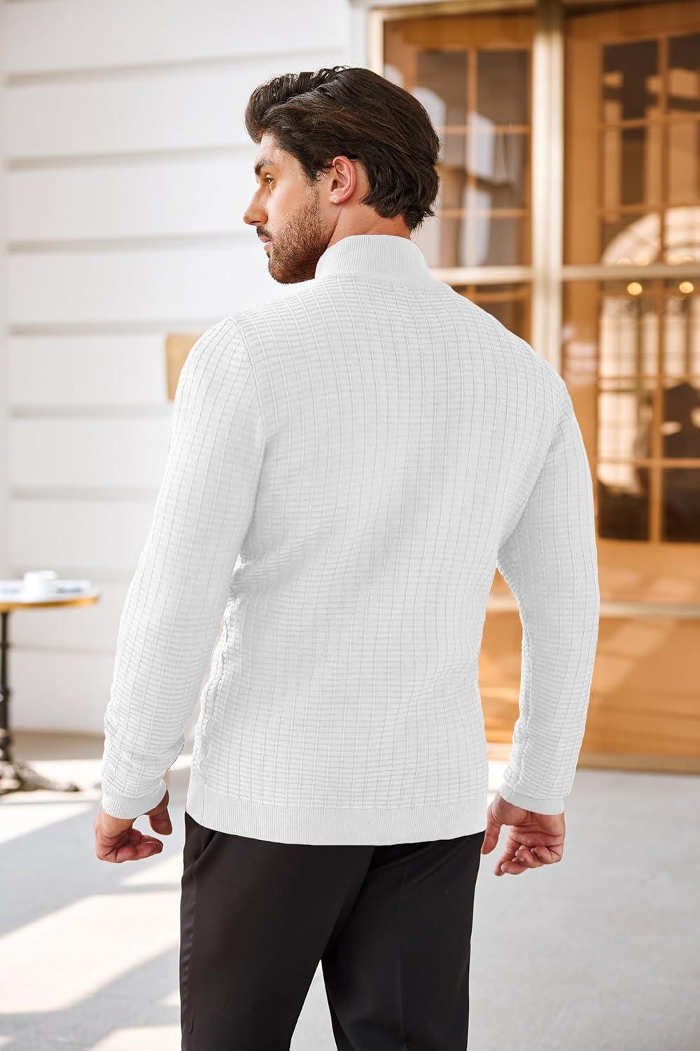 COOFANDY Men’s Quarter Zip Sweaters Slim Fit Lightweight Knitted Mock Neck Pullover Casual Polo Sweaters(White)
