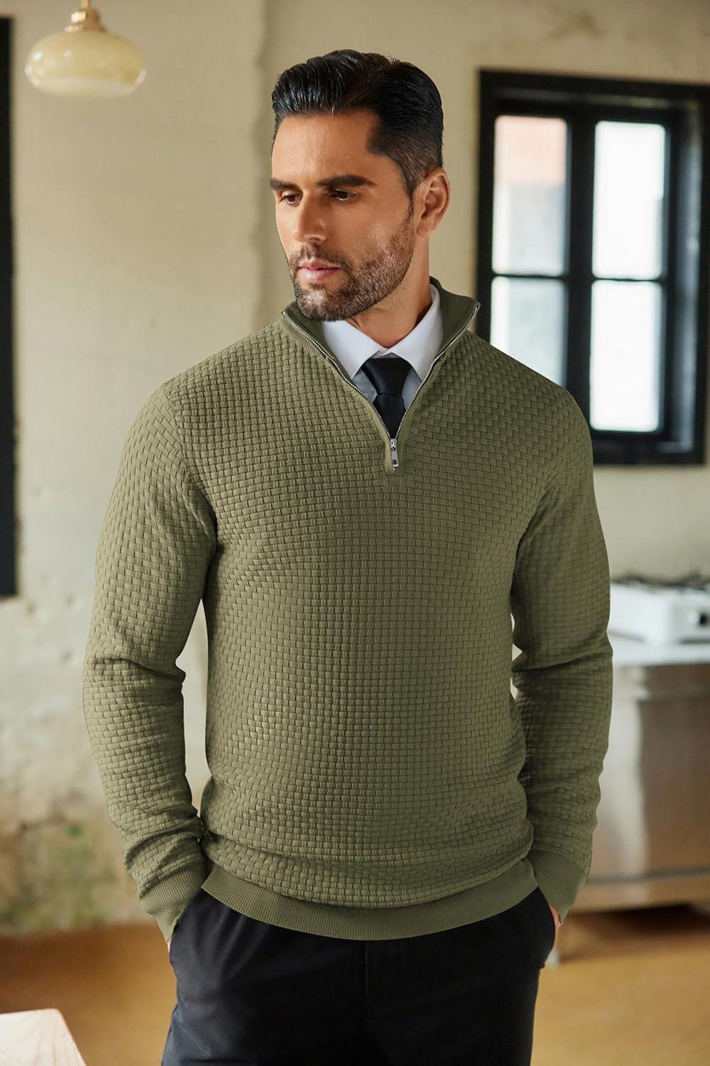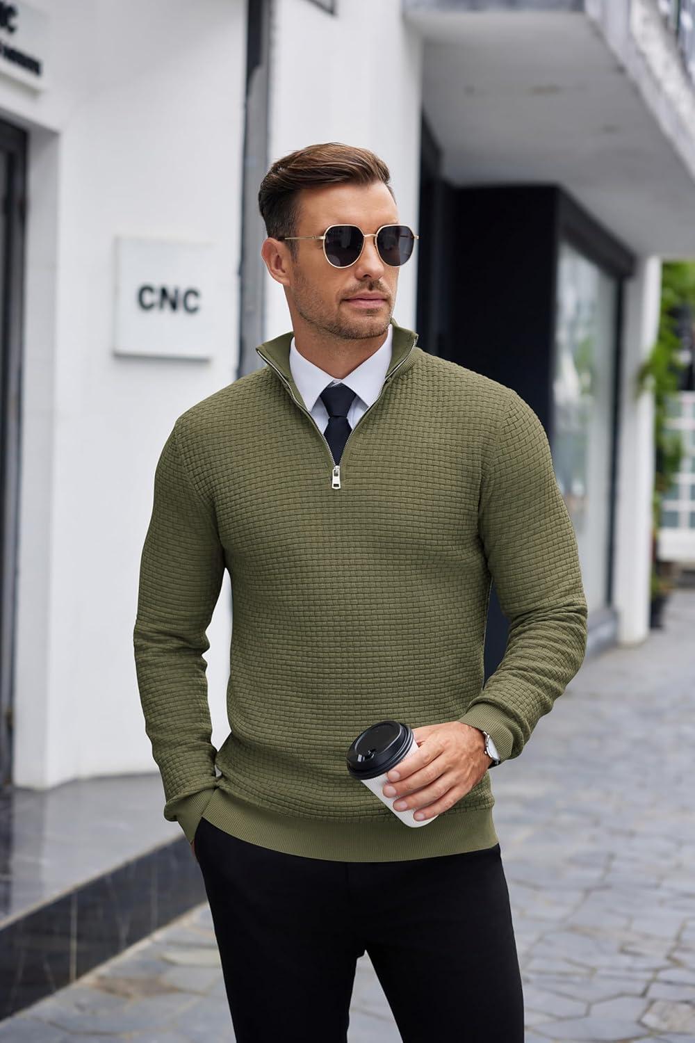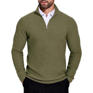 COOFANDY Men’s Quarter Zip Sweaters Slim Fit Lightweight Knitted Mock Neck Pullover Casual Polo Sweaters(Army Green)