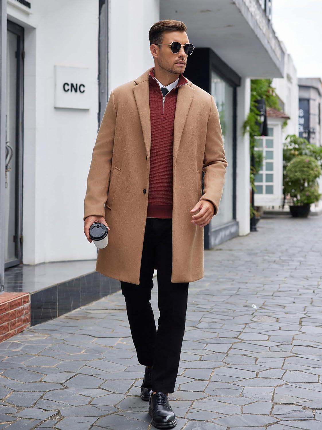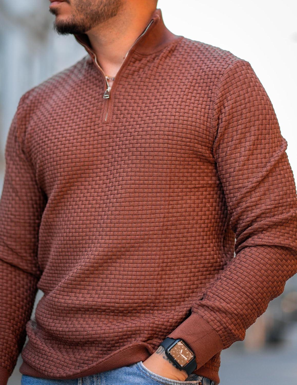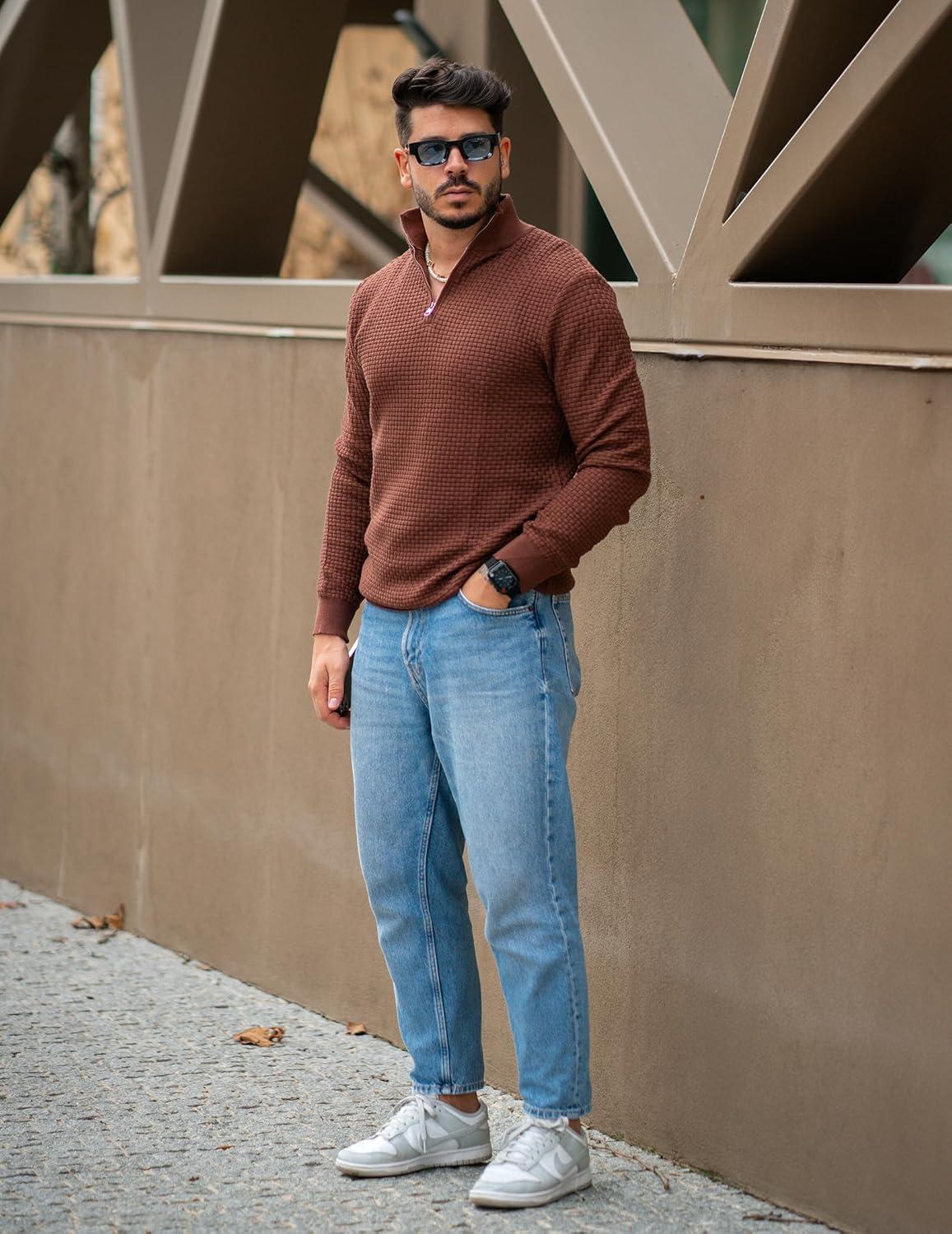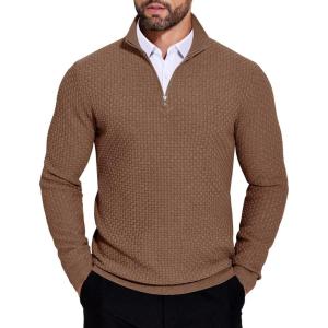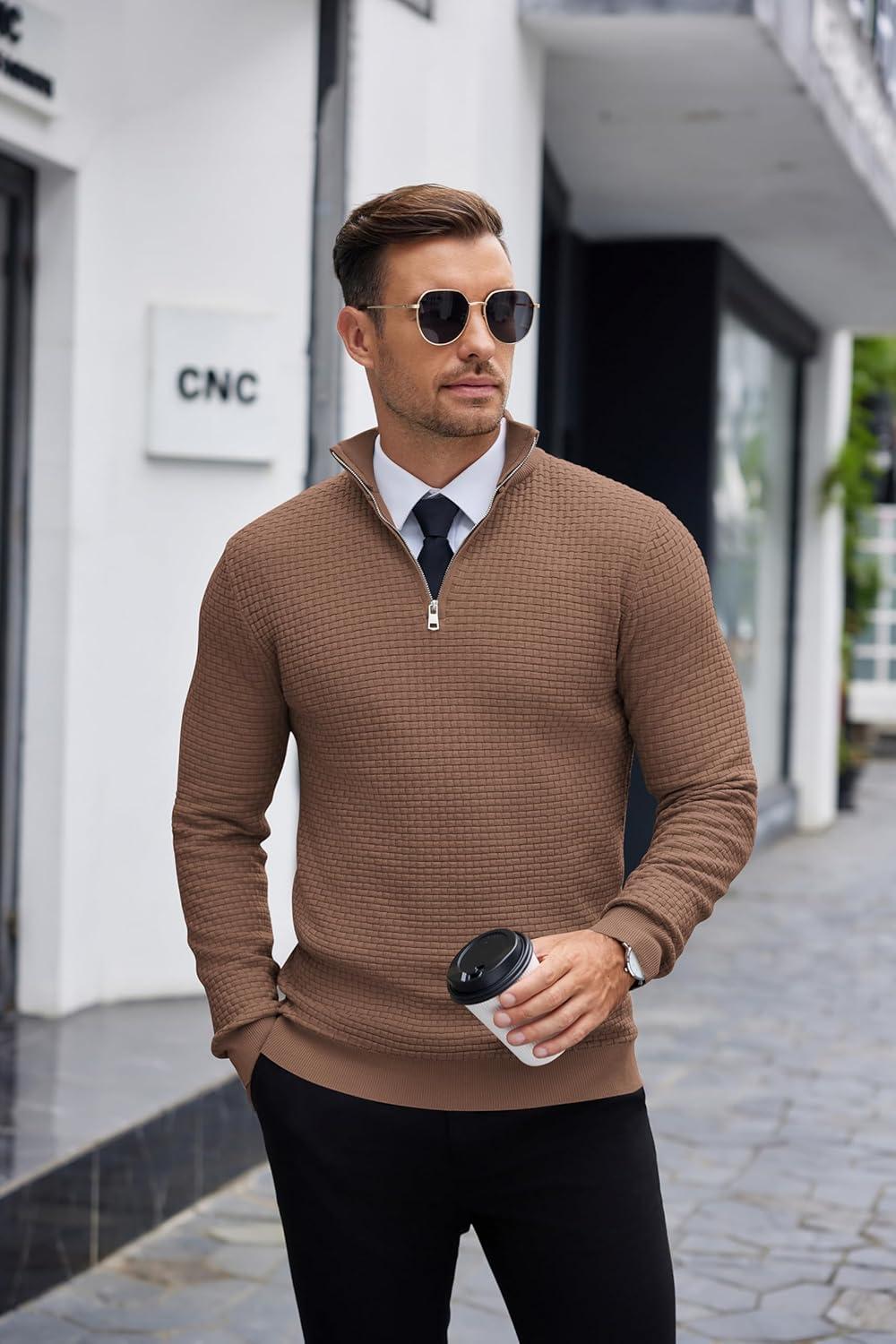 COOFANDY Men’s Quarter Zip Sweaters Slim Fit Lightweight Knitted Mock Neck Pullover Casual Polo Sweaters(Brown)