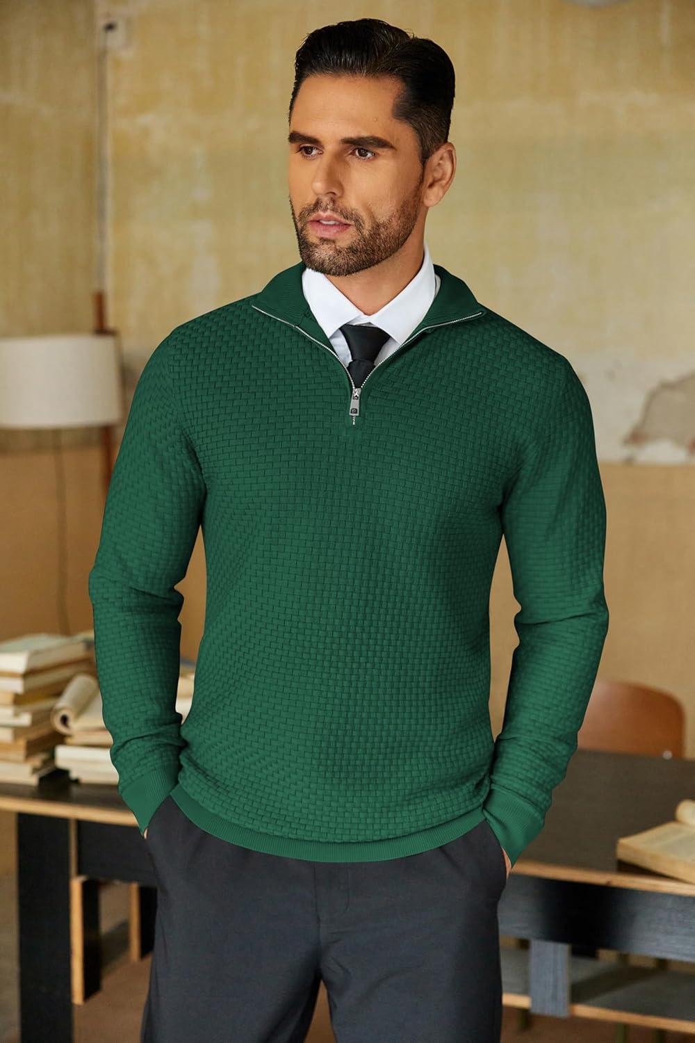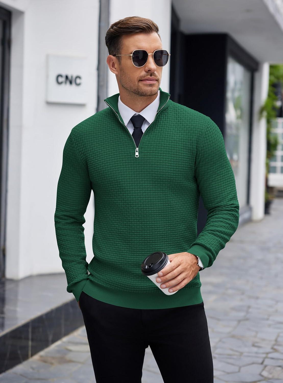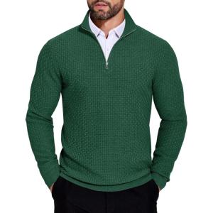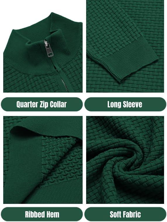 COOFANDY Men’s Quarter Zip Sweaters Slim Fit Lightweight Knitted Mock Neck Pullover Casual Polo Sweaters(Dark Green)