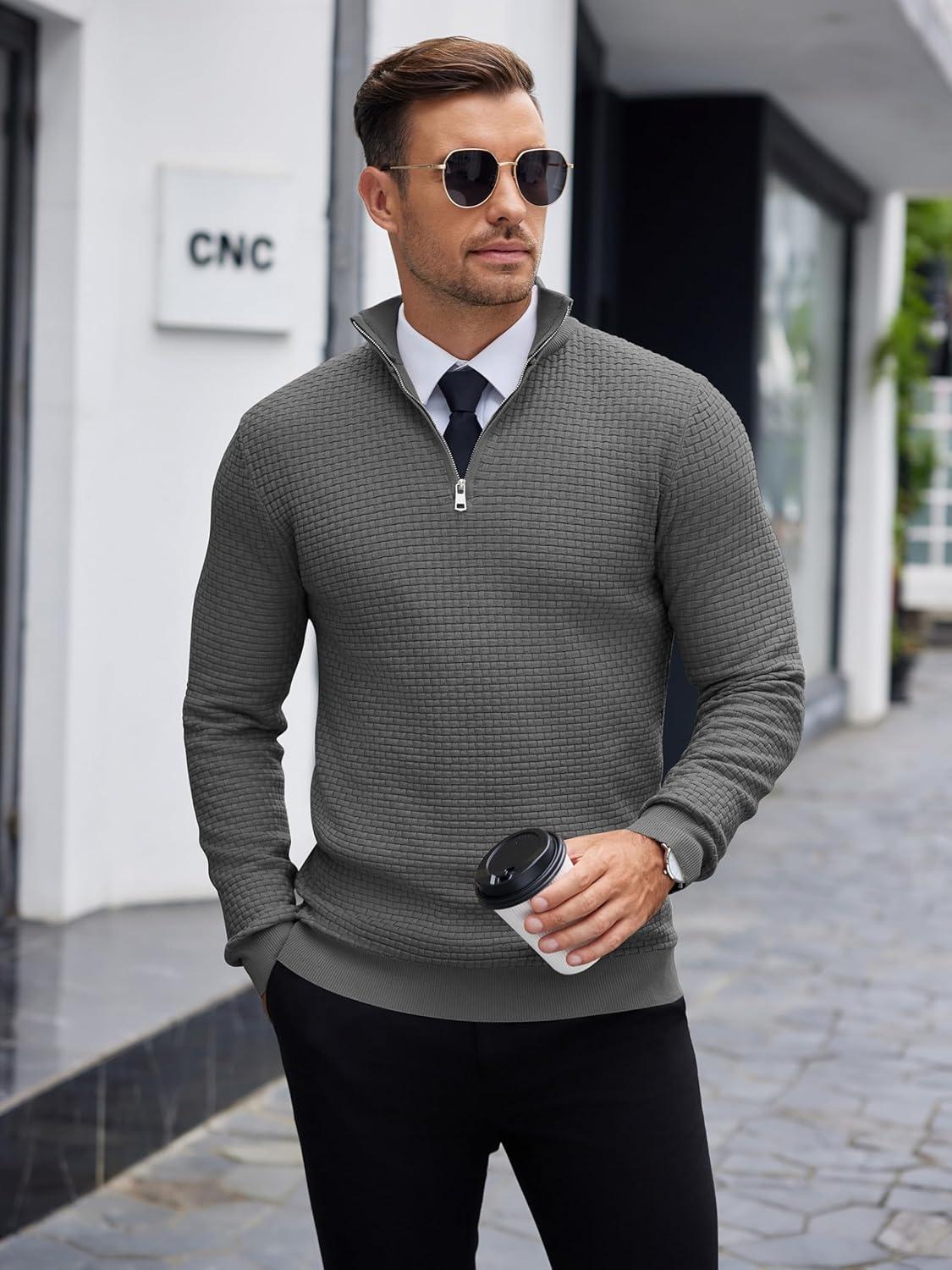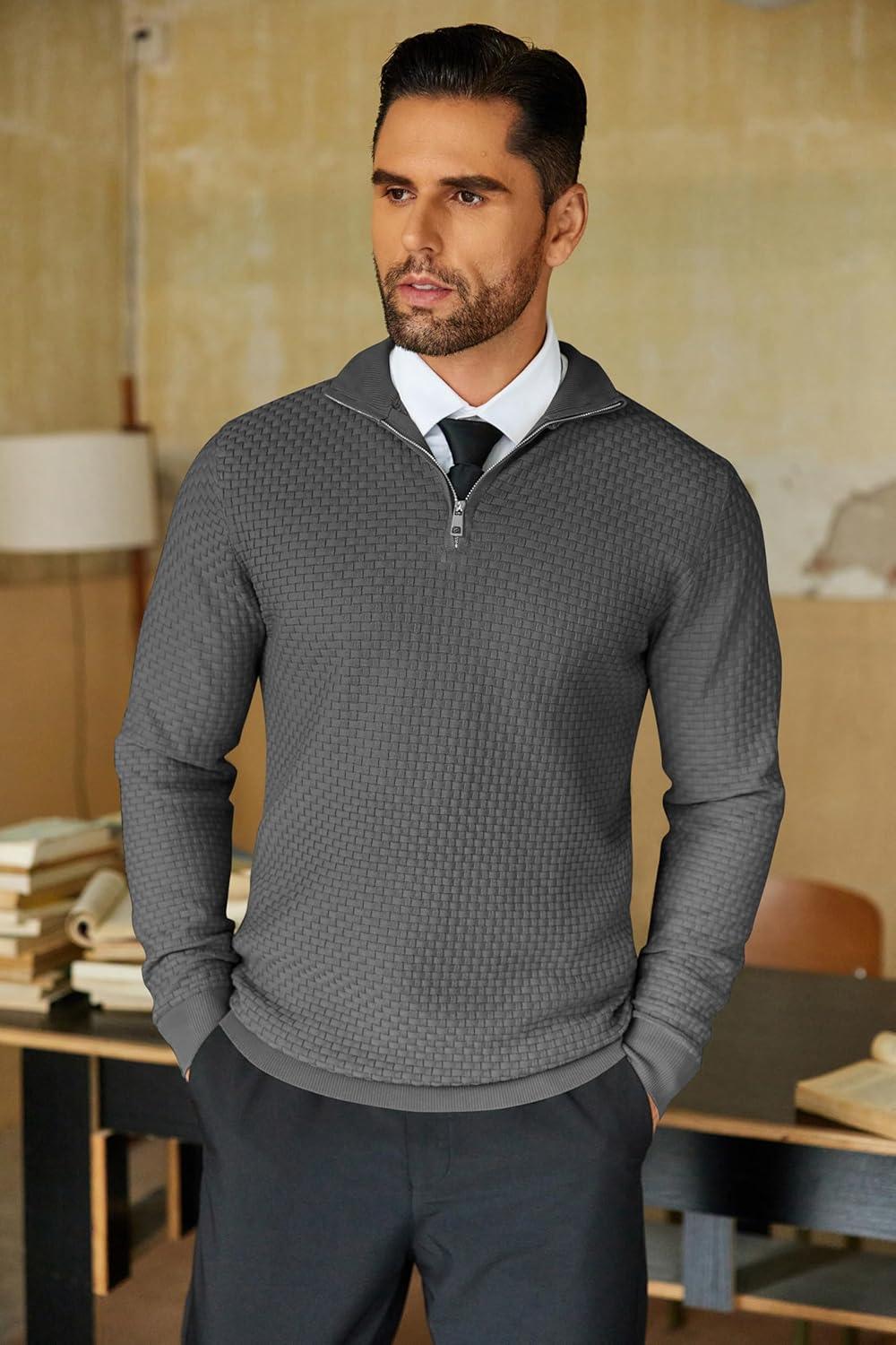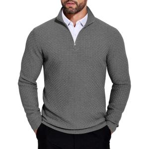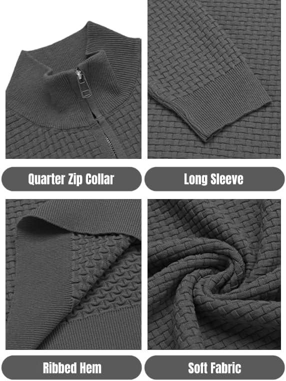 COOFANDY Men’s Quarter Zip Sweaters Slim Fit Lightweight Knitted Mock Neck Pullover Casual Polo Sweaters(Dark Grey)