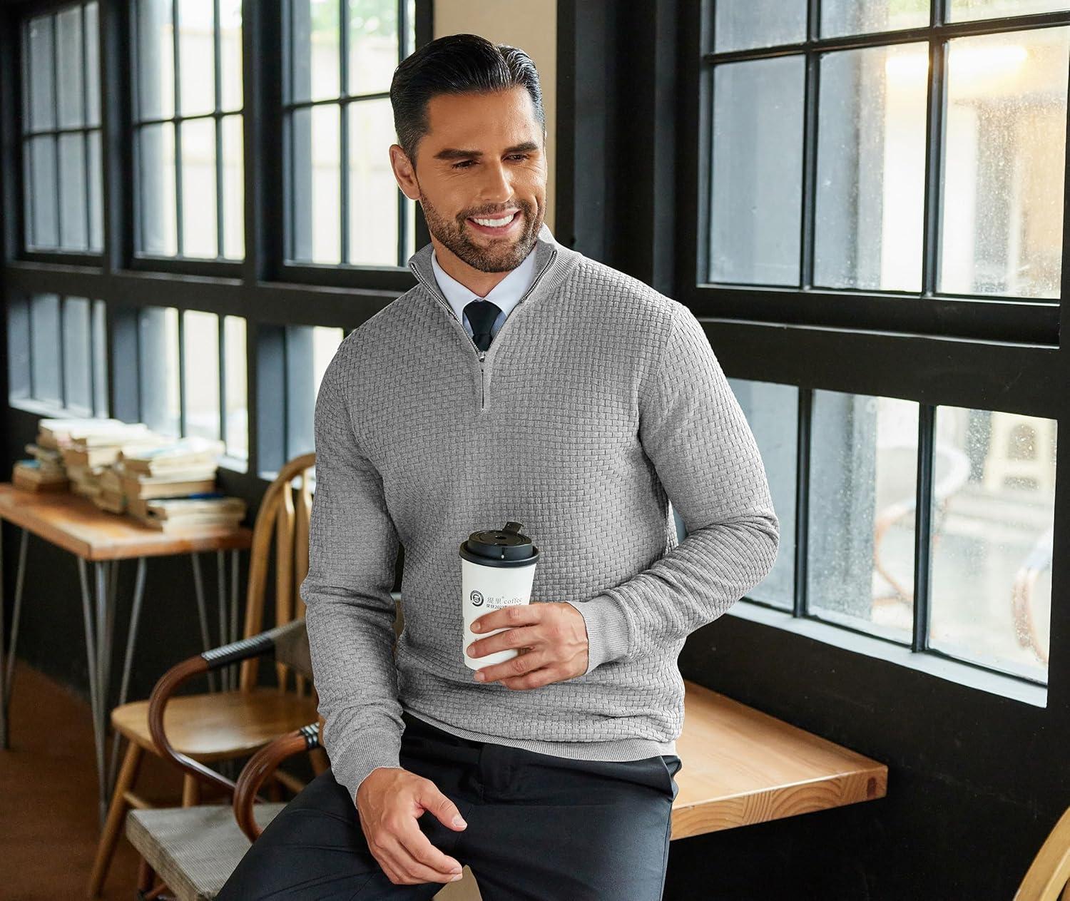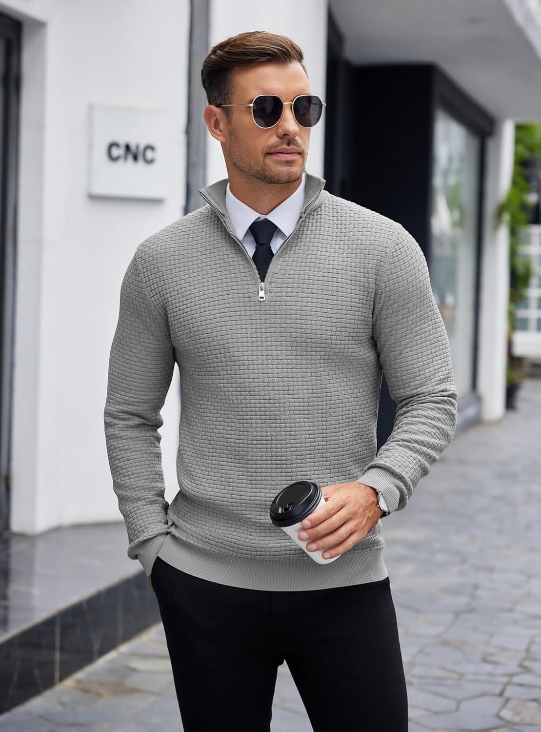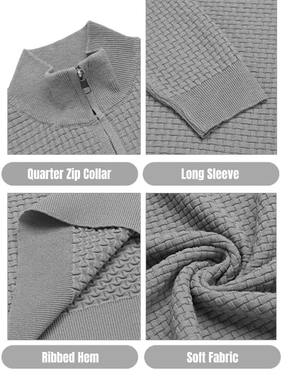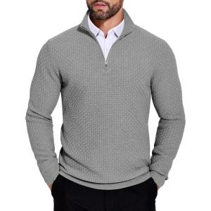 COOFANDY Men’s Quarter Zip Sweaters Slim Fit Lightweight Knitted Mock Neck Pullover Casual Polo Sweaters(Grey)