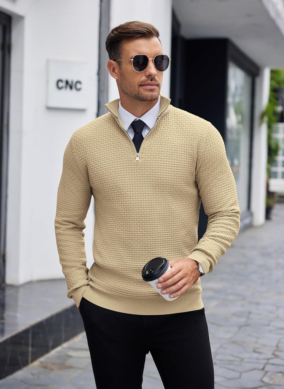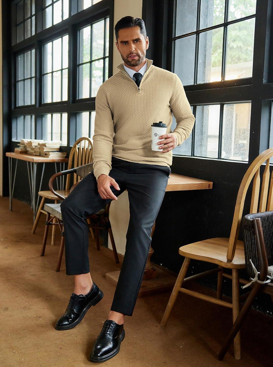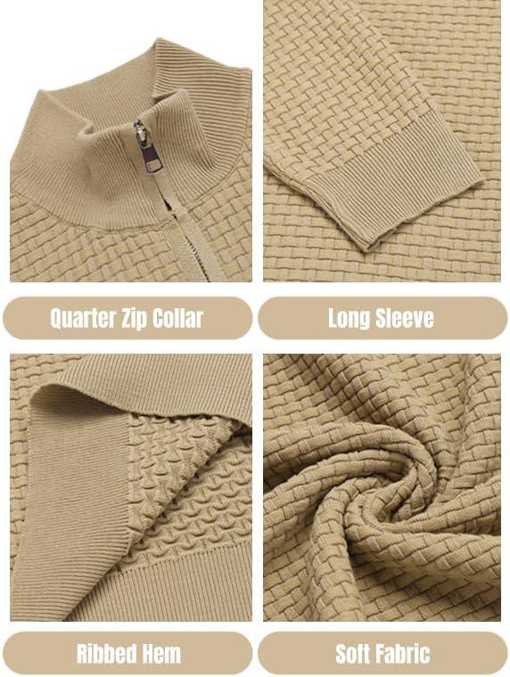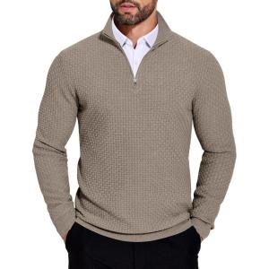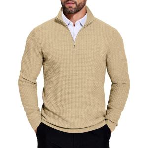 COOFANDY Men’s Quarter Zip Sweaters Slim Fit Lightweight Knitted Mock Neck Pullover Casual Polo Sweaters(Khaki)