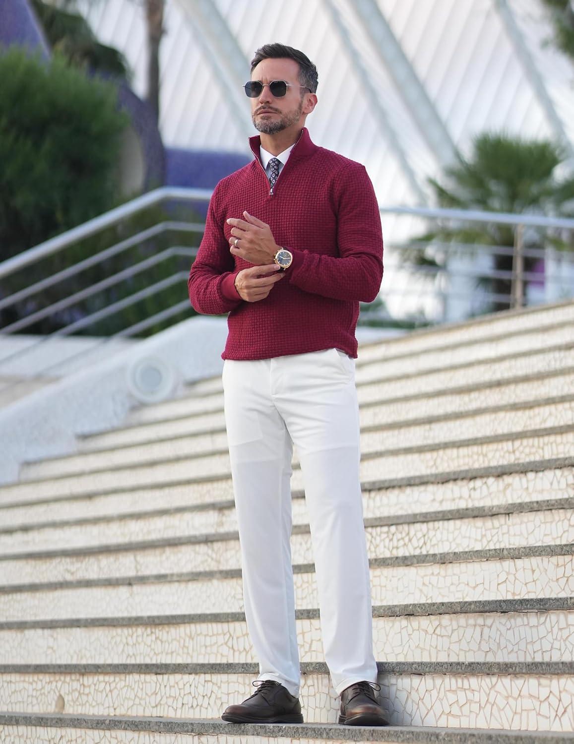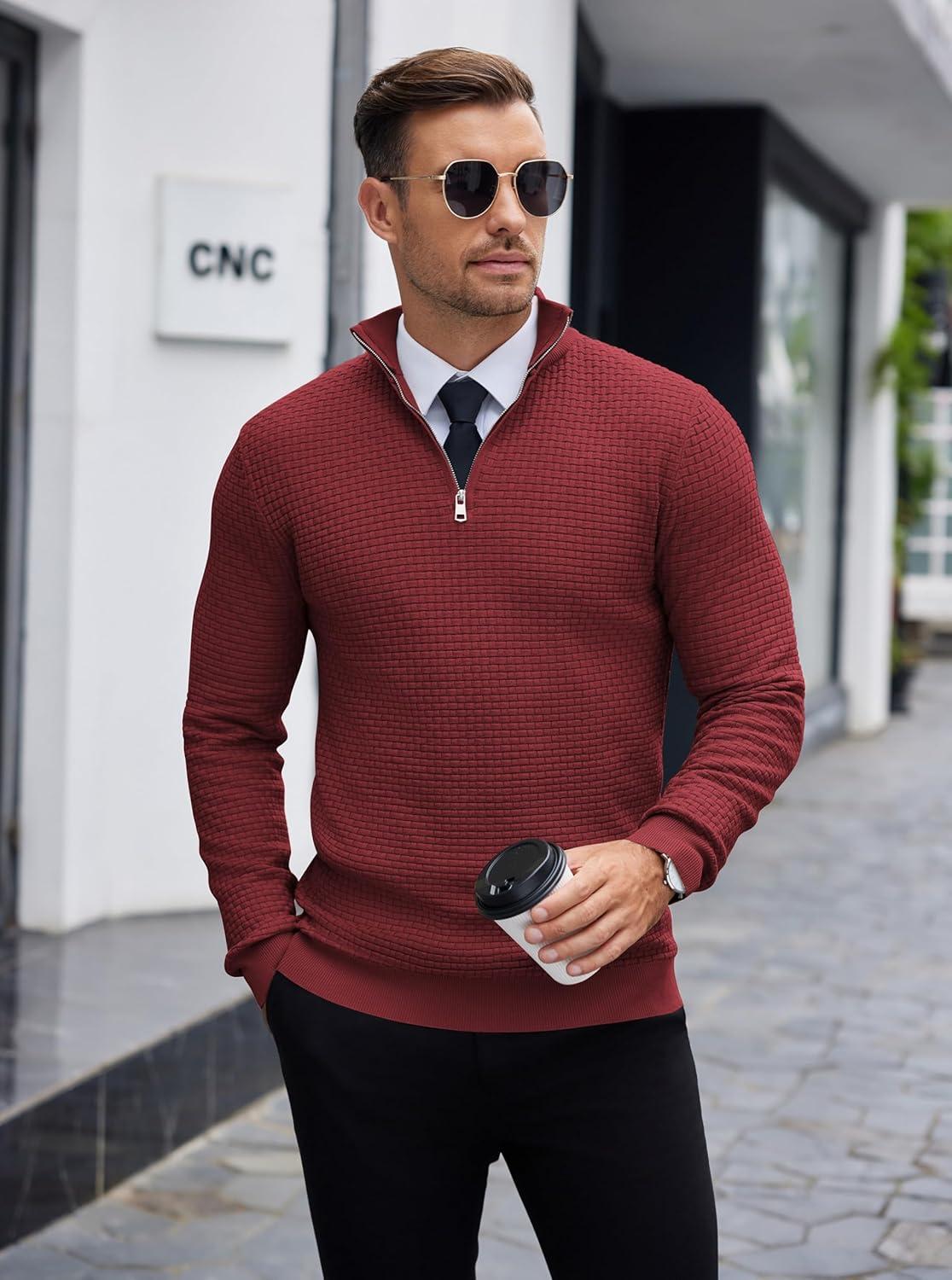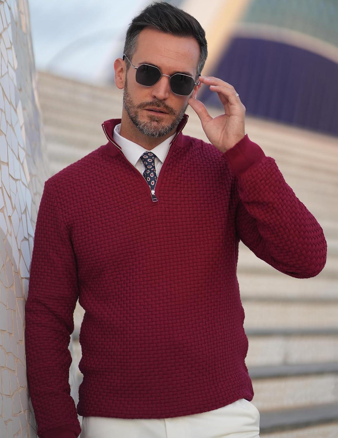 COOFANDY Men’s Quarter Zip Sweaters Slim Fit Lightweight Knitted Mock Neck Pullover Casual Polo Sweaters(Wine Red)