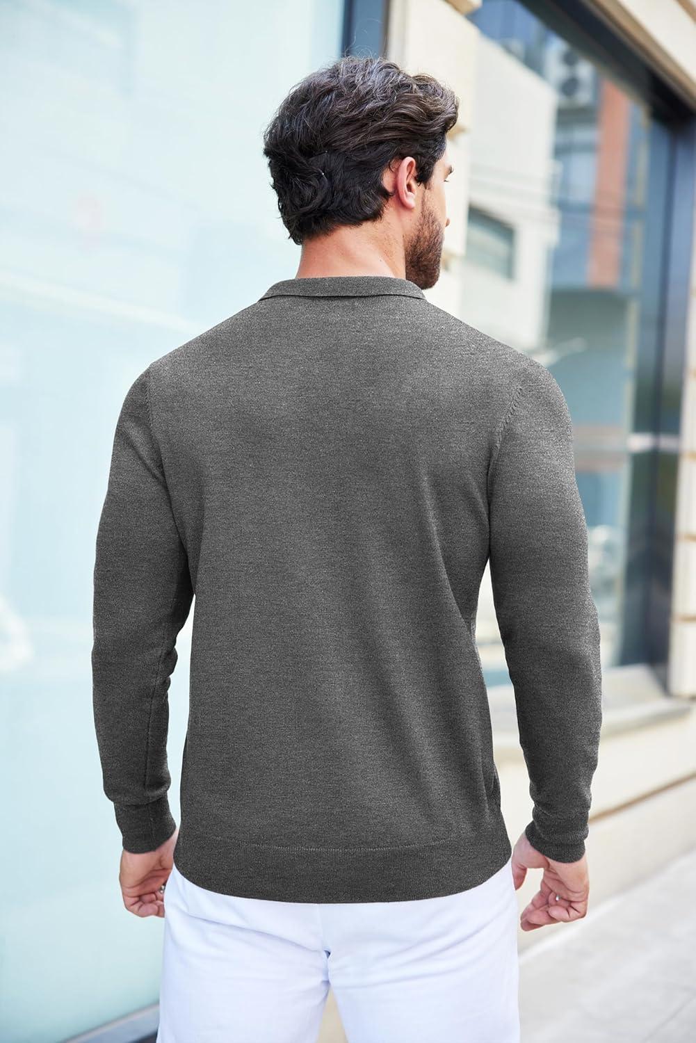 COOFANDY Mens Knit Polo Sweater Long Sleeve Polo Collared Sweaters Hidden Button Casual Pullover Sweater(Dark Grey)