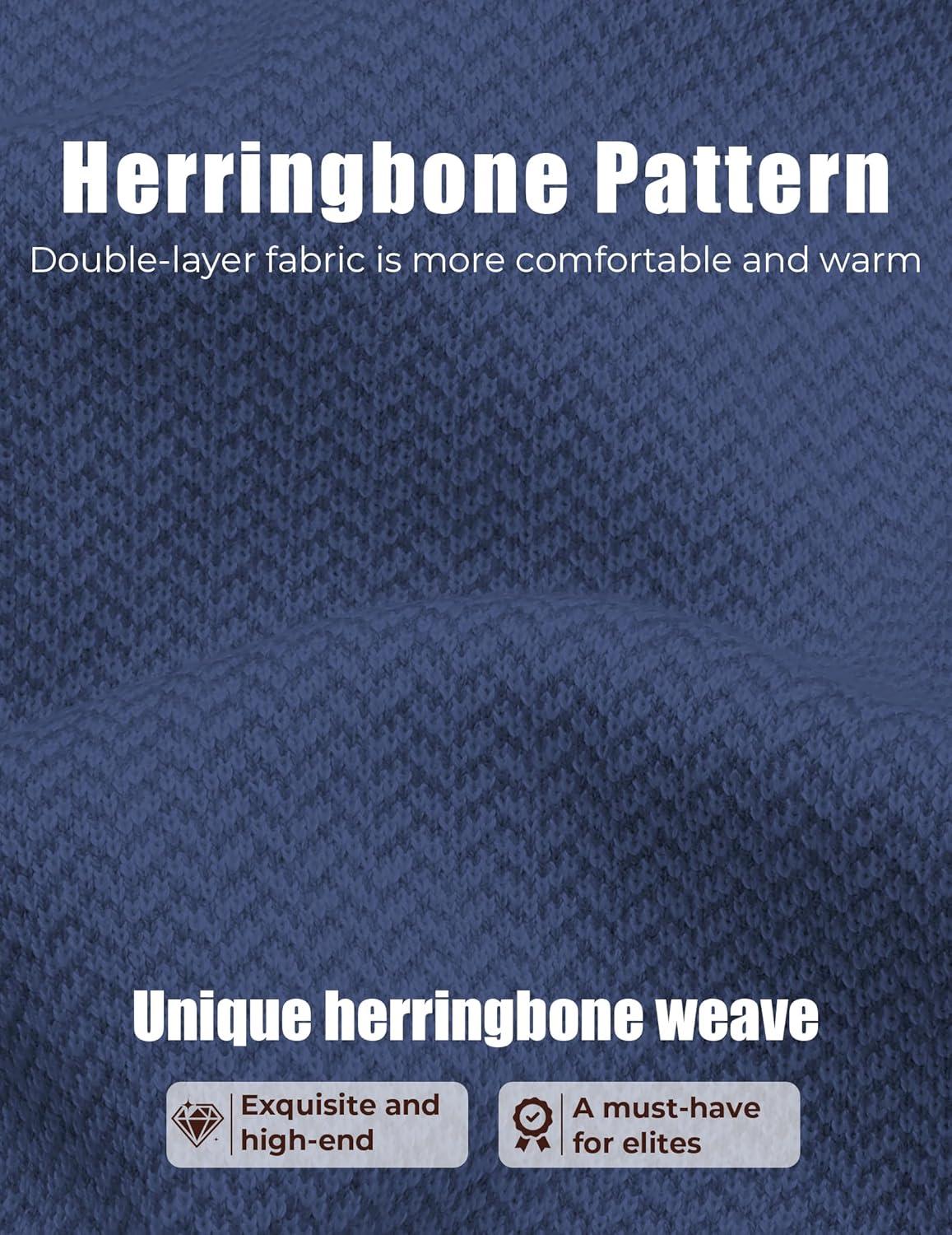 COOFANDY Mens Knit Polo Shirts Casual Long Sleeve Classic Polo Shirts Button Down Golf Shirts(Herringbone Blue)