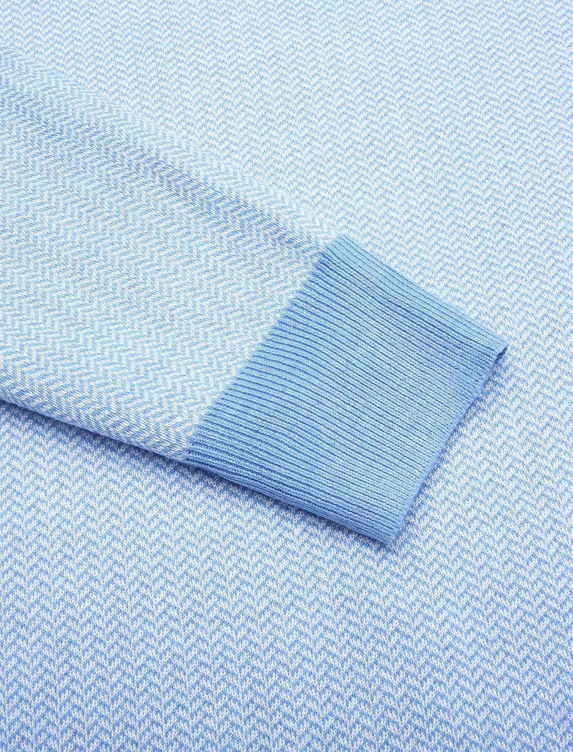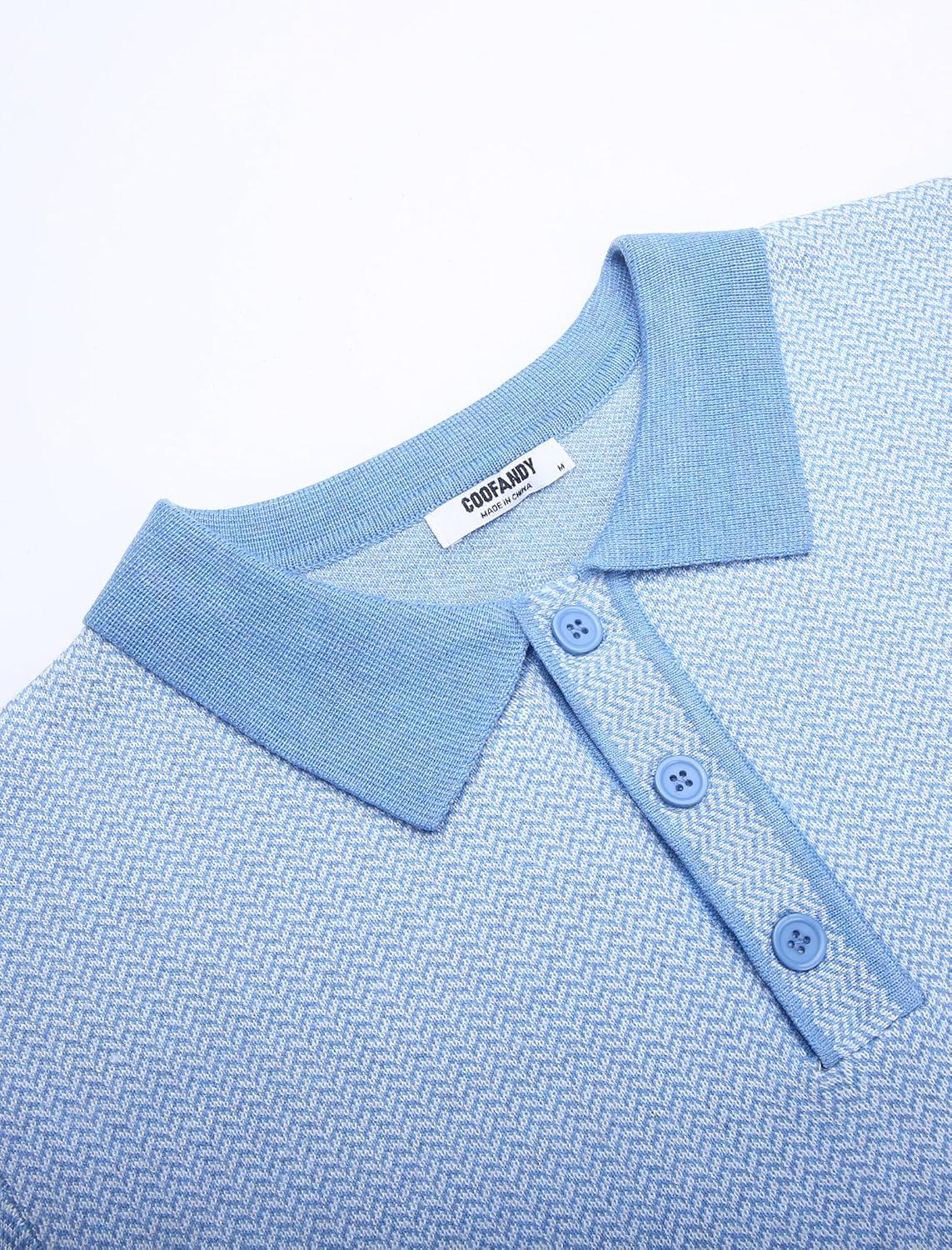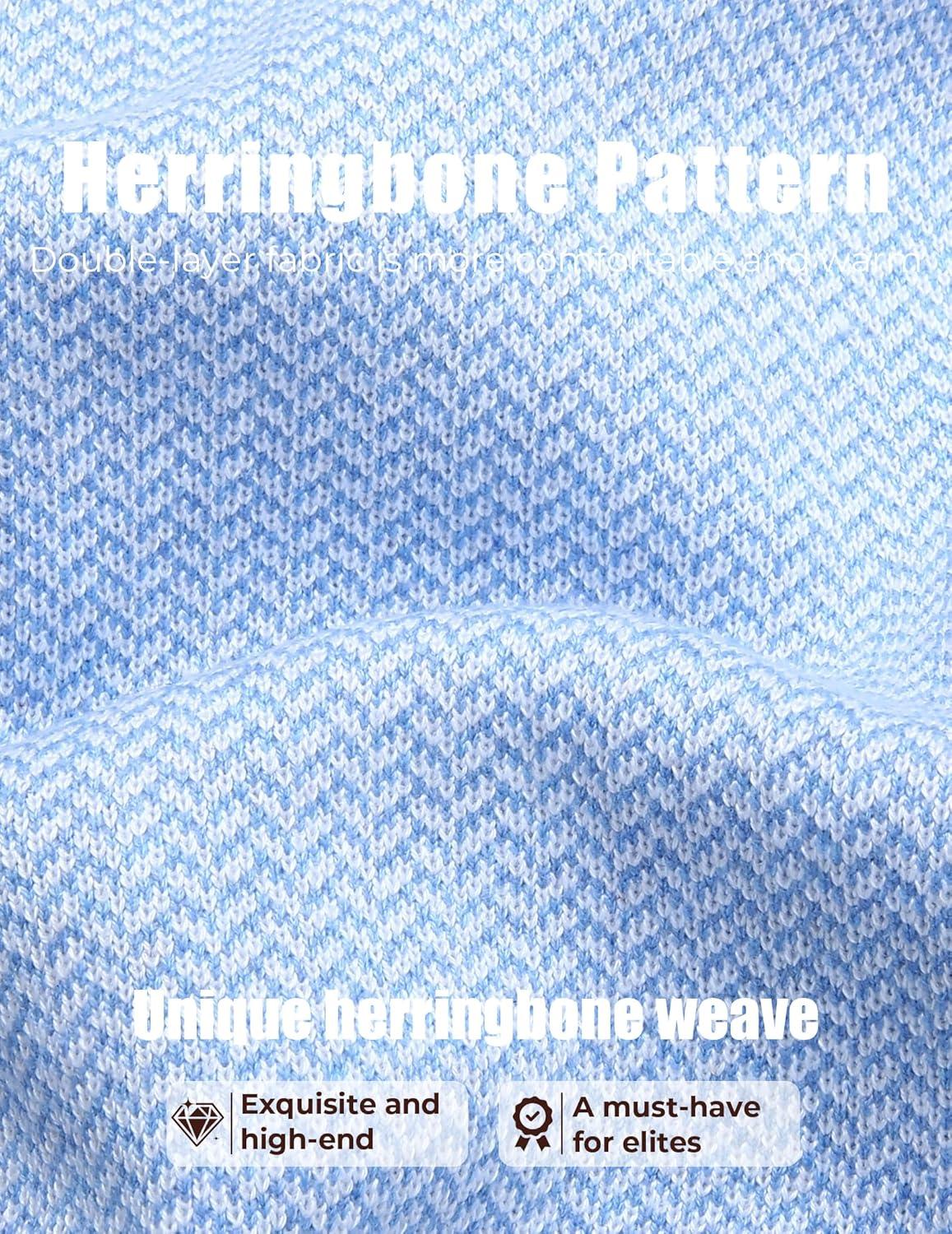 COOFANDY Mens Knit Polo Shirts Casual Long Sleeve Classic Polo Shirts Button Down Golf Shirts(Herringbone Light Blue)