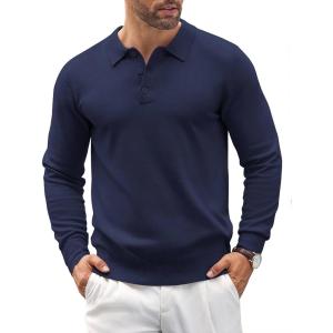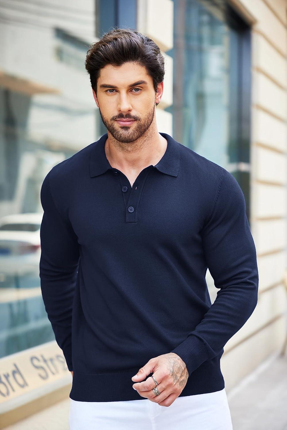 COOFANDY Mens Knit Polo Shirts Long Sleeve Sweater Casual Polo Shirts Lightweight Collared T Shirts(Navy Blue)
