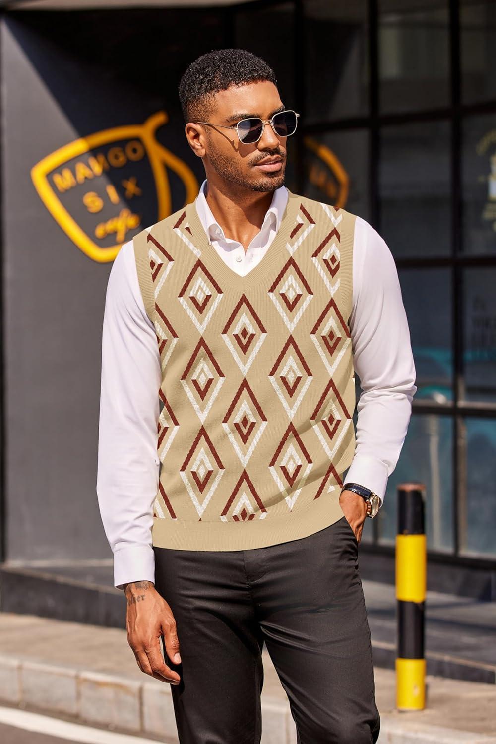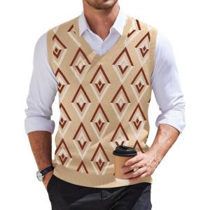 • COOFANDY Men’s Sweater Vest Cable Knitted V Neck Slim Fit Sleeveless Pullover Sweater(Khaki)