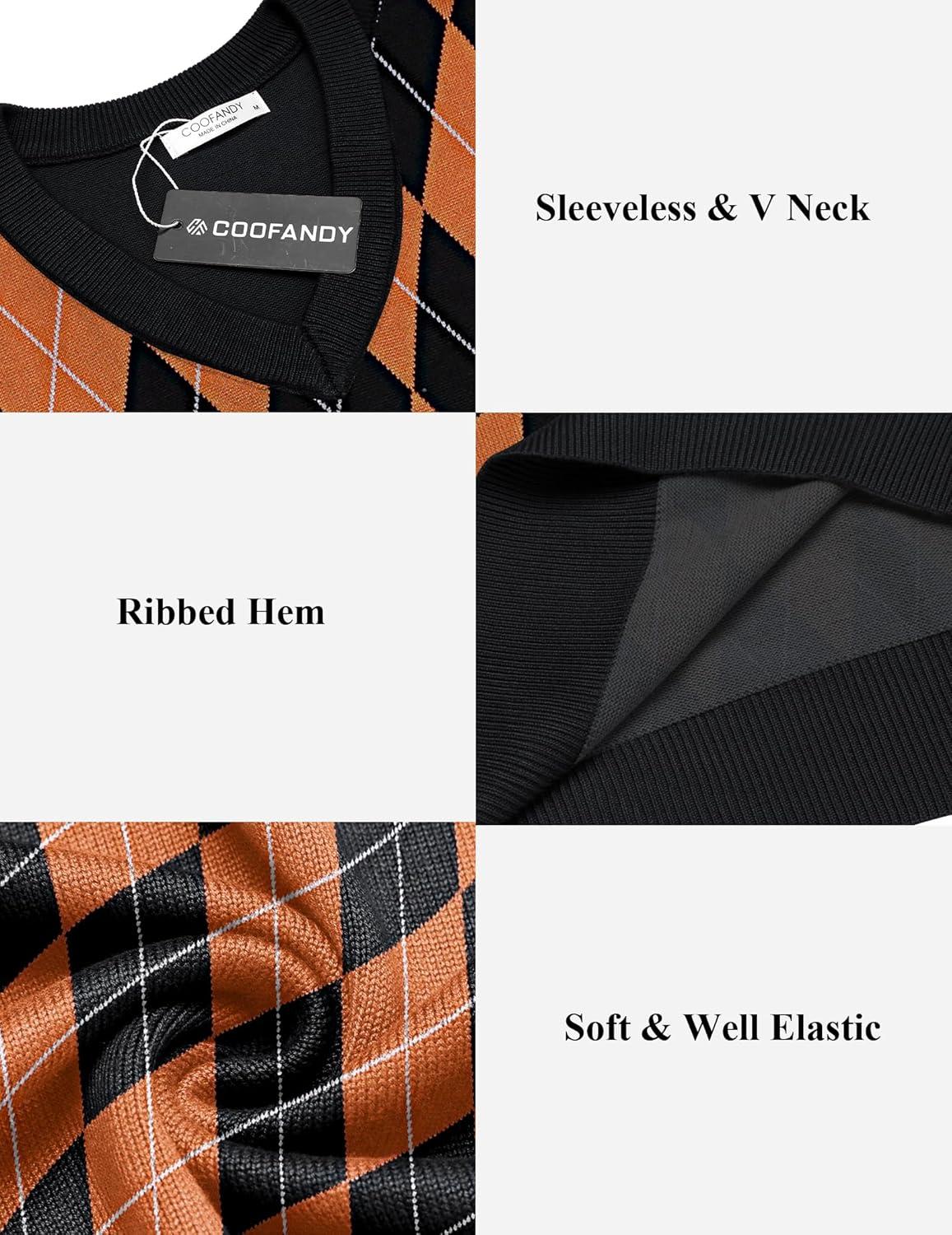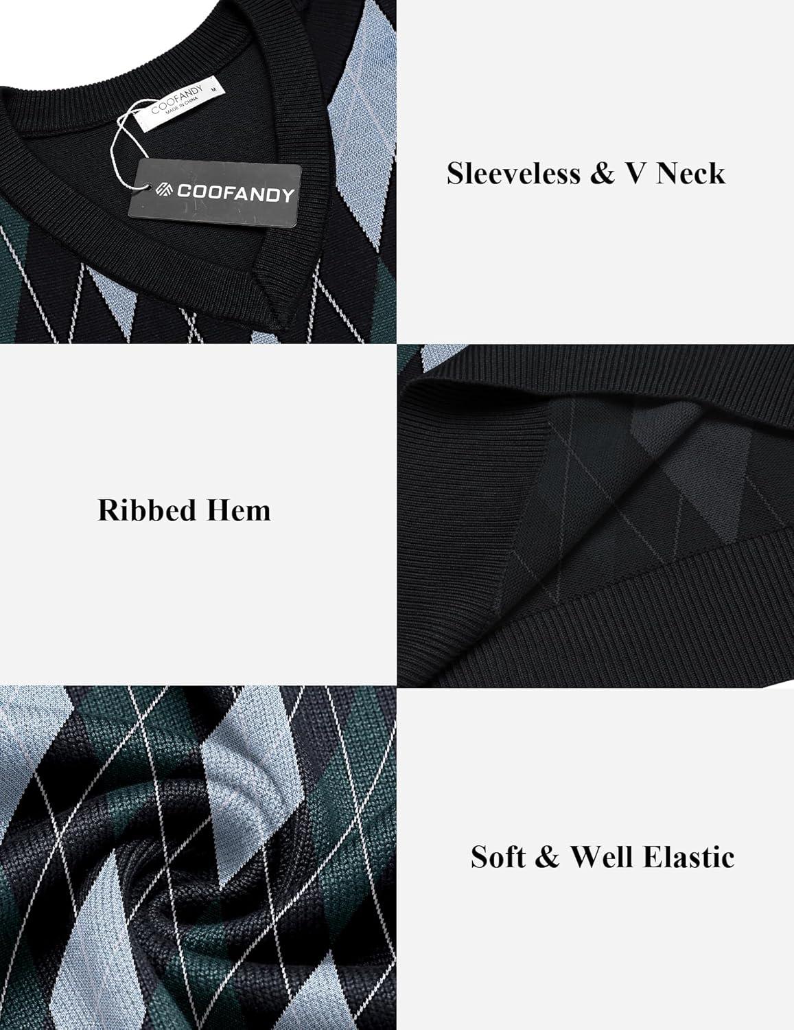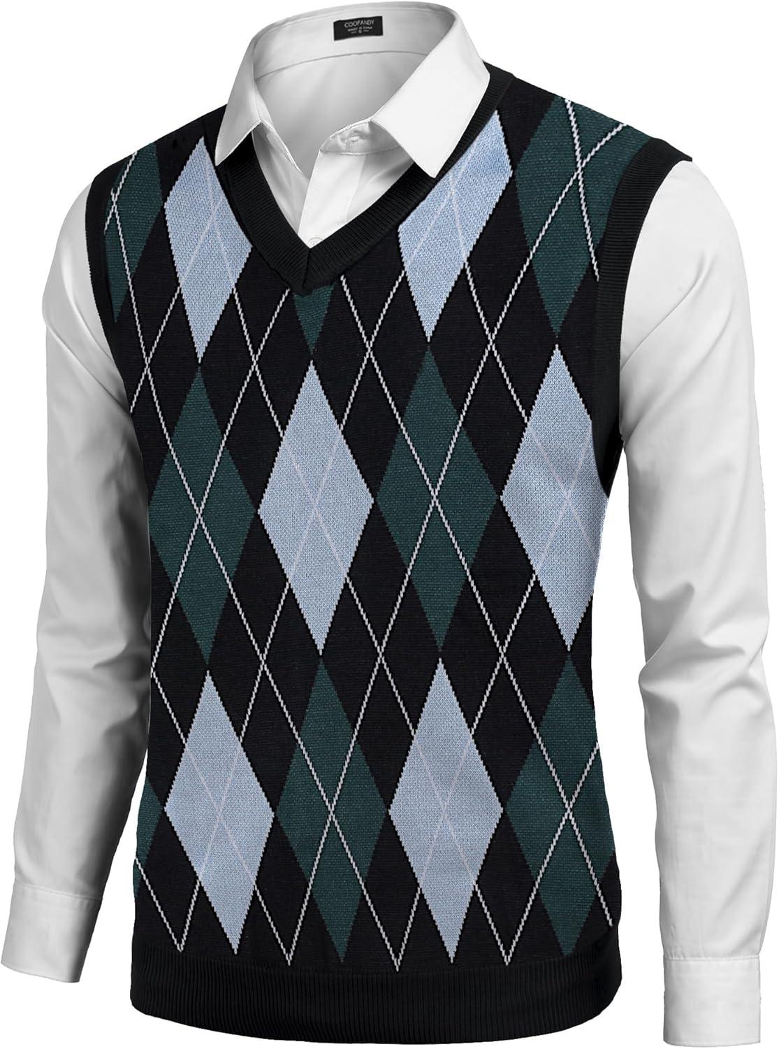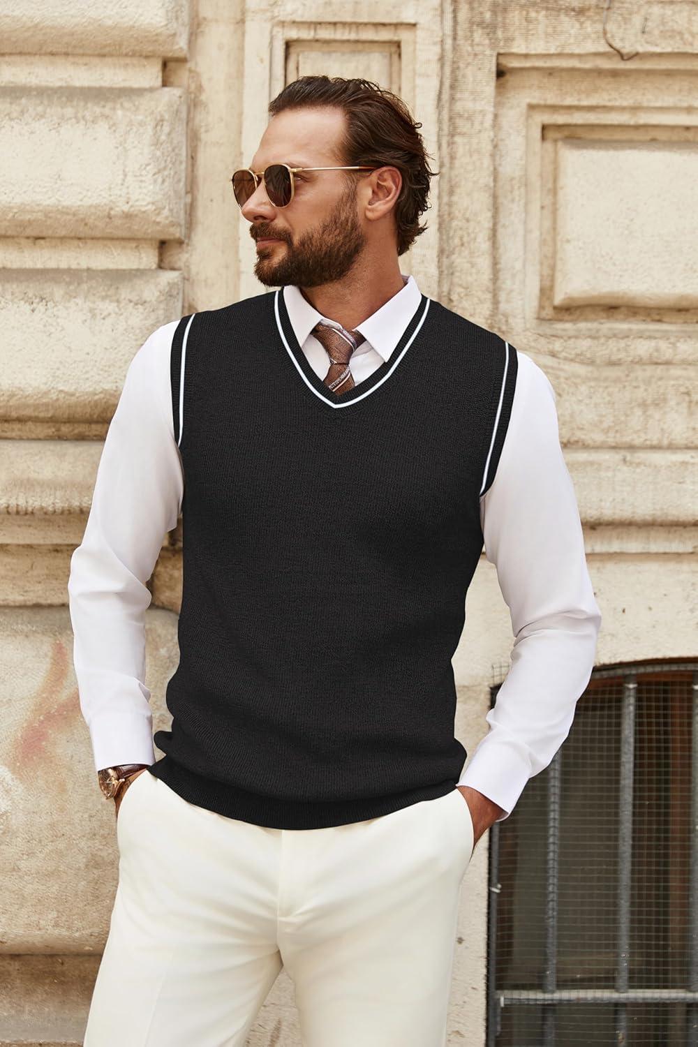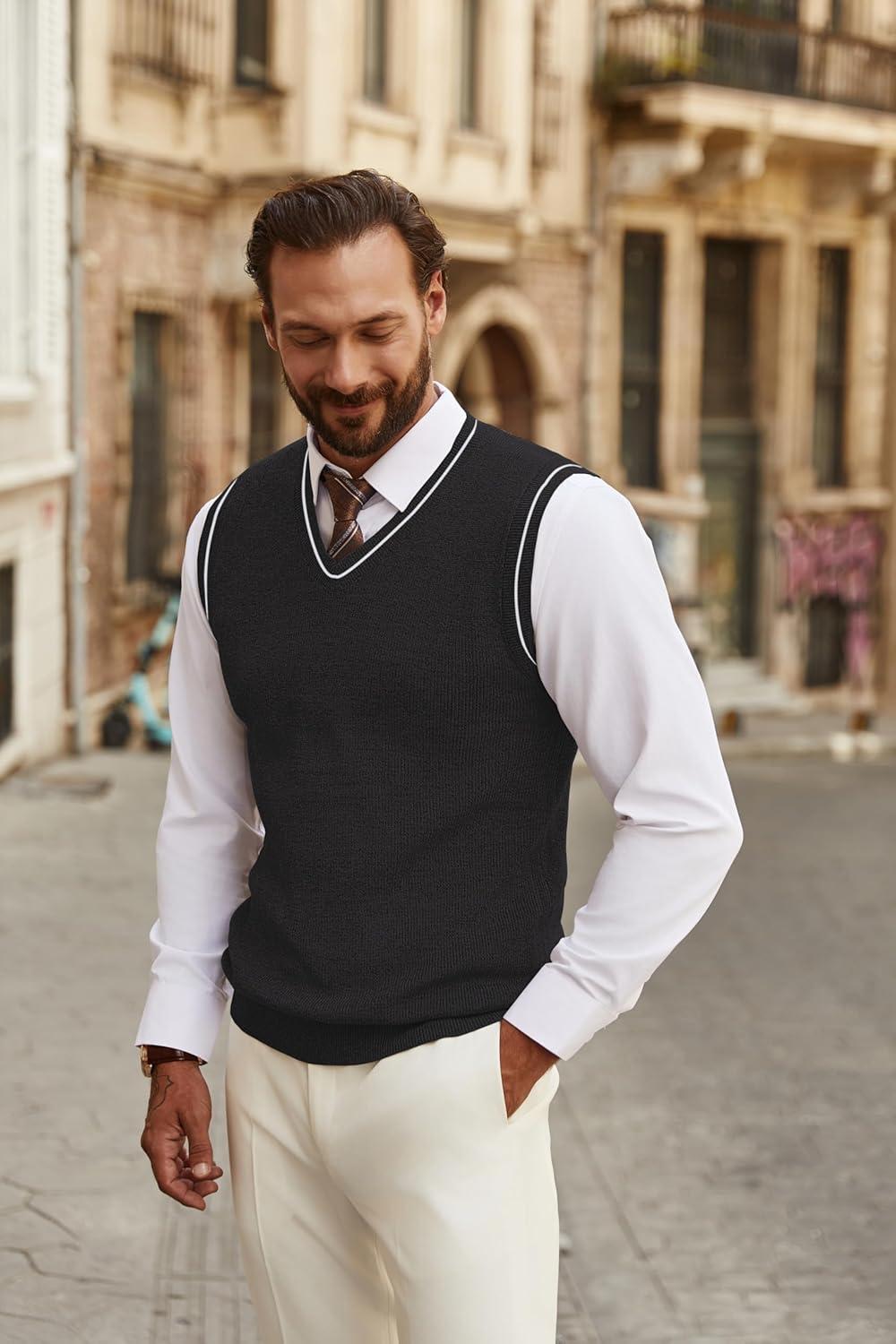 COOFANDY Men’s Sweater Vest V Neck Slim Fit Cable Knitted Sleeveless Pullover Sweater