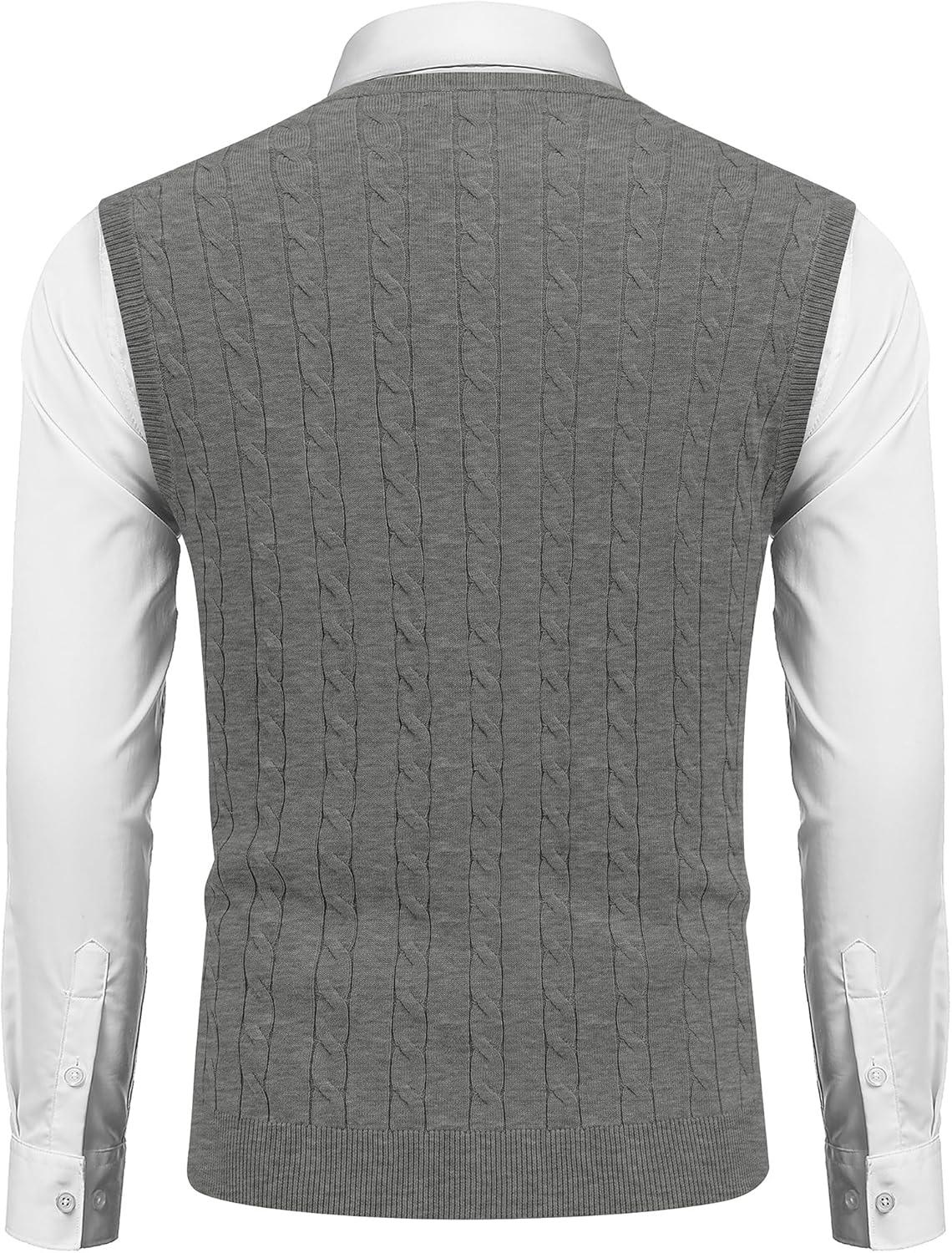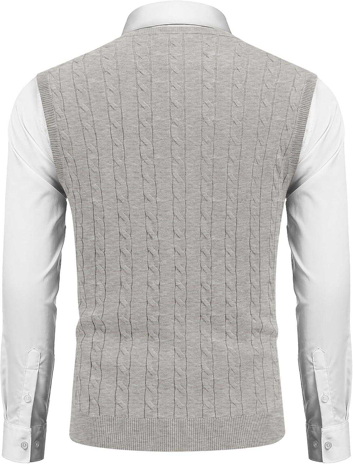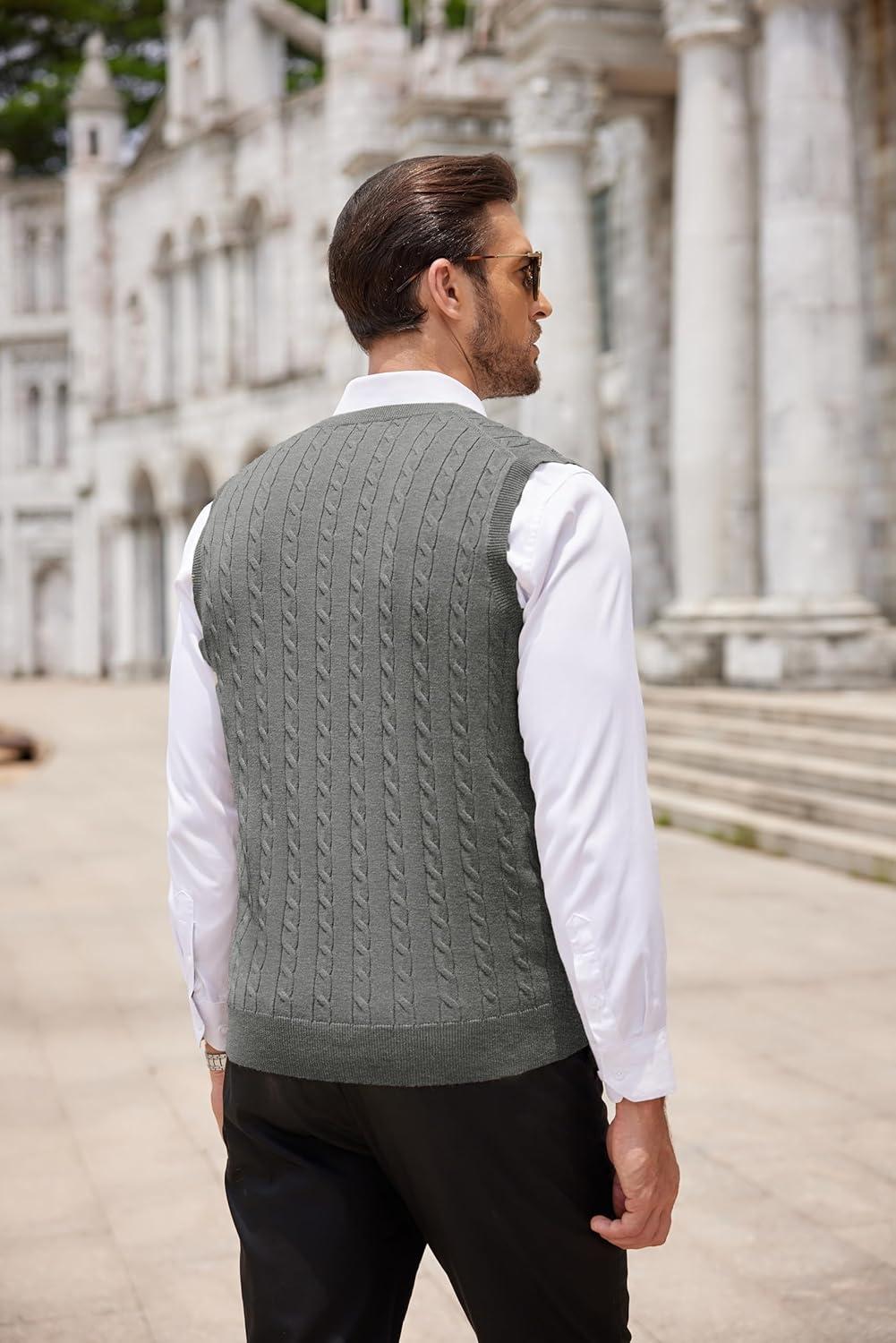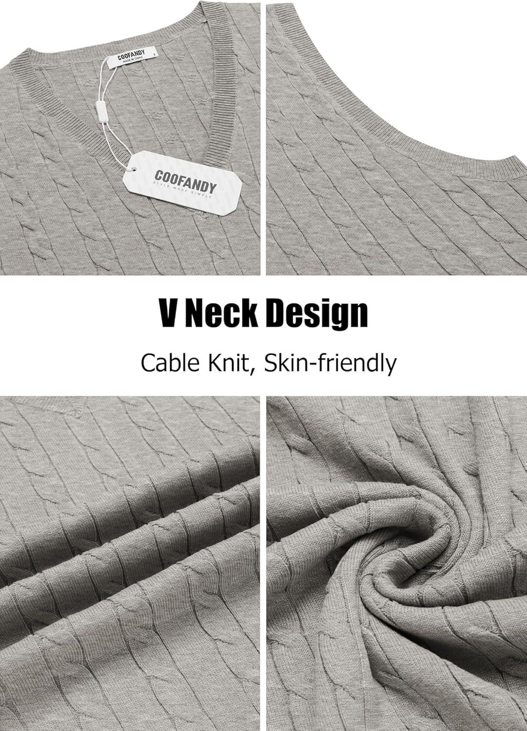 • COOFANDY Men’s Sweater Vest Cable Knitted V Neck Slim Fit Sleeveless Pullover Sweater(Grey)
