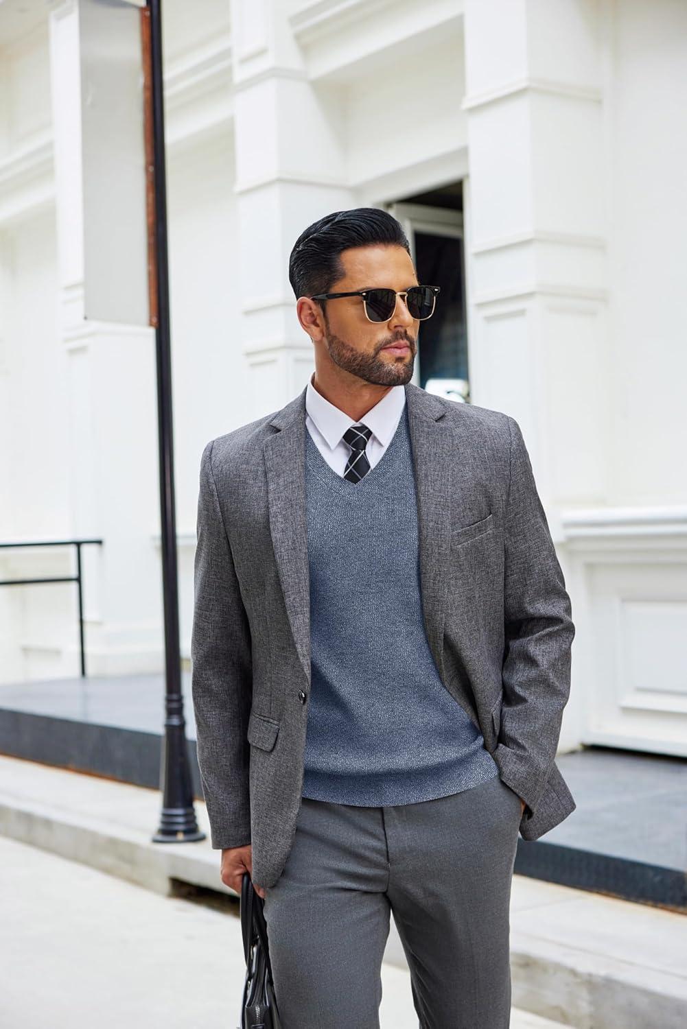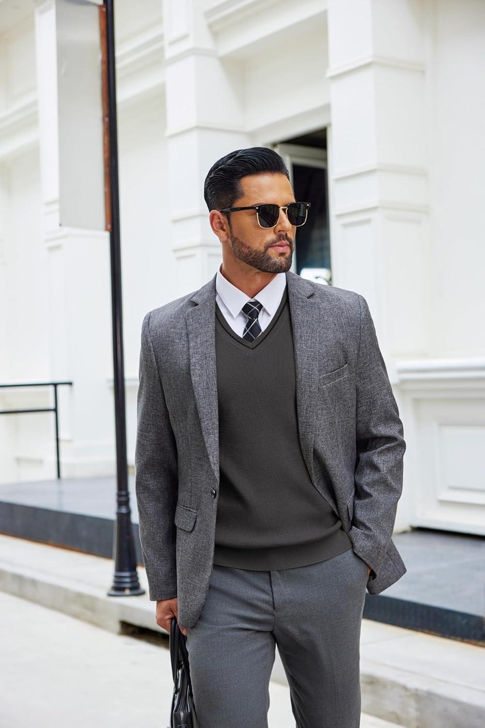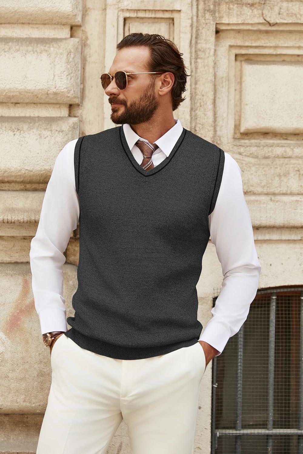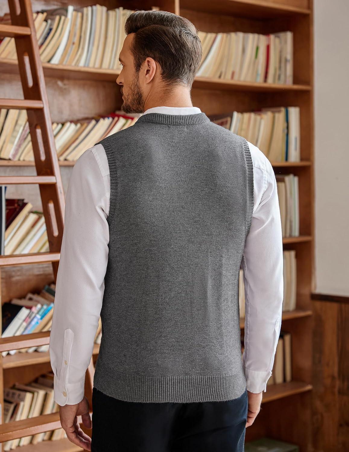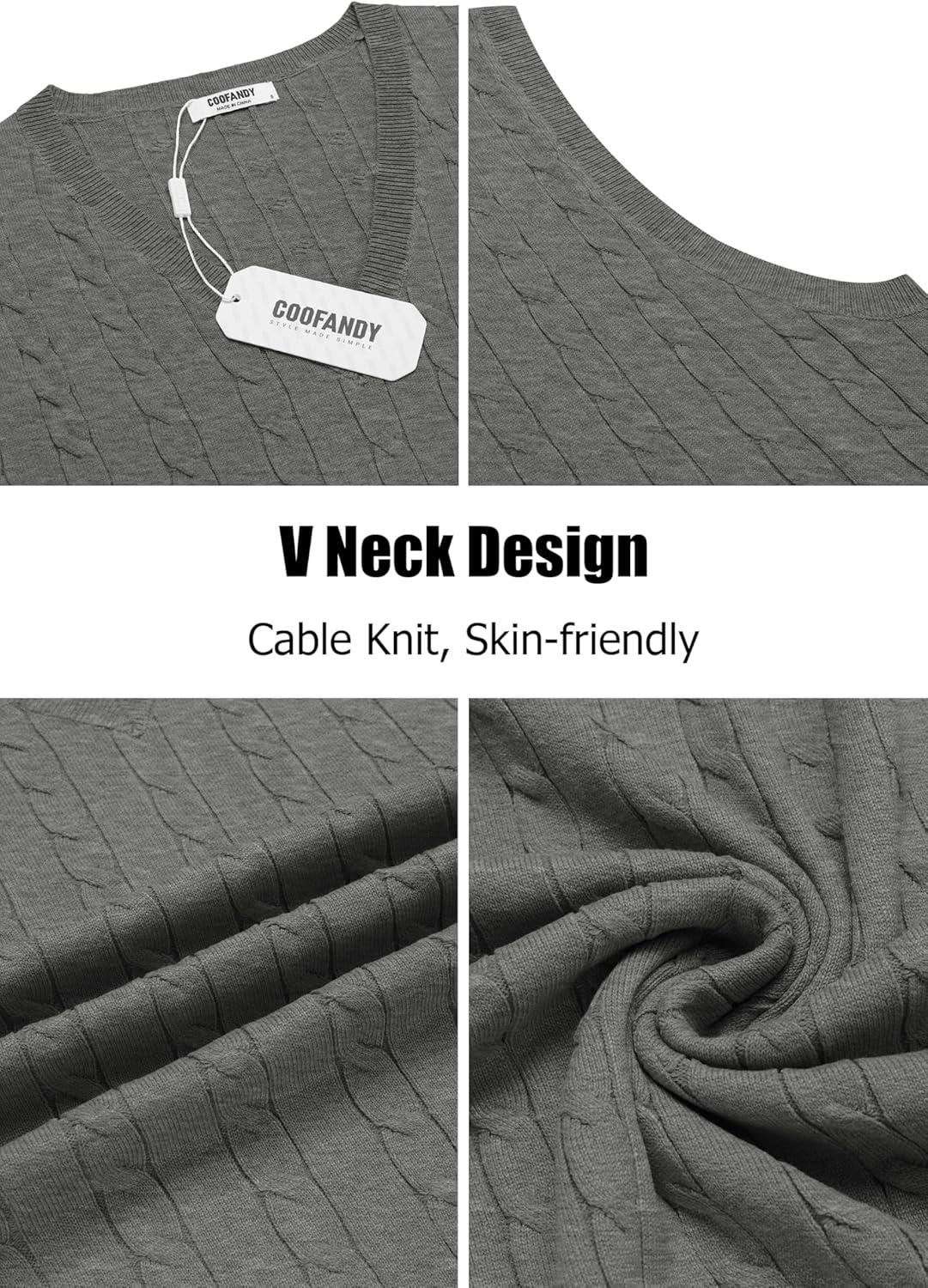 • COOFANDY Men’s Sweater Vest Cable Knitted V Neck Slim Fit Sleeveless Pullover Sweater(Grey)