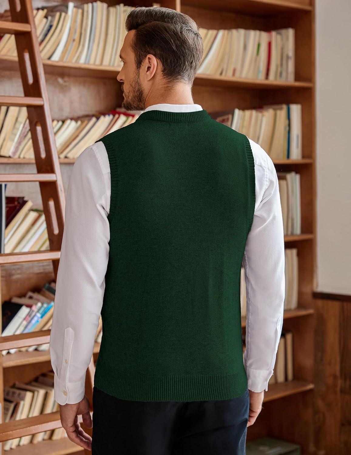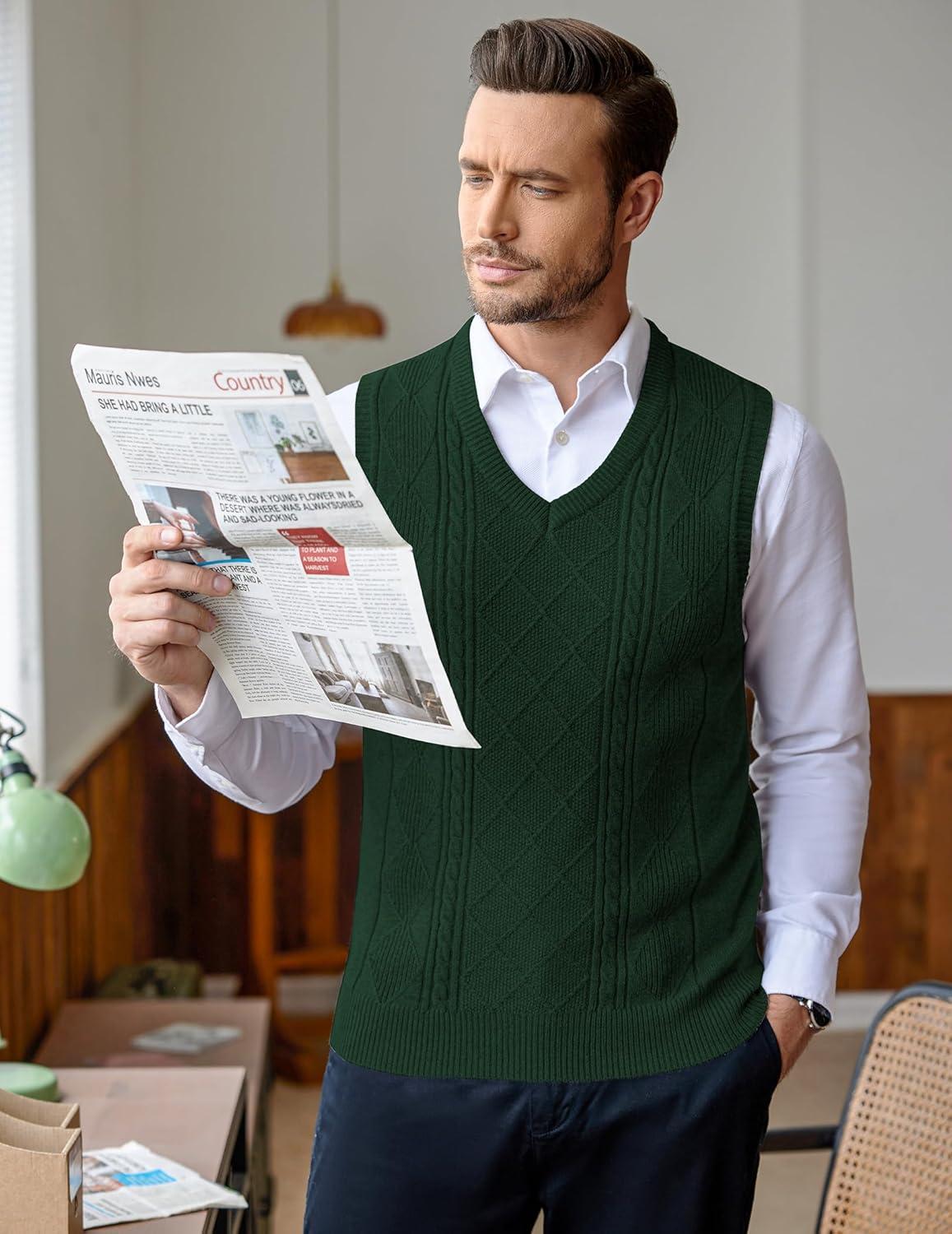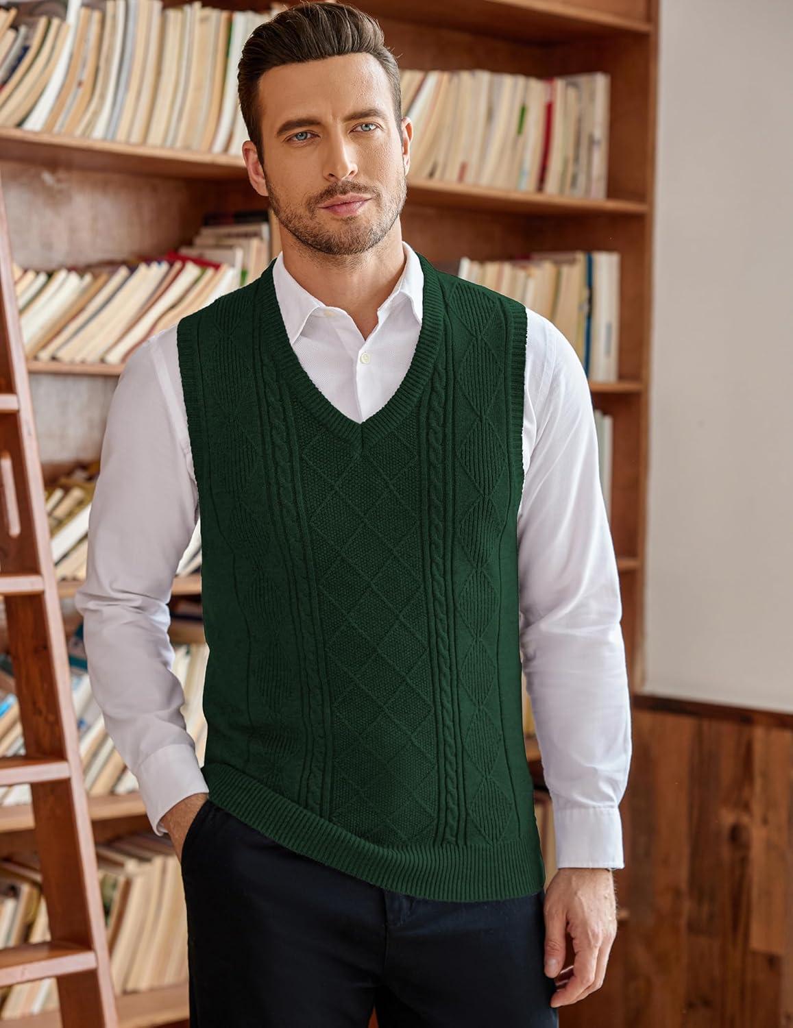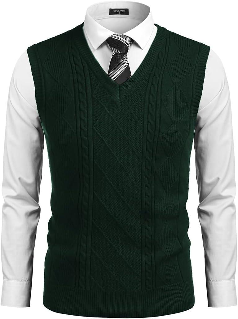 • COOFANDY Men’s Sweater Vest Cable Knitted V Neck Slim Fit Sleeveless Pullover Sweater(Green)