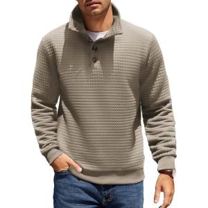 COOFANDY Mens Quarter Pullover Quilted Sweatshirt Casual Knit Long Sleeve Mock Neck Sweater Waffle Collared Pullover(Khaki)