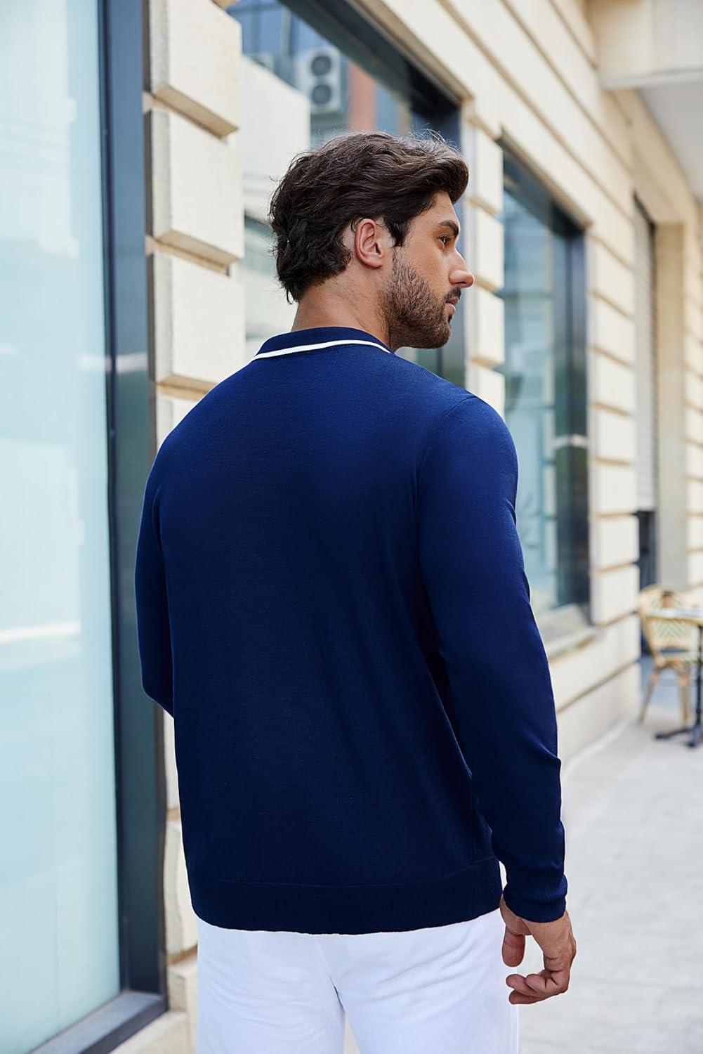 COOFANDY Men’s Knit Polo Shirts Long Sleeve Sweater Polo Lightweight Fashion Casual Collared Shirts(Navy Blue)