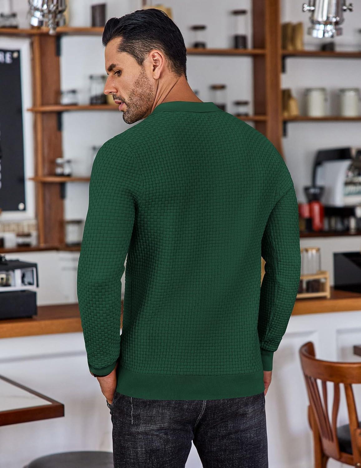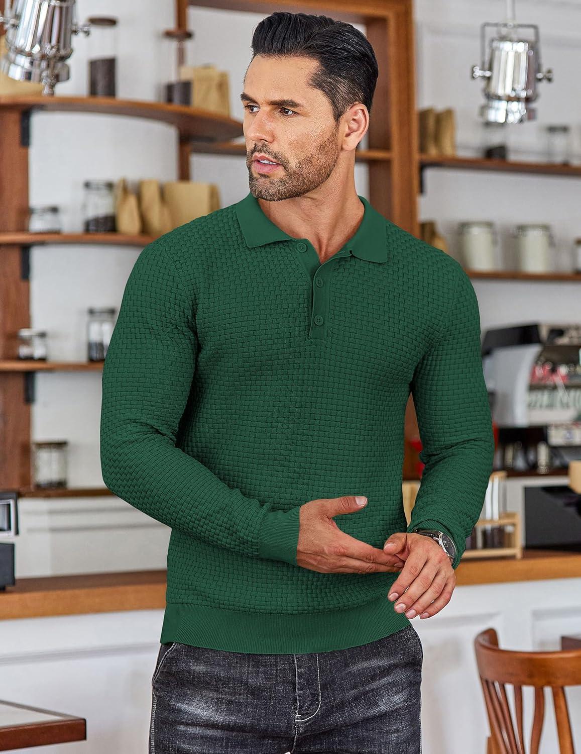 COOFANDY Men’s Knit Polo Shirts Long Sleeve Sweater Polo Lightweight Fashion Casual Collared Shirts(Green)