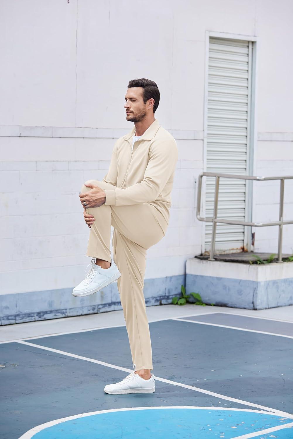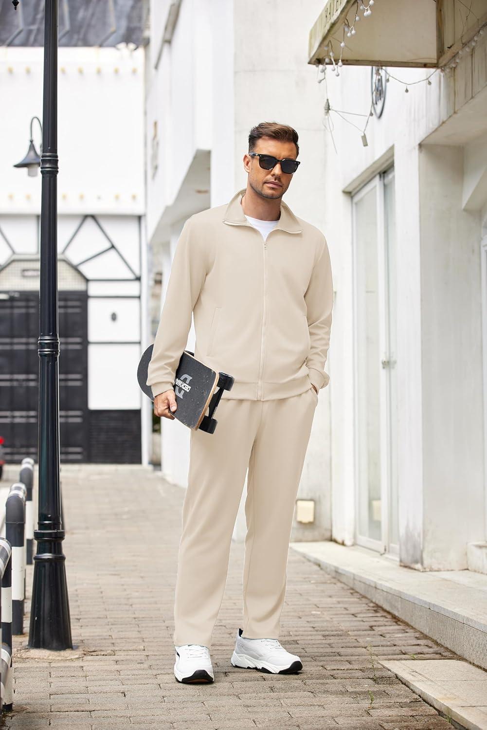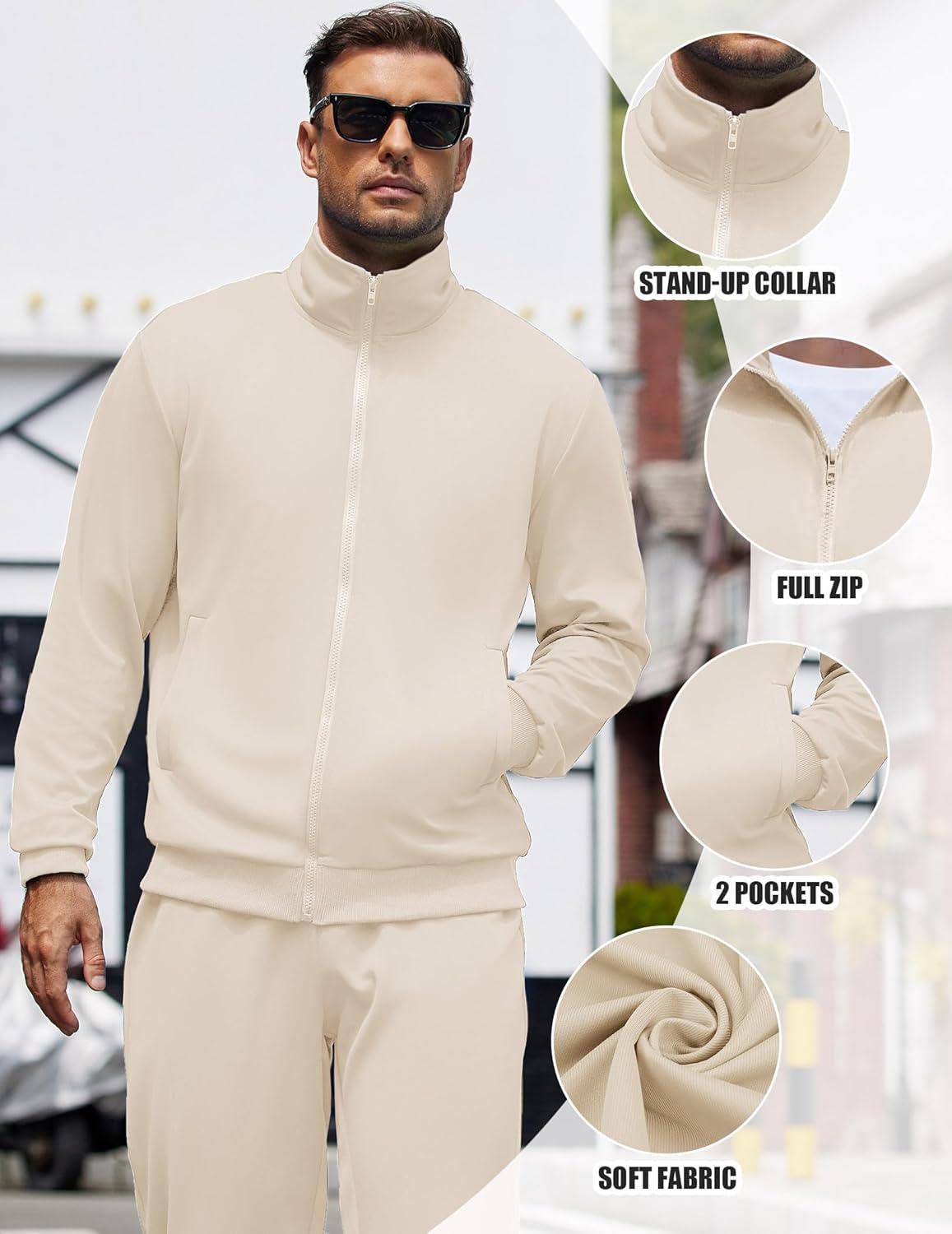 COOFANDY Mens 2 Piece Tracksuit Casual Sweatsuits Full Zip Track Suits Jogging Athletic Suit Sets(Cream)
