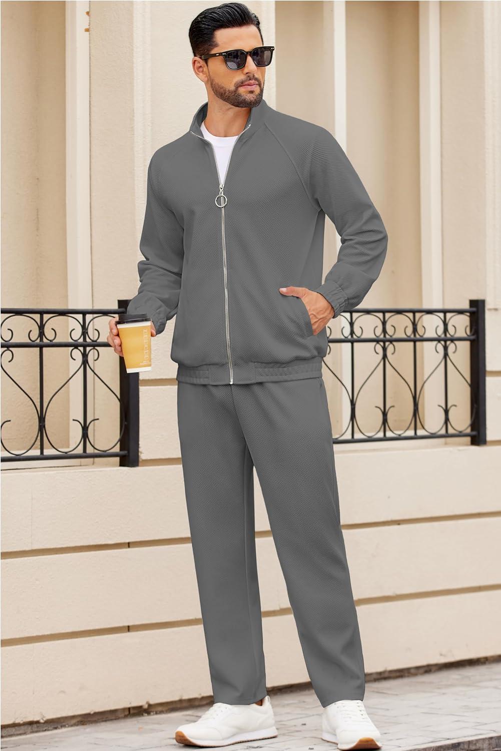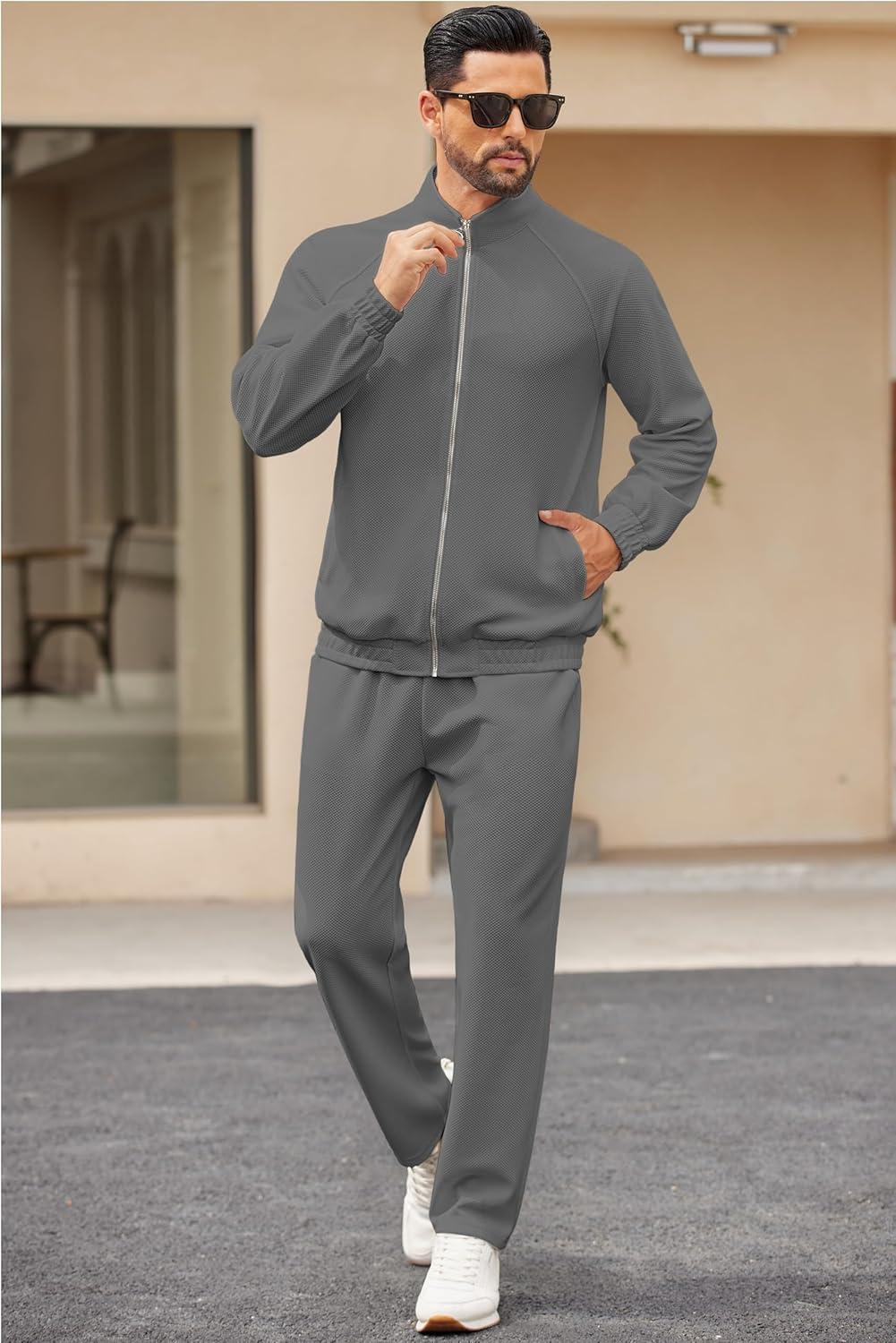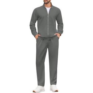 COOFANDY Mens 2 Piece Tracksuit Casual Sweatsuits Full Zip Track Suits Jogging Athletic Suit Sets(Dark Grey)