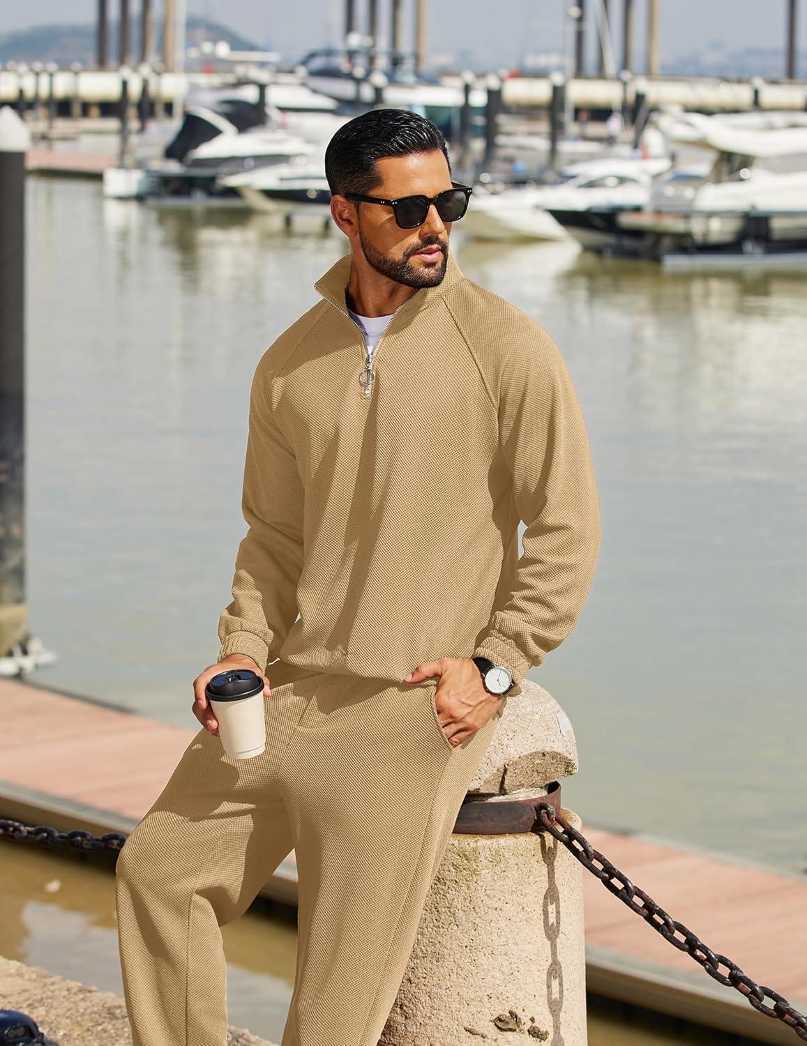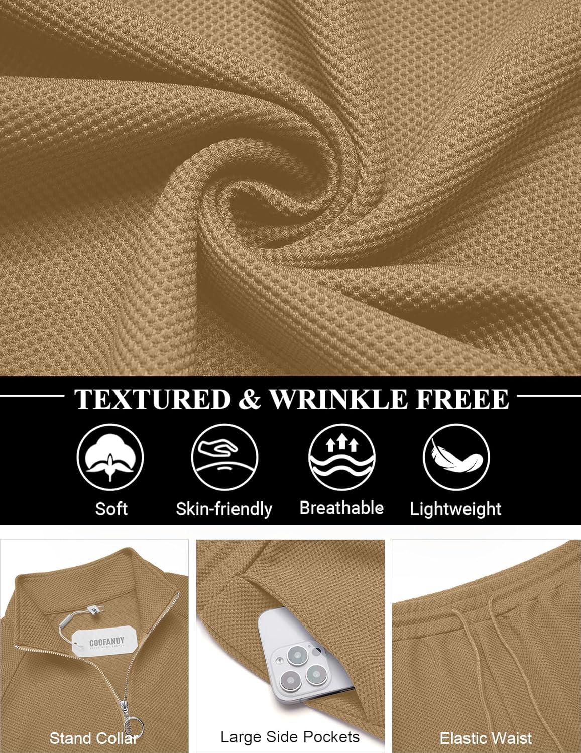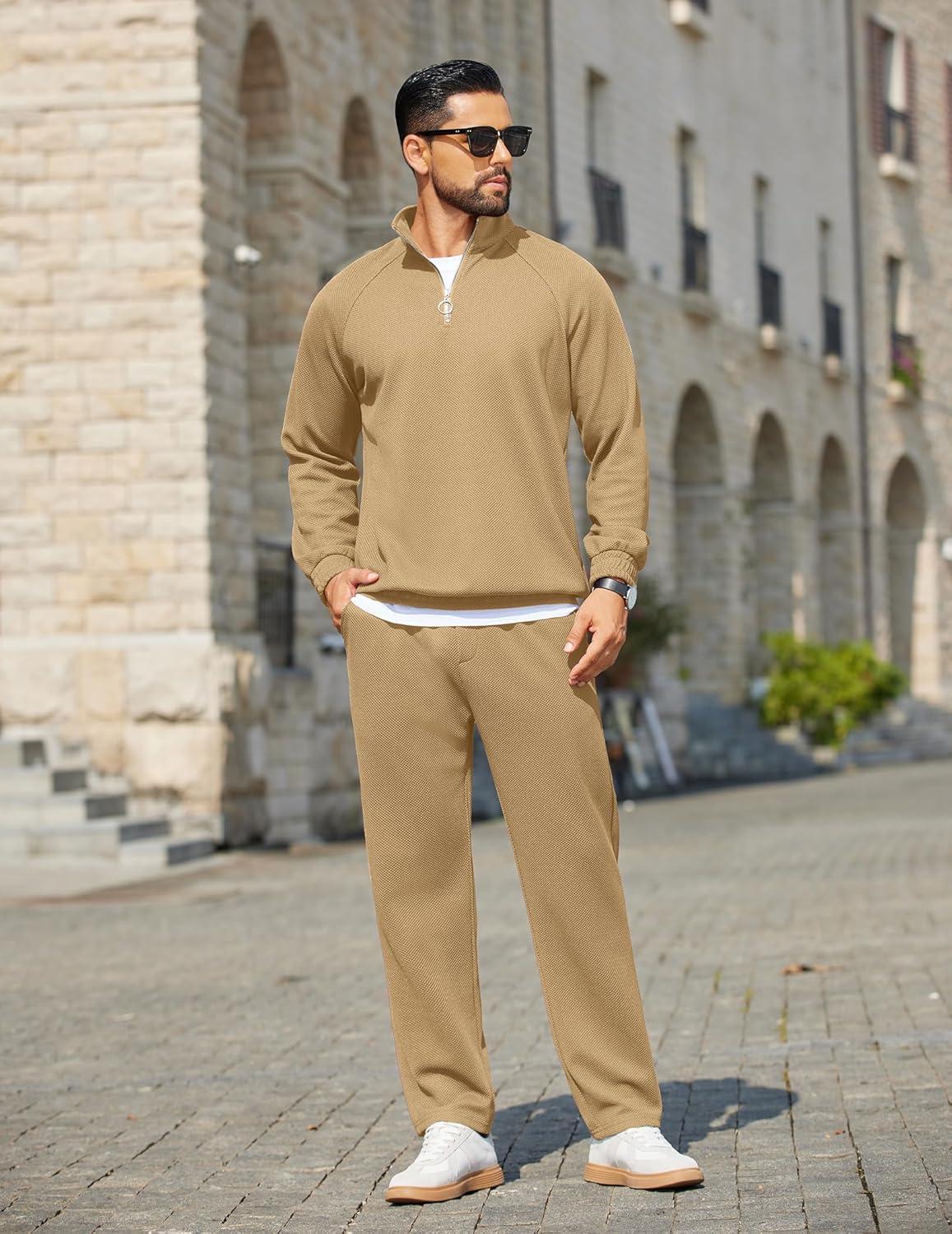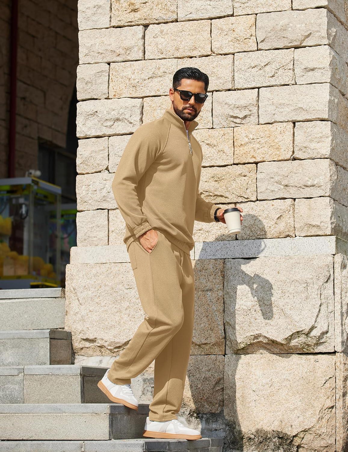 COOFANDY Mens 2 Piece Tracksuit Casual Sweatsuits Full Zip Track Suits Jogging Athletic Suit Sets(Khaki)