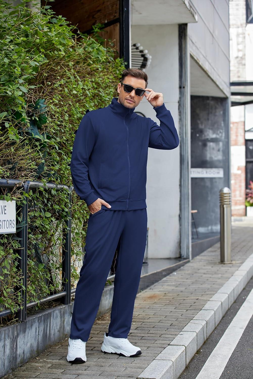 COOFANDY Mens 2 Piece Tracksuit Casual Sweatsuits Full Zip Track Suits Jogging Athletic Suit Sets(Navy)