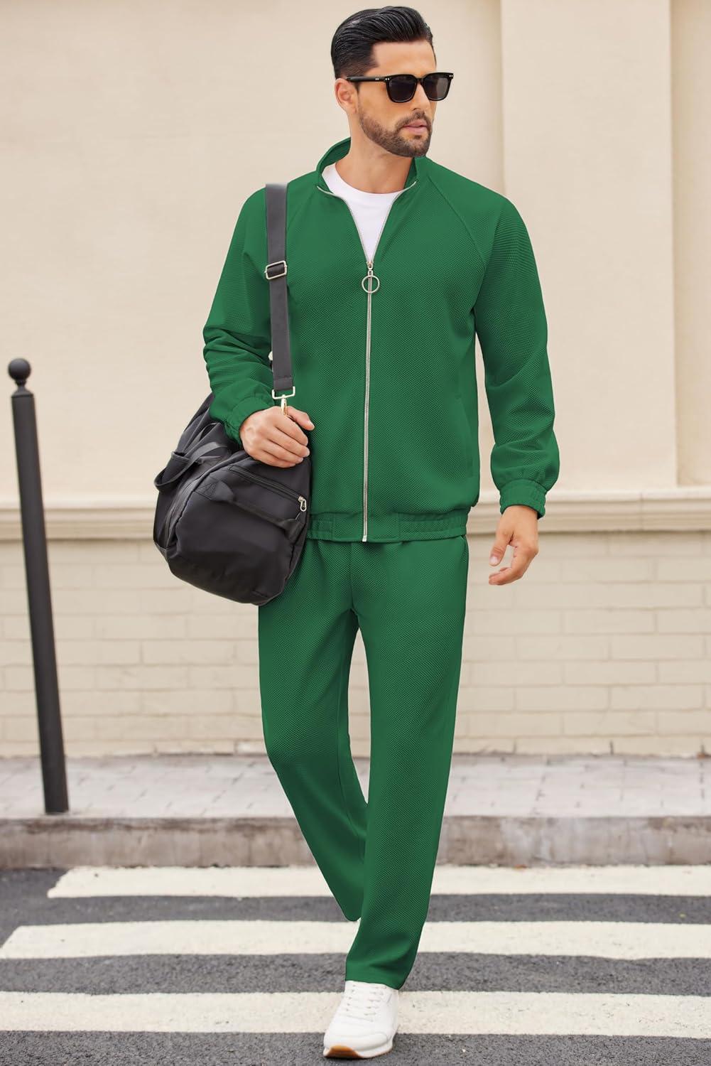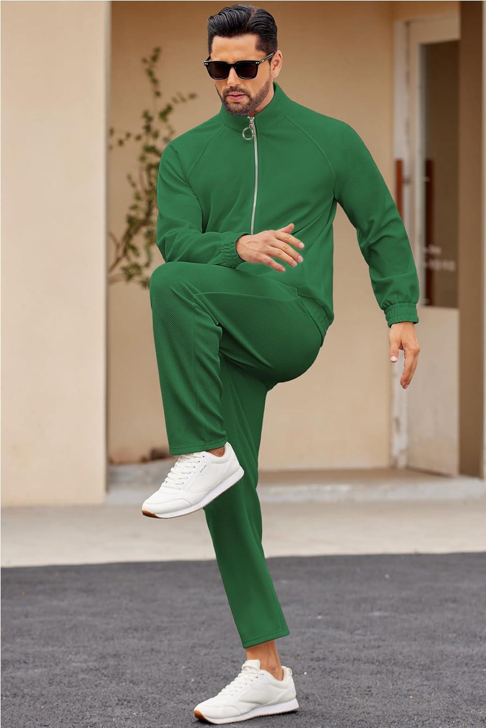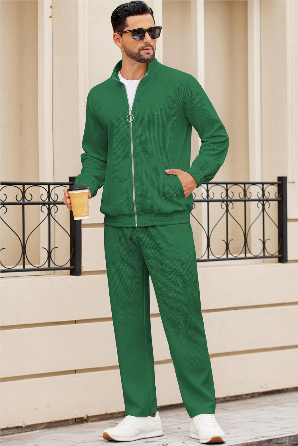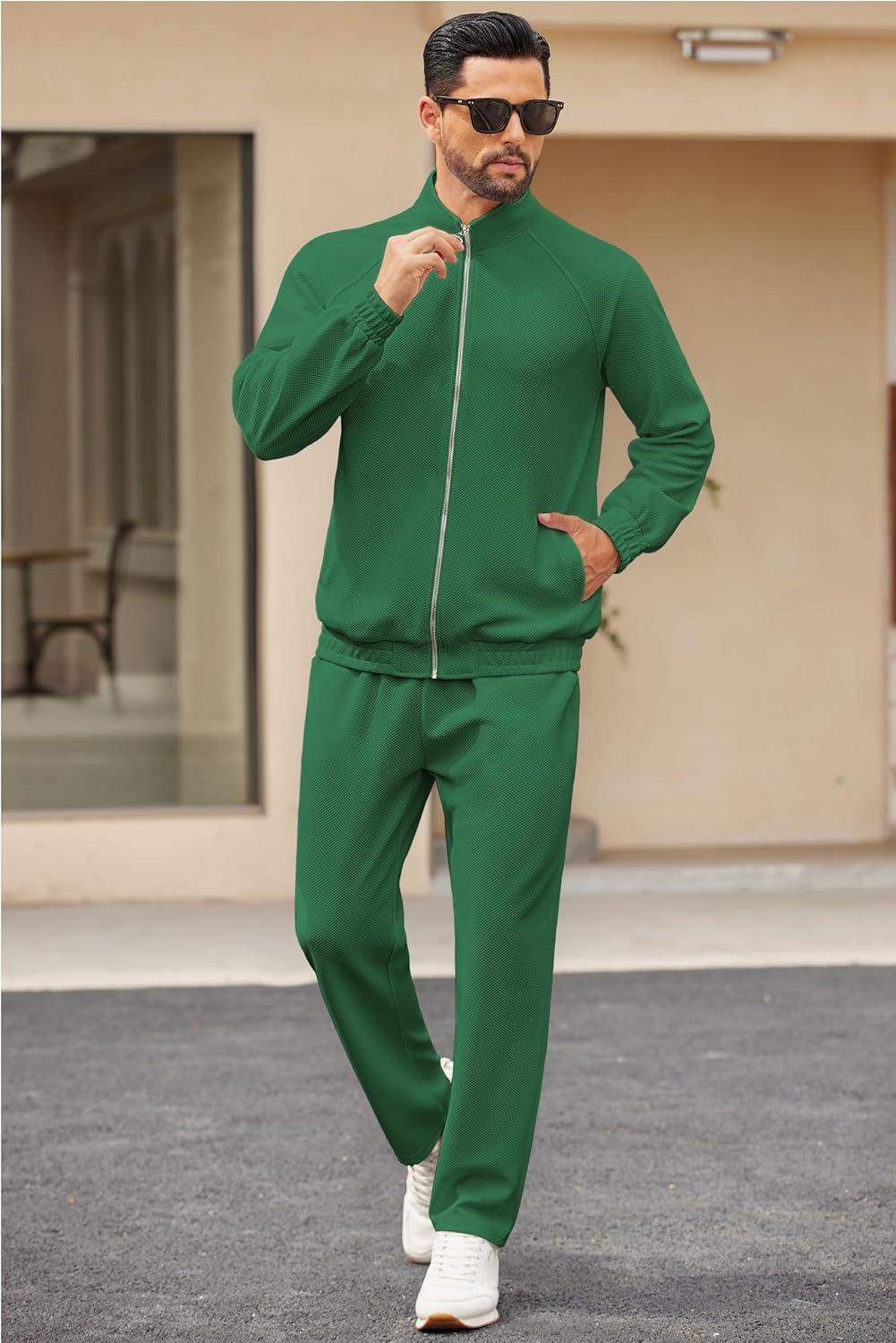 COOFANDY Mens 2 Piece Tracksuit Casual Sweatsuits Full Zip Track Suits Jogging Athletic Suit Sets(Sage Green)