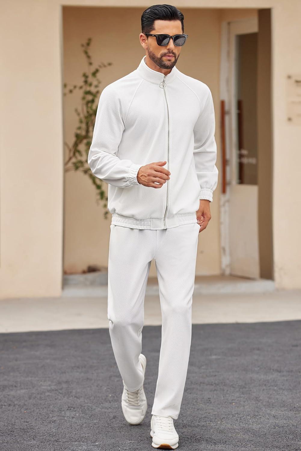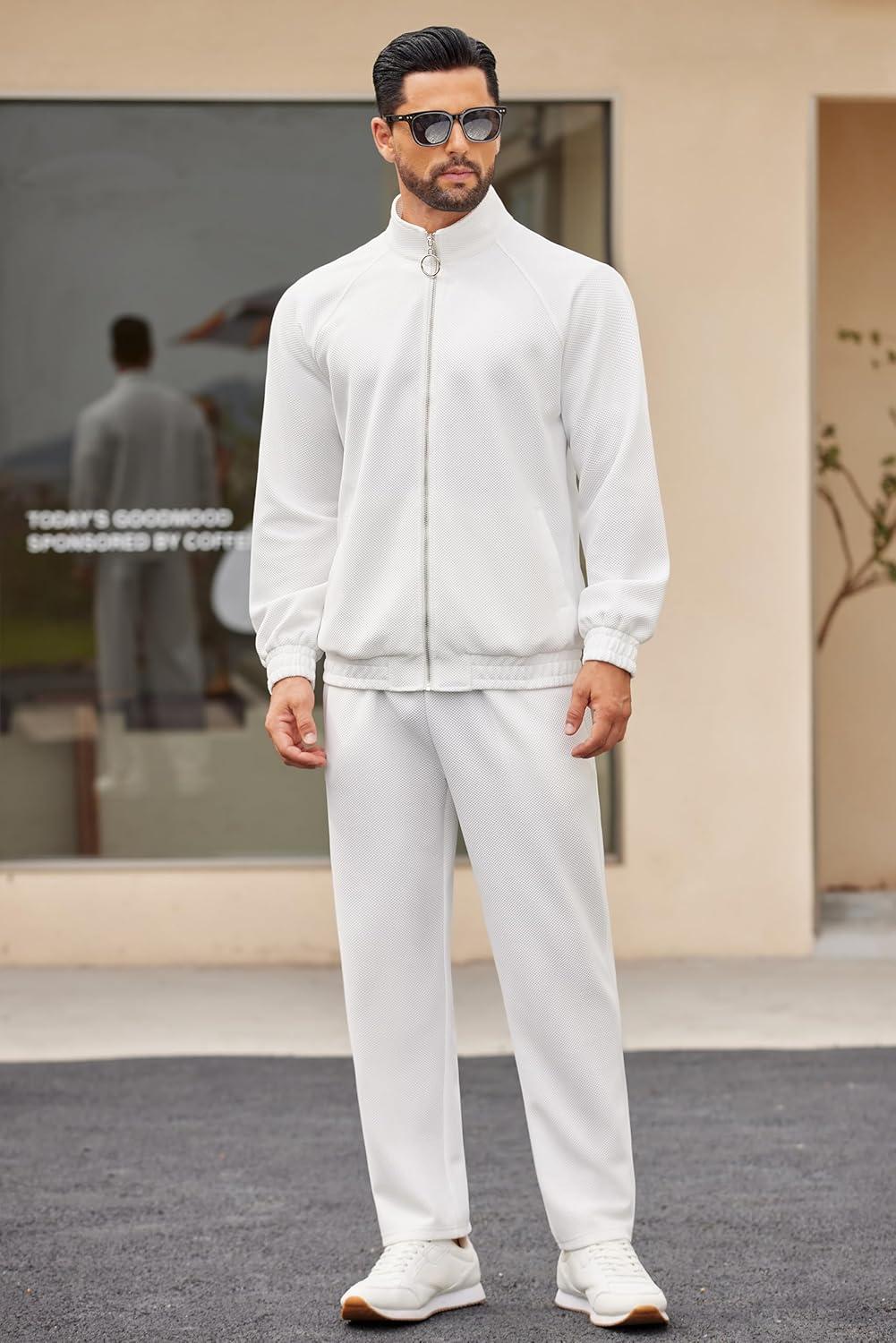 COOFANDY Mens 2 Piece Tracksuit Casual Sweatsuits Full Zip Track Suits Jogging Athletic Suit Sets(White)