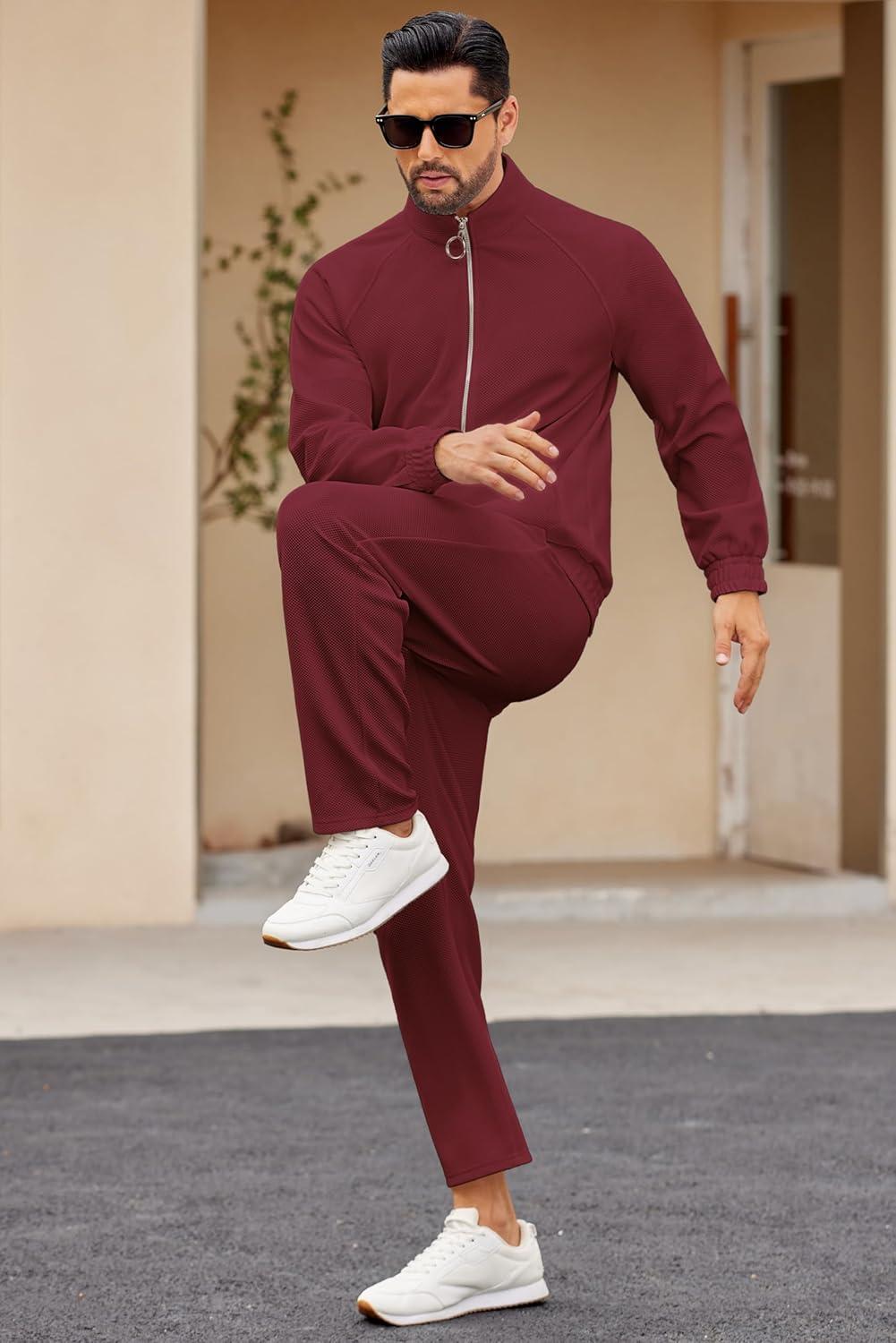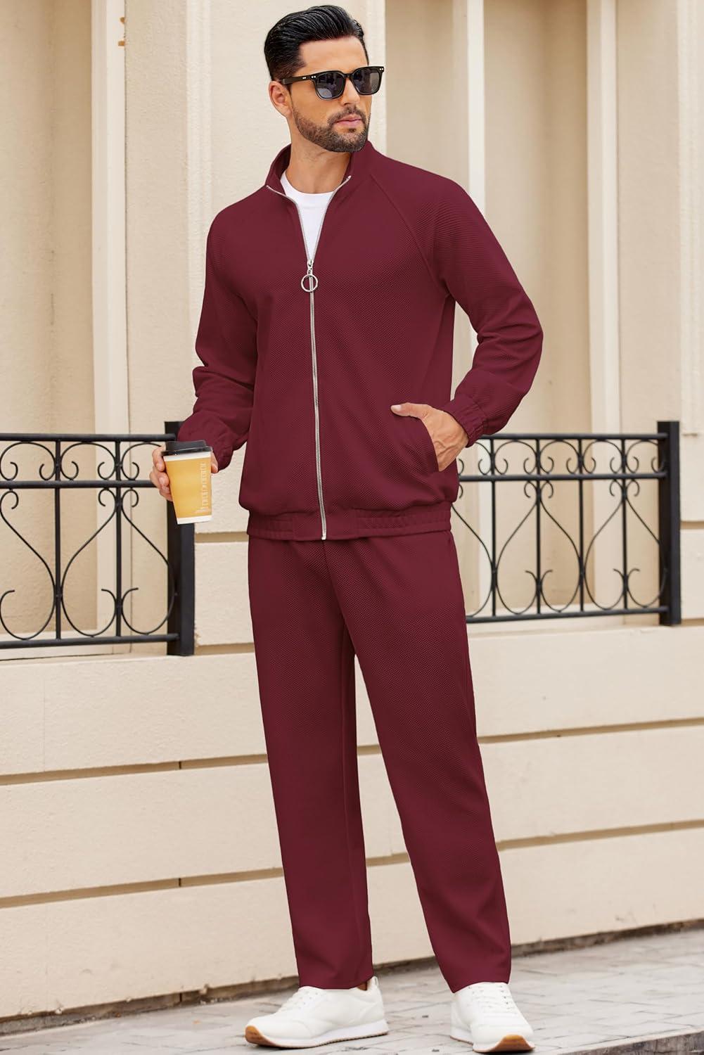 COOFANDY Mens 2 Piece Tracksuit Casual Sweatsuits Full Zip Track Suits Jogging Athletic Suit Sets(Wine Red)