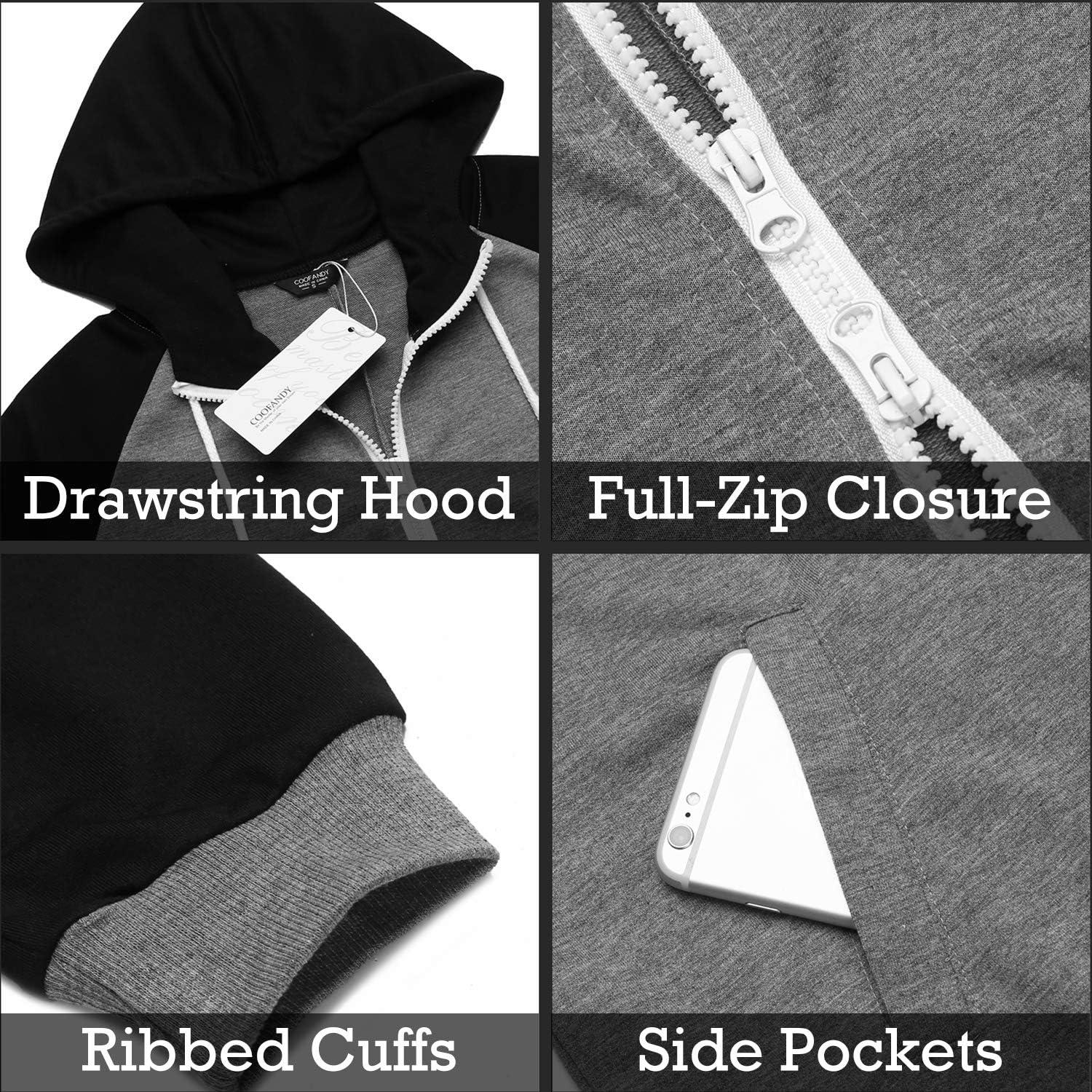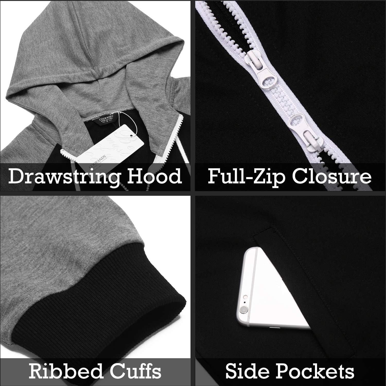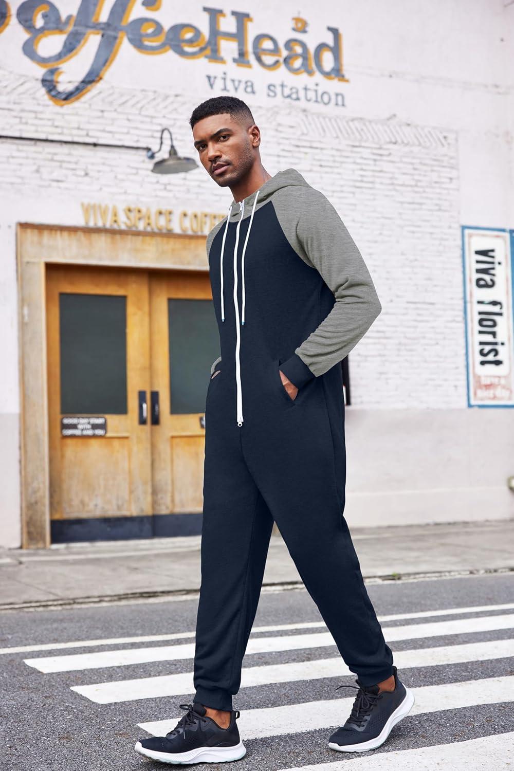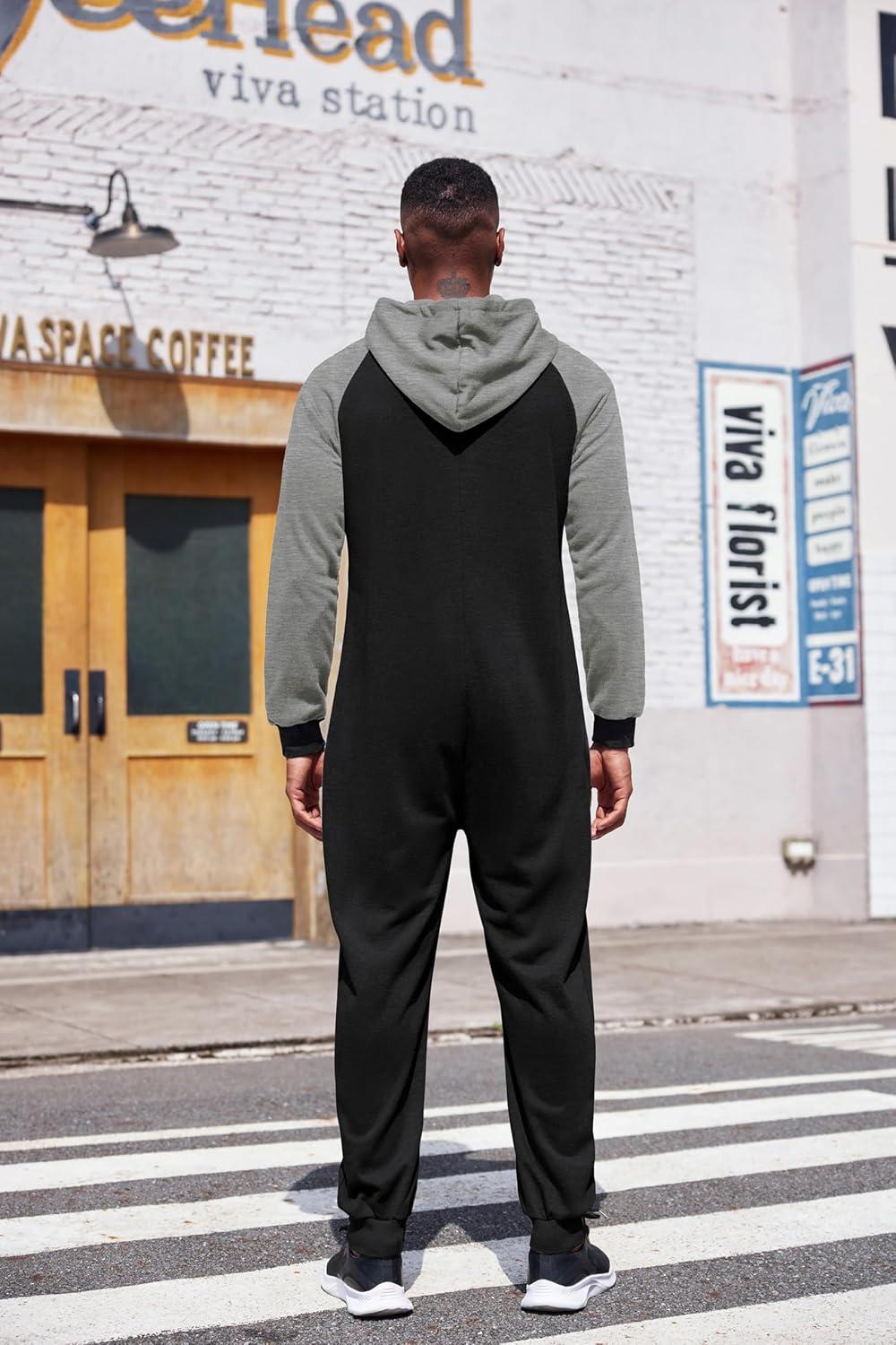 COOFANDY Mens Jumpsuit Onesie Rompers Drawstring Hooded Full Zip One Piece Tracksuit with Pockets(Black / Grey)