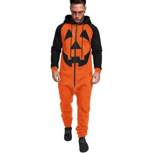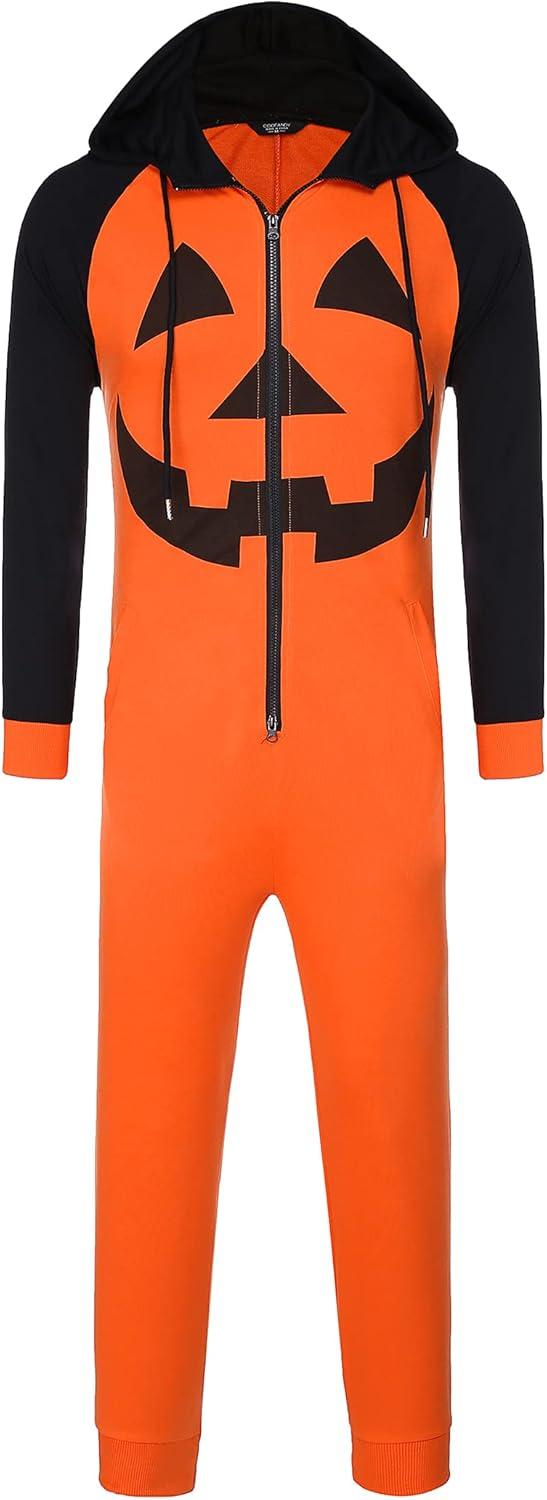 COOFANDY Mens Jumpsuit Onesie Rompers Drawstring Hooded Full Zip One Piece Tracksuit with Pockets(Orange Pumpkin)