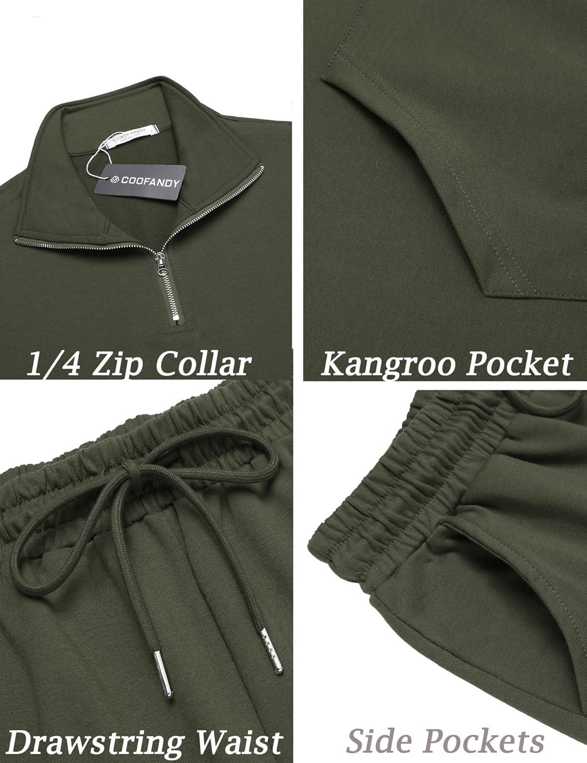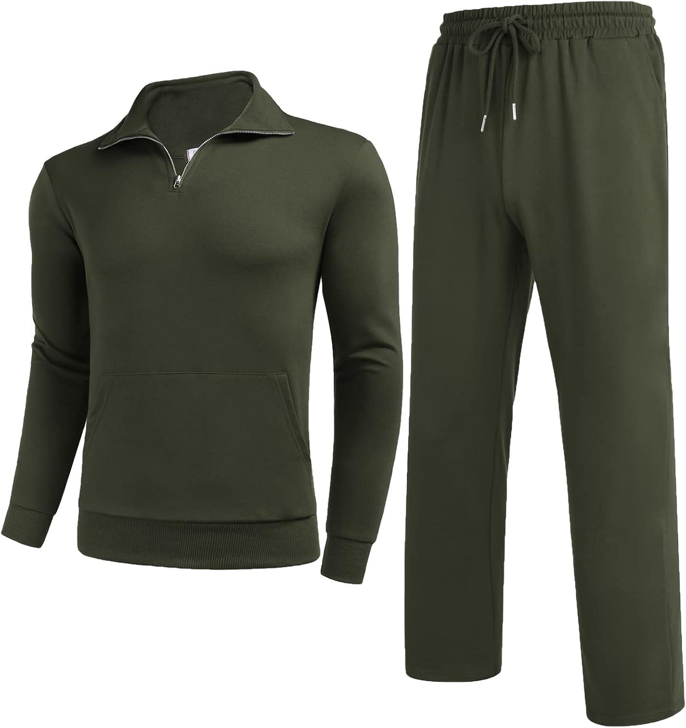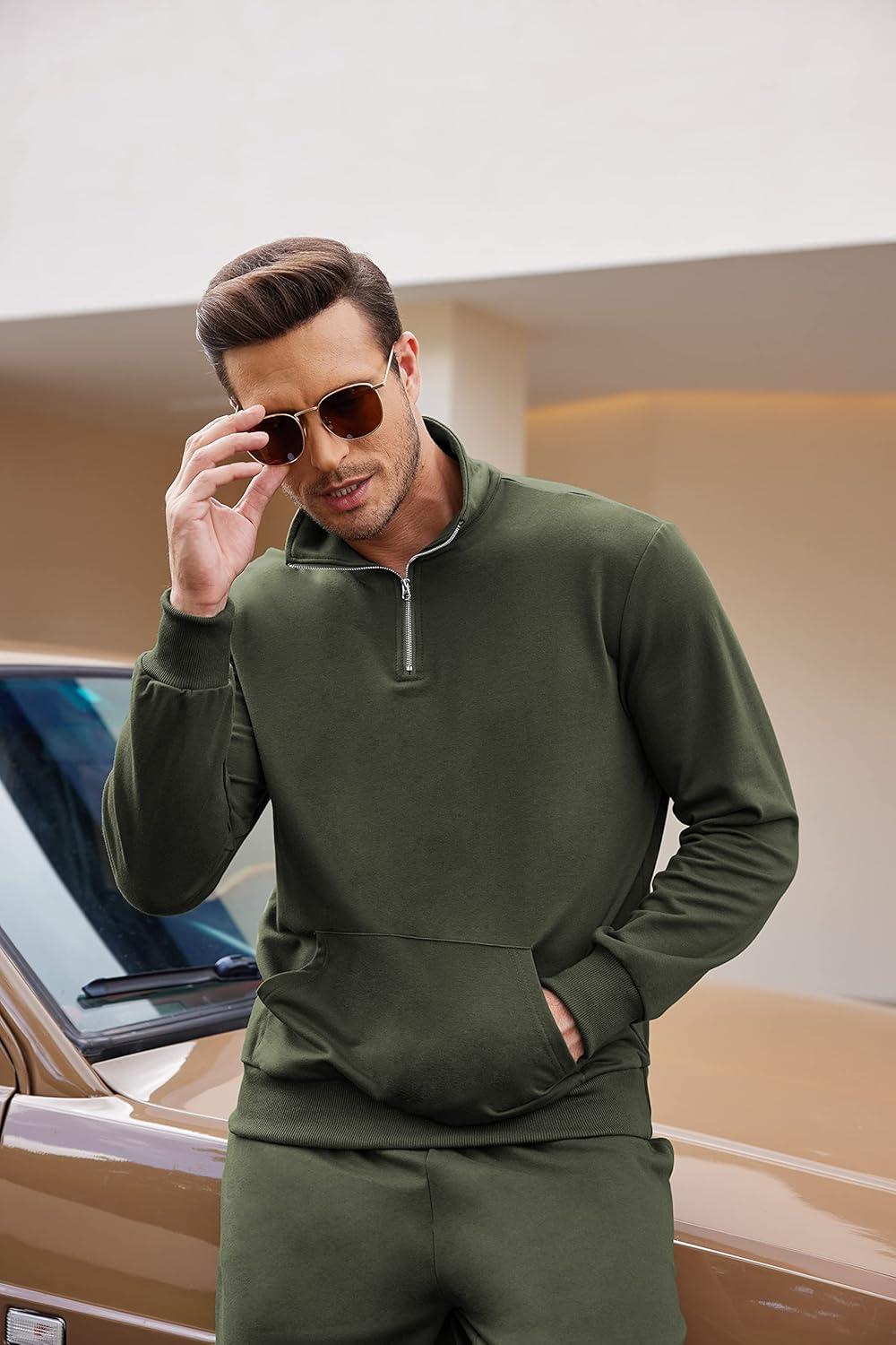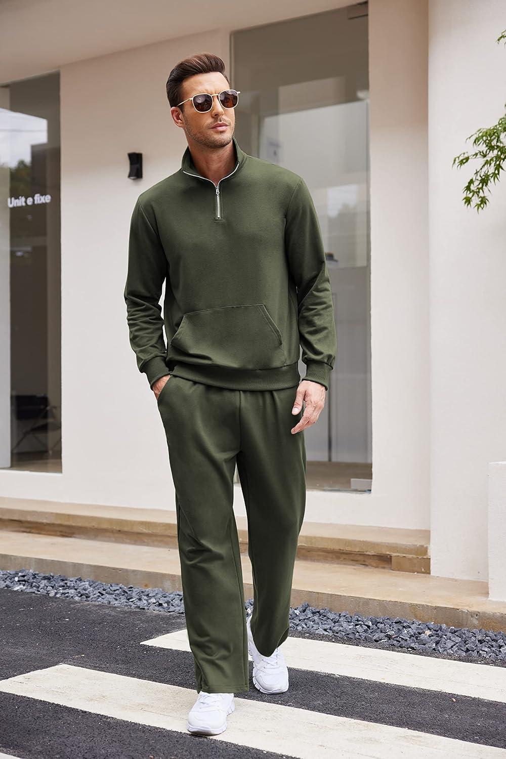 COOFANDY Men’s 2 Piece Track Suit Set Jogging Sweatsuit Workout Quarter Zip Suit(Army Green)