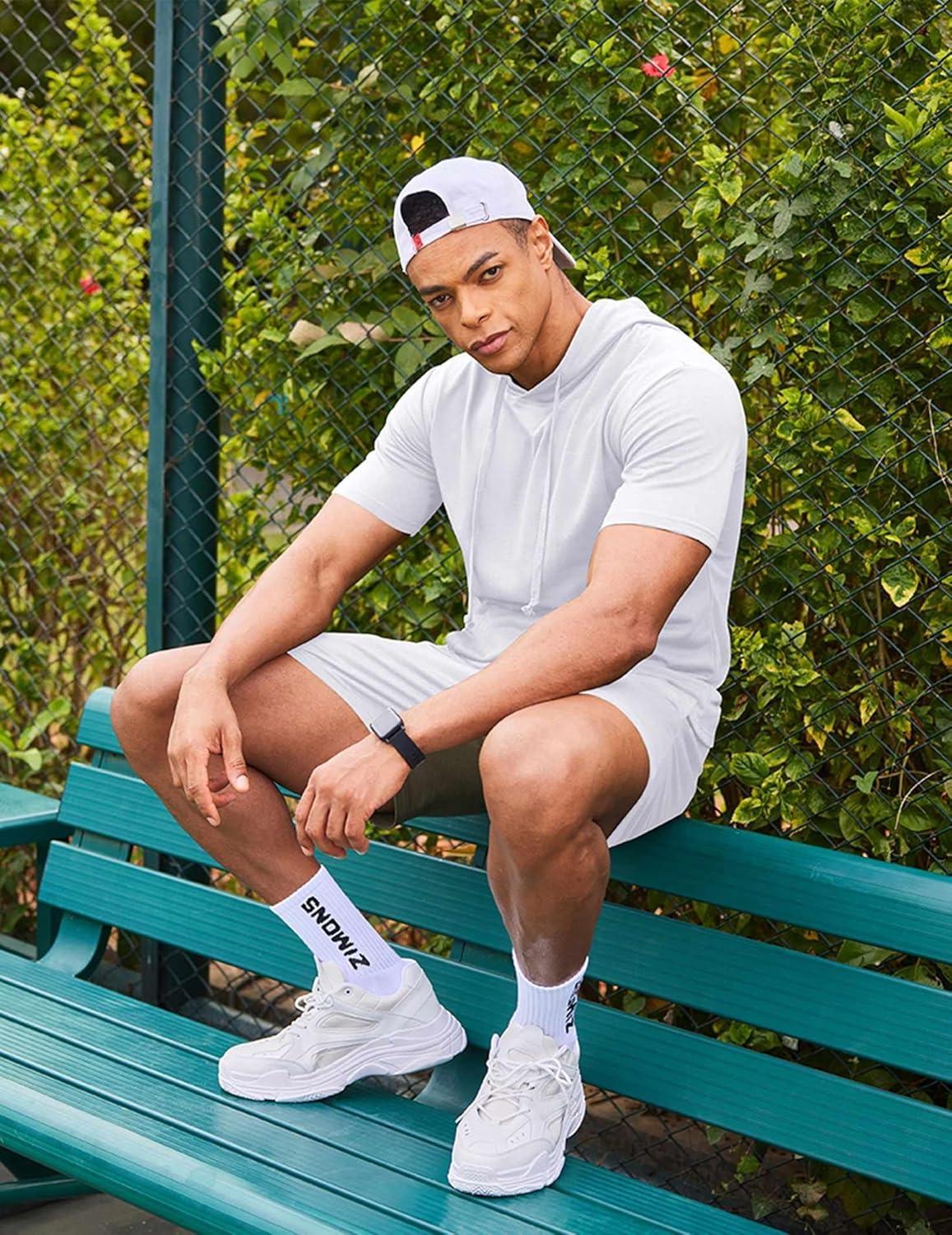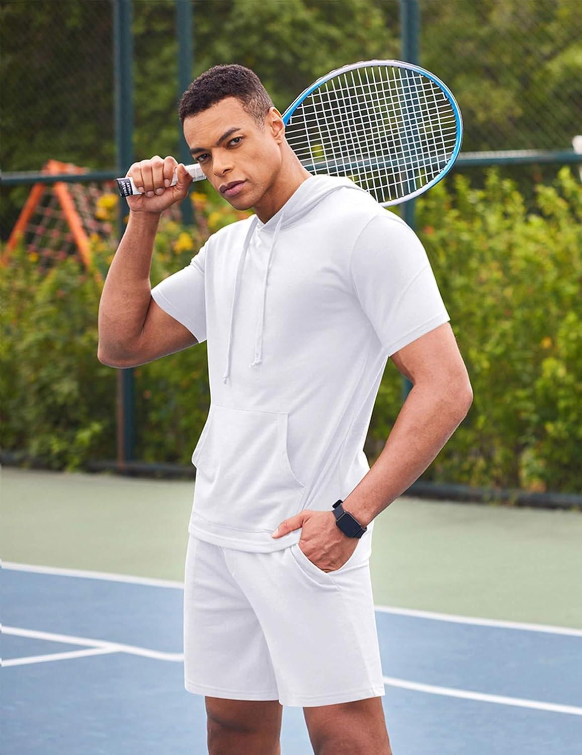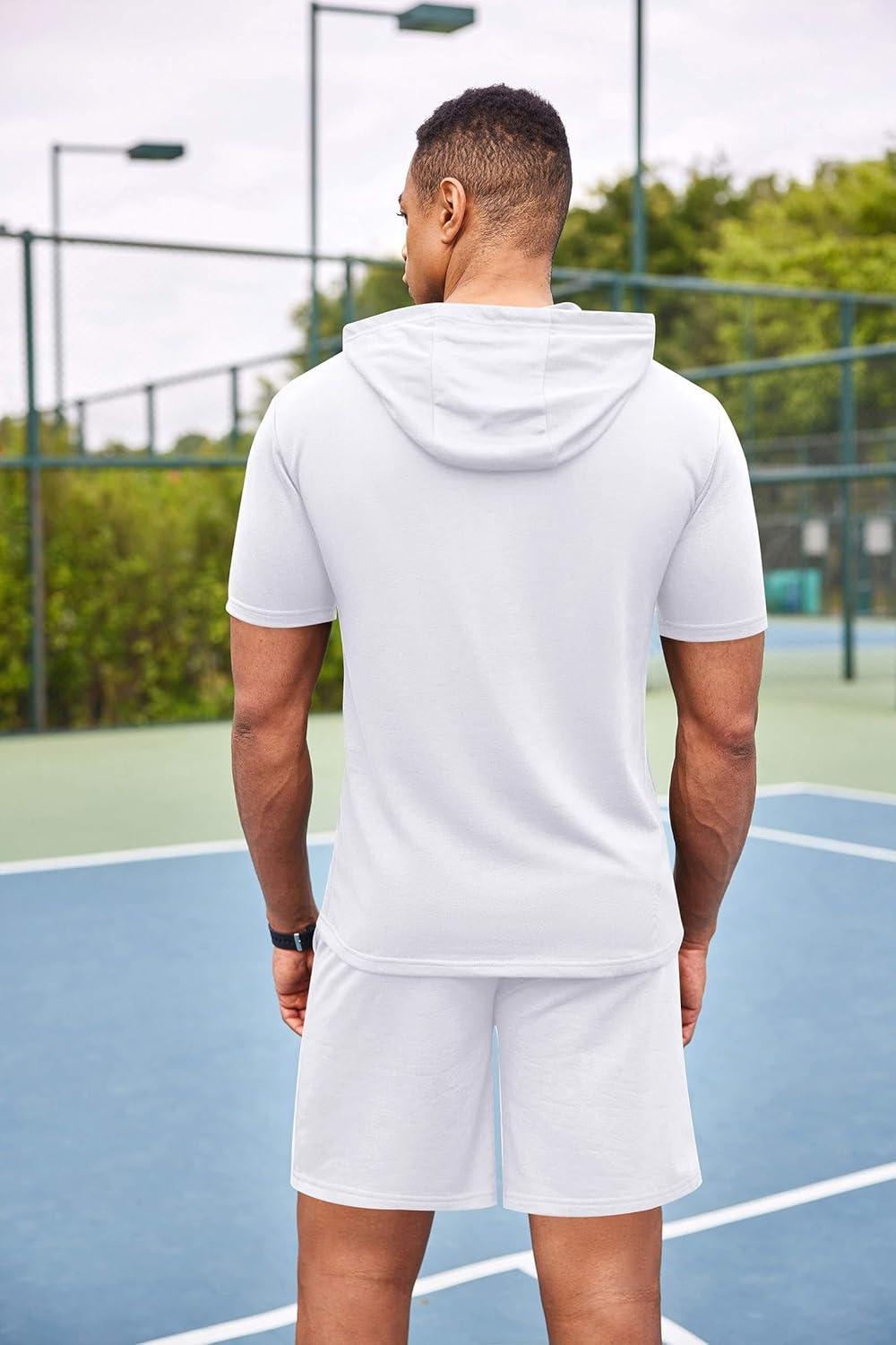 COOFANDY Men’s Tracksuit 2 Piece Hooded Athletic Sweatsuit Short Sleeve Casual Sports Hoodie Shorts Set(White)