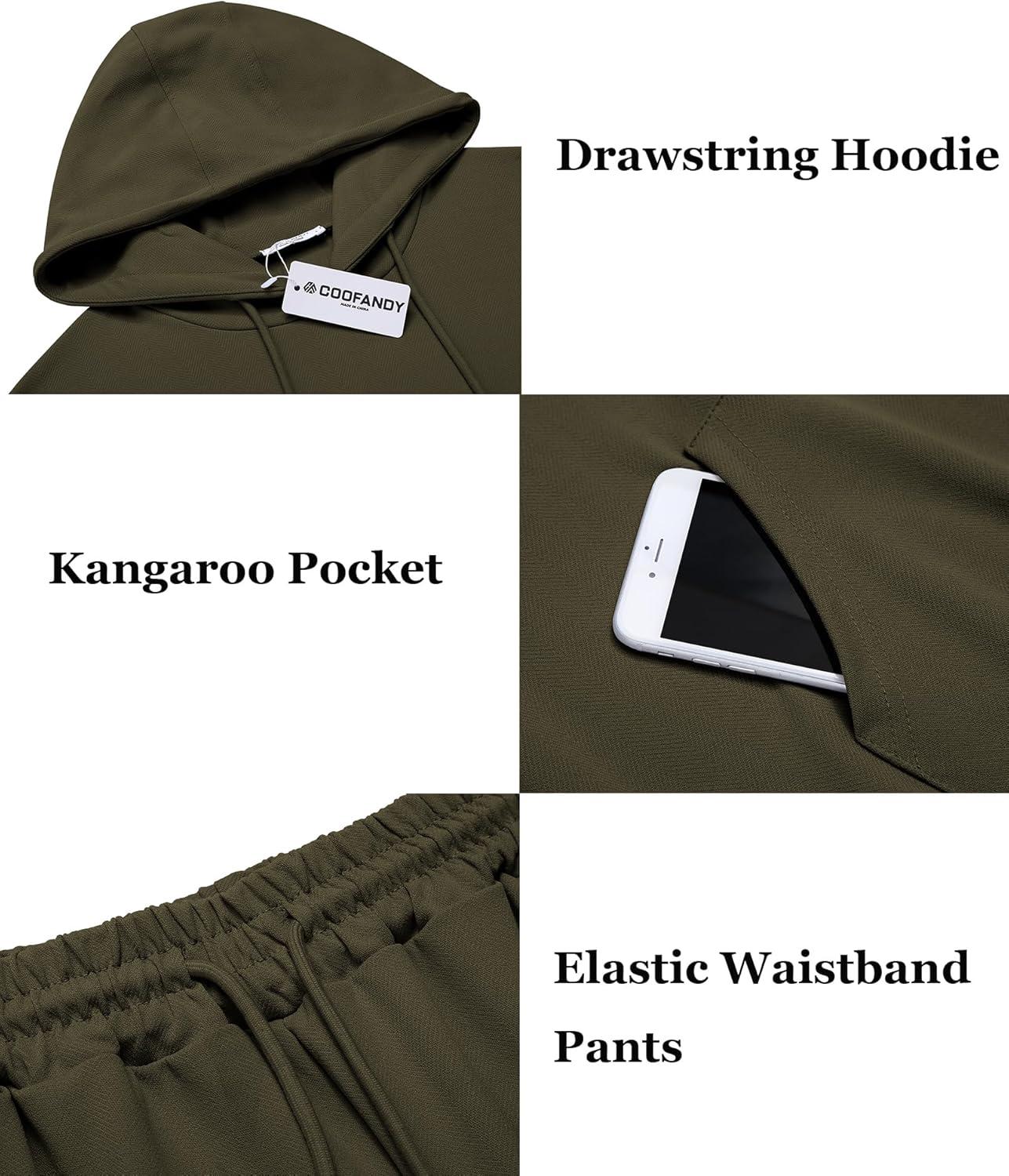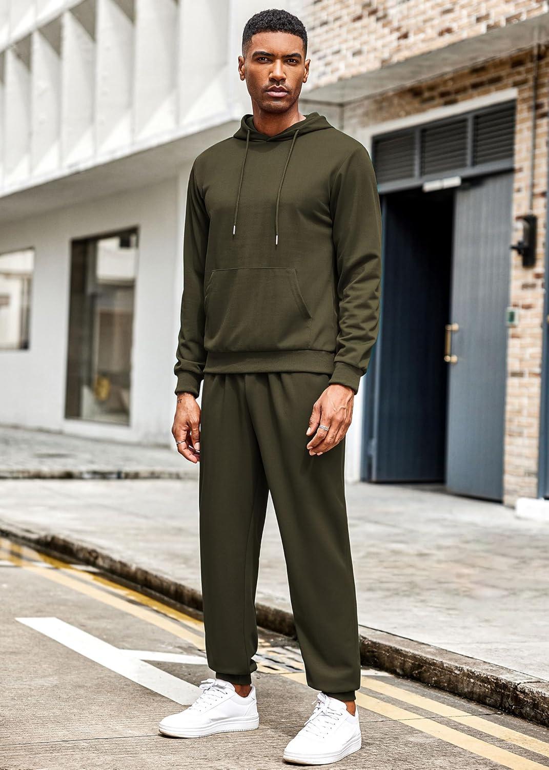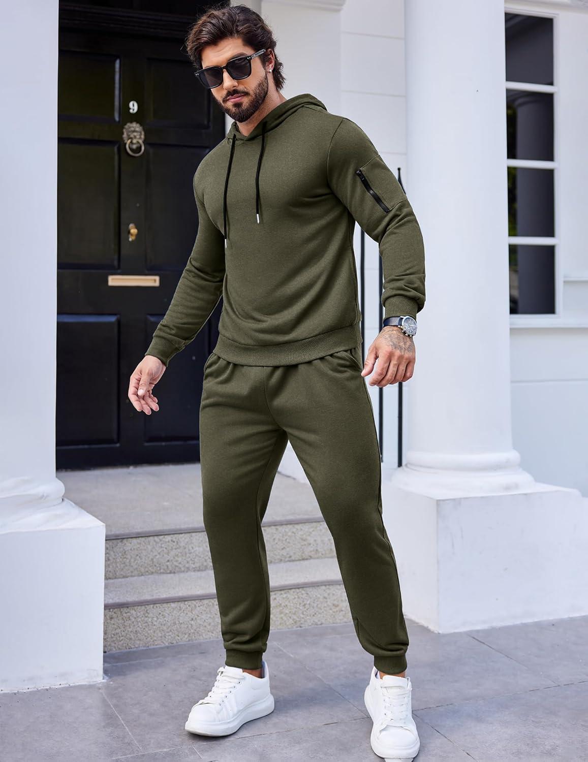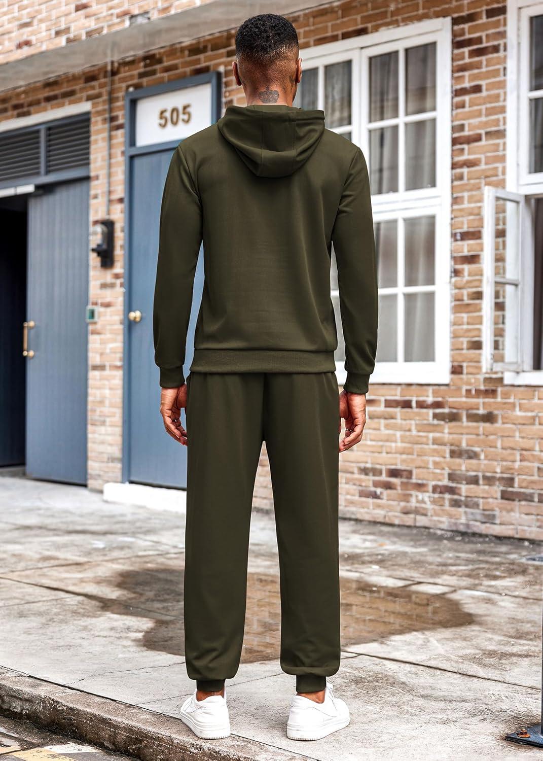 COOFANDY Men’s Tracksuit 2 Piece Hoodie Athletic Sweatsuits Casual Jogging Suit Sets(Army Green)